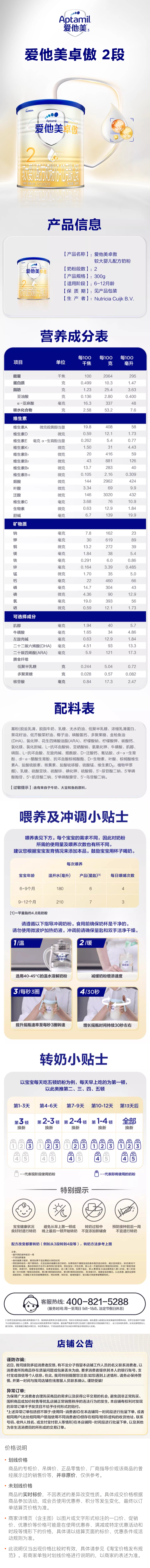 【小罐】爱他美卓傲2段配方奶粉300g*1罐6-12个月宝宝/ATM-613878