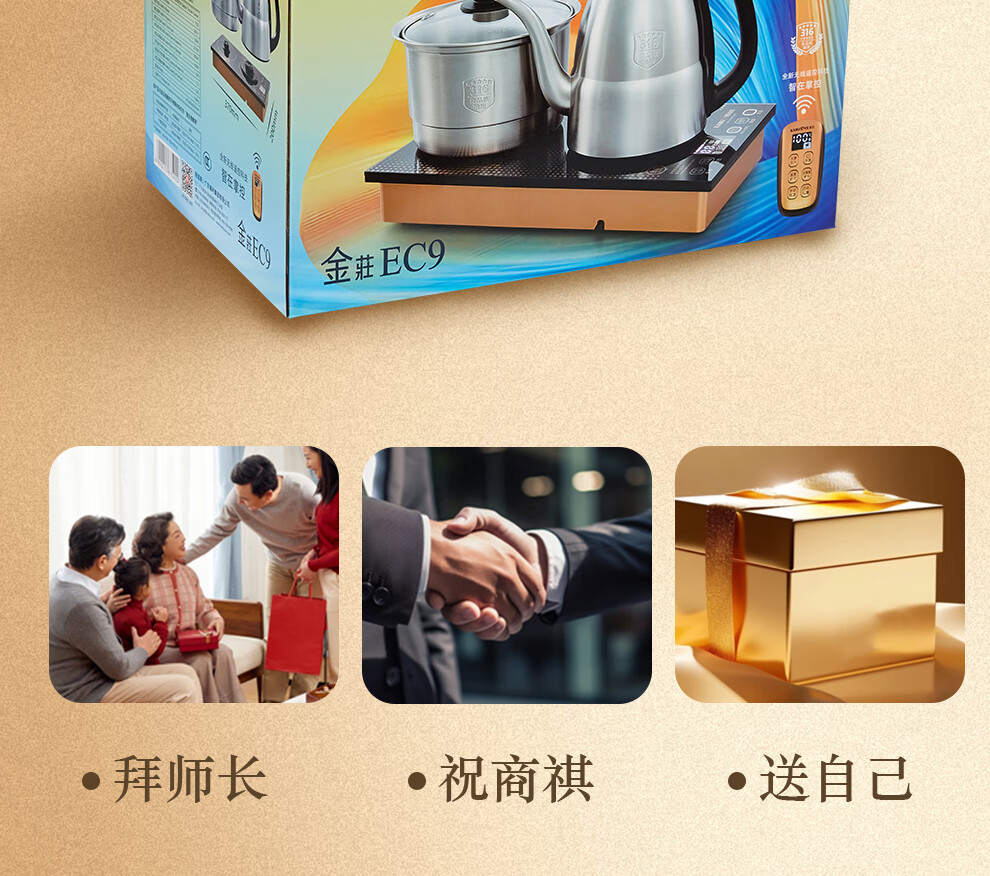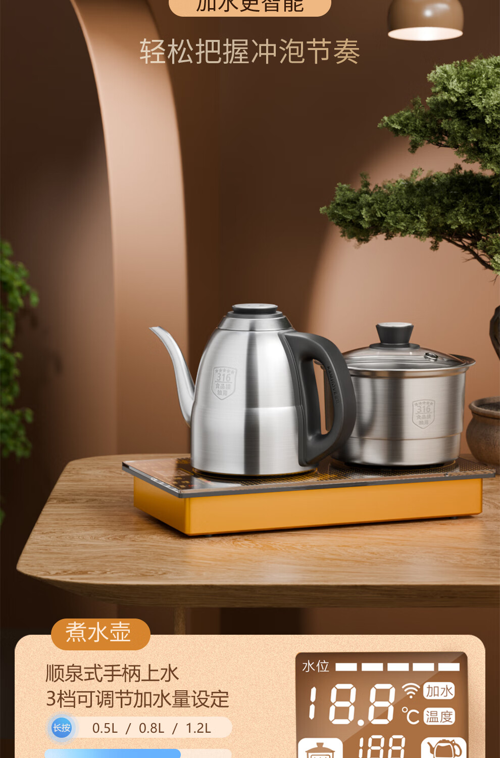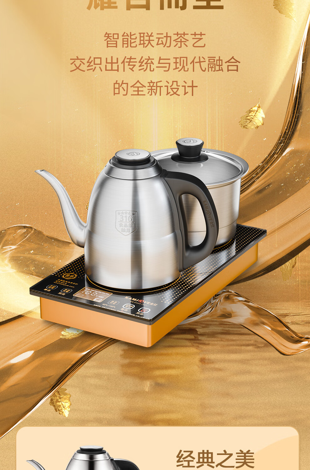 金灶(KAMJOVE)EC-9电热水壶旗舰系列全自动上水遥控涌泉底部上水烧水壶316不锈钢材质 1.2L