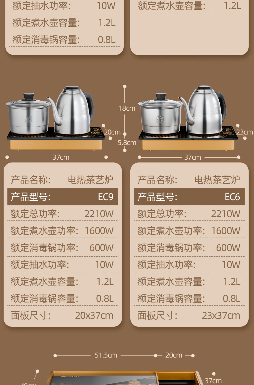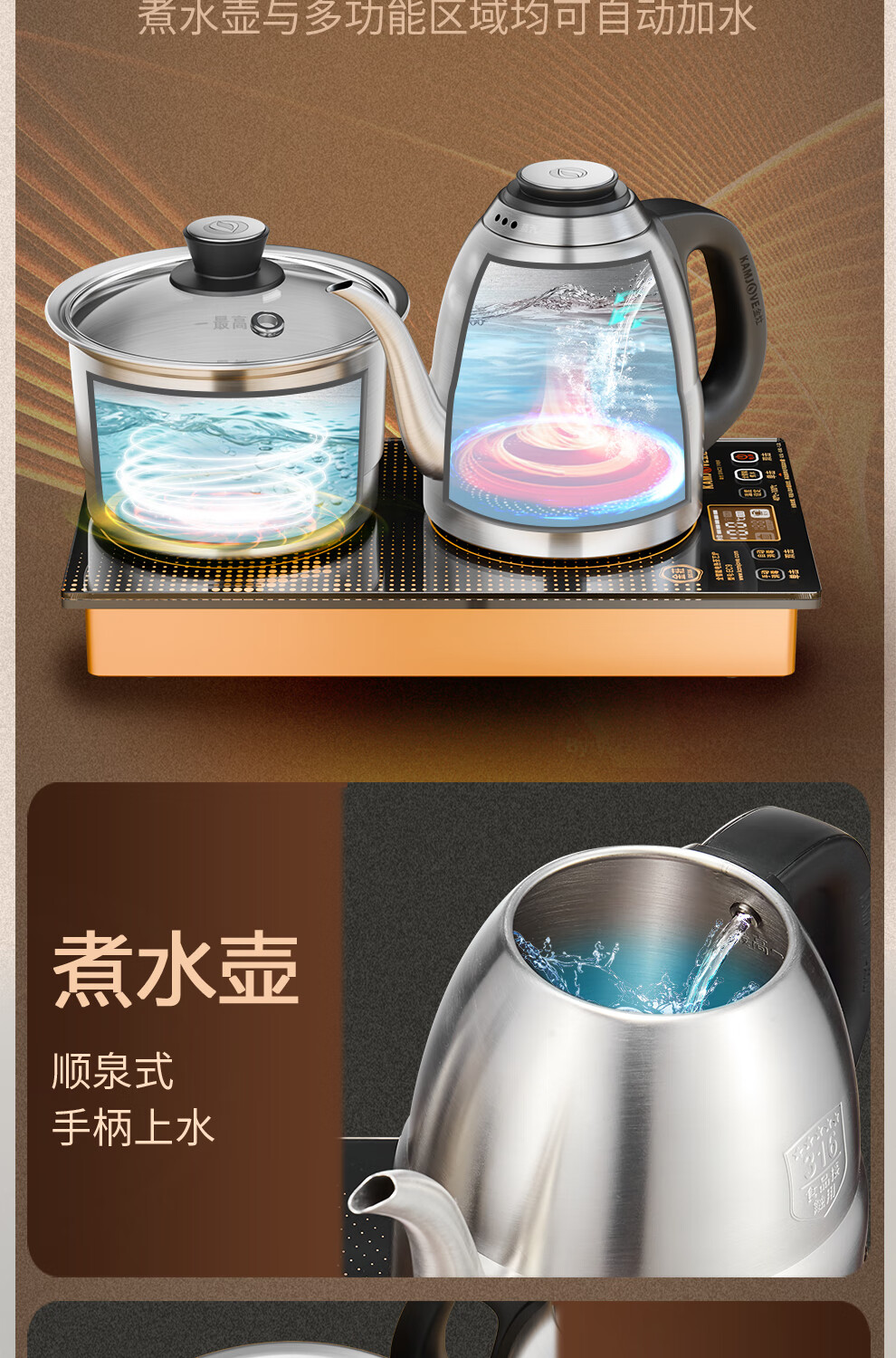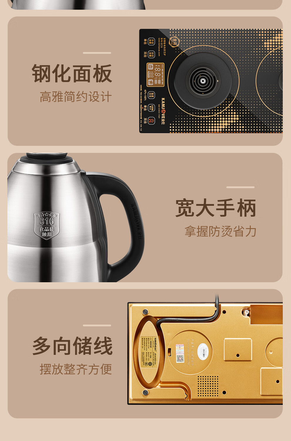 金灶(KAMJOVE)EC-9电热水壶旗舰系列全自动上水遥控涌泉底部上水烧水壶316不锈钢材质 1.2L