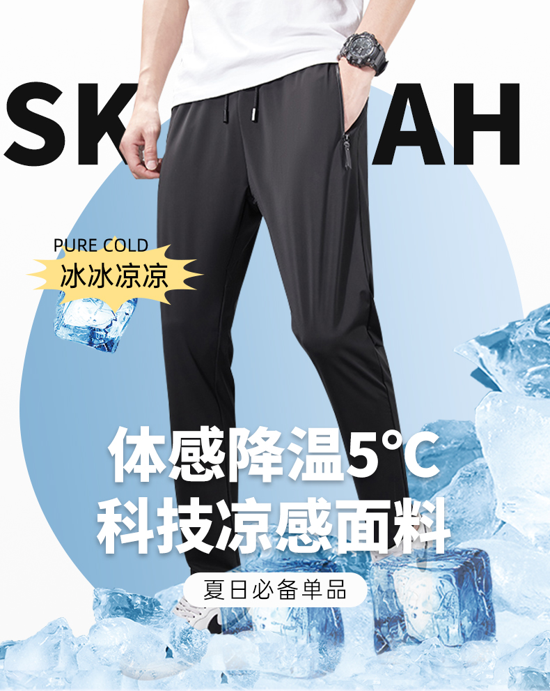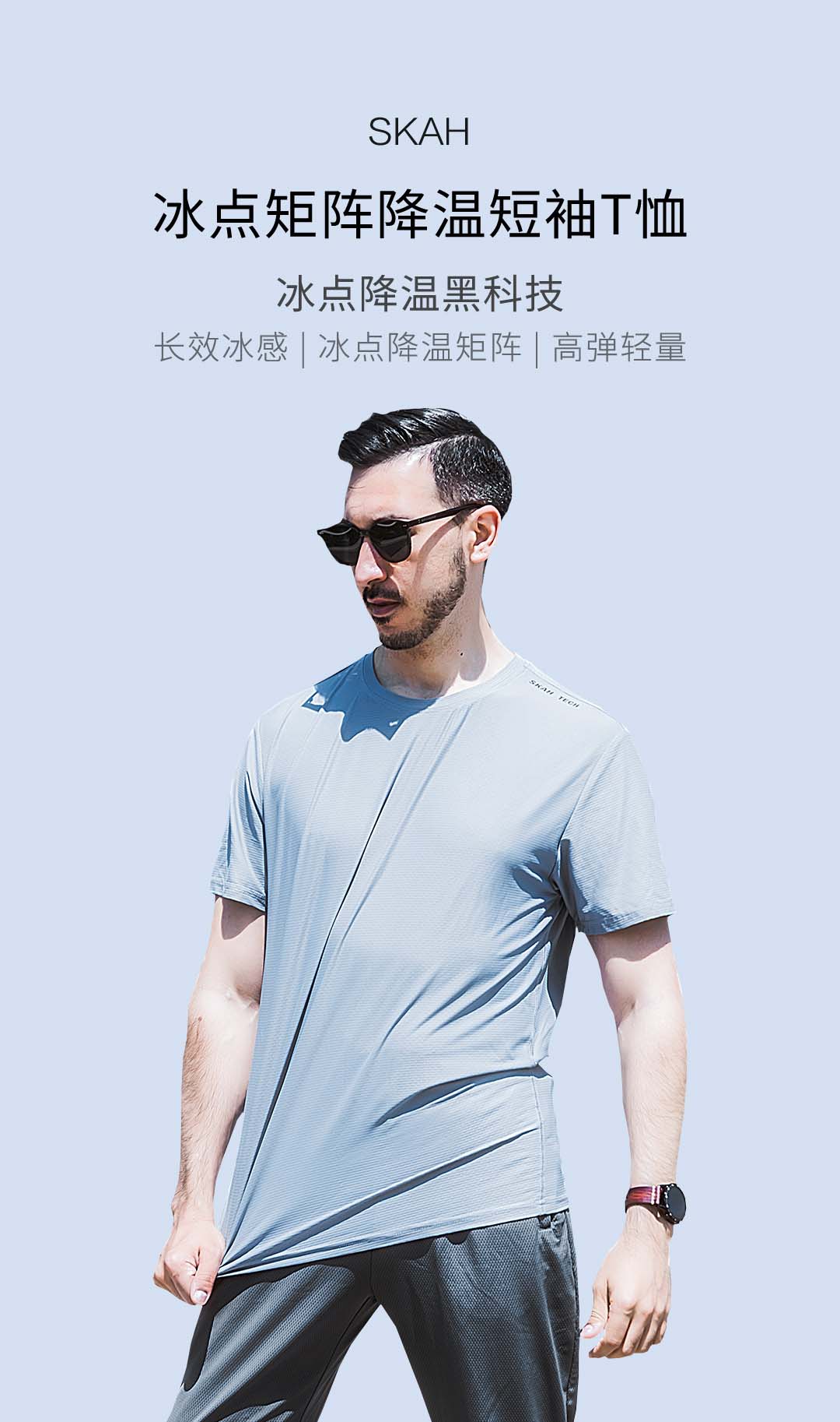 SKAH 3D冰点矩阵透气T恤/空调冰丝裤 轻薄吸湿速干