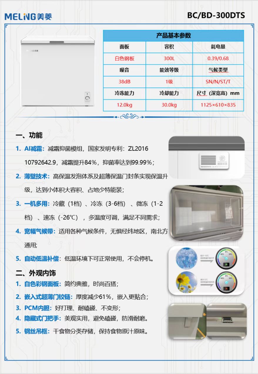 美菱 冰柜 BC/BD-300DTS 单温顶开 卧式冰柜 300升