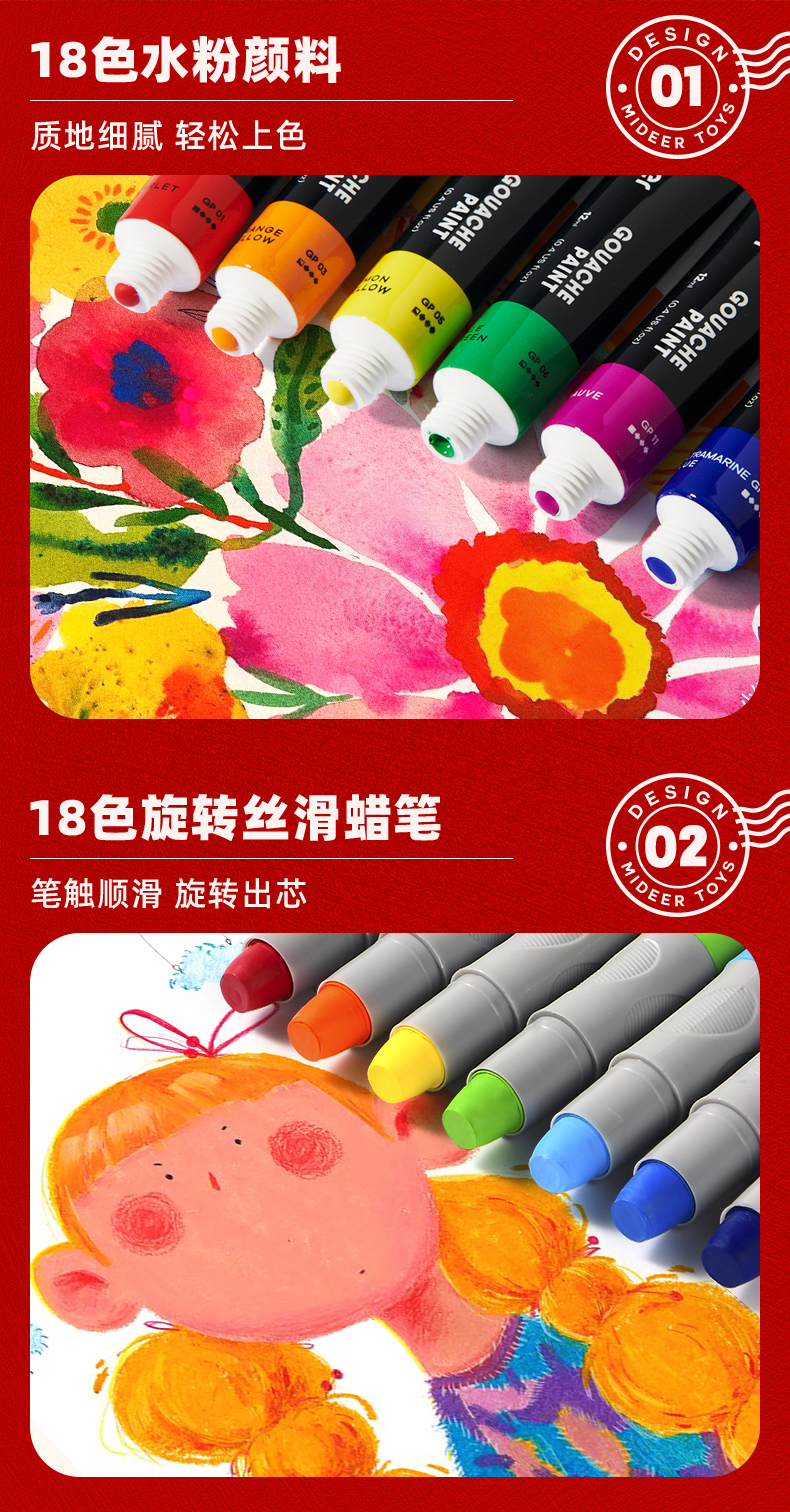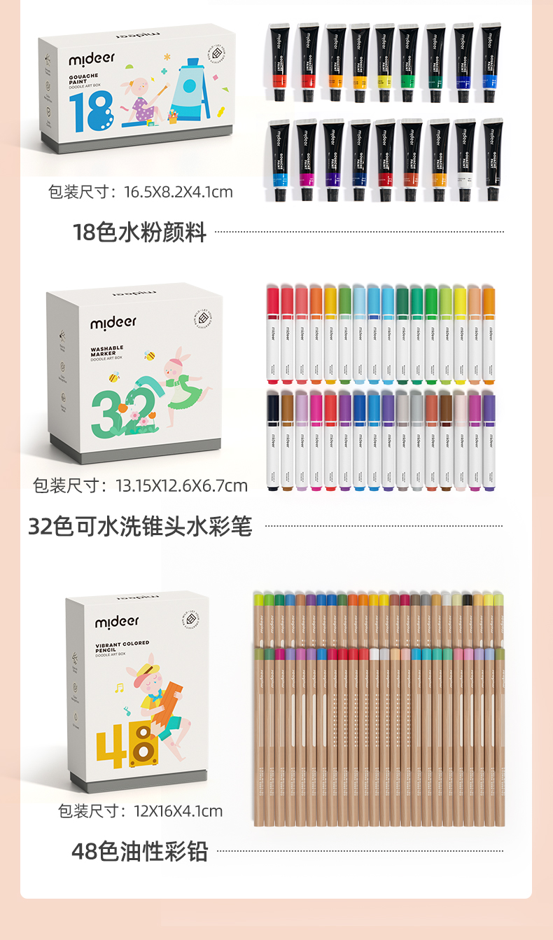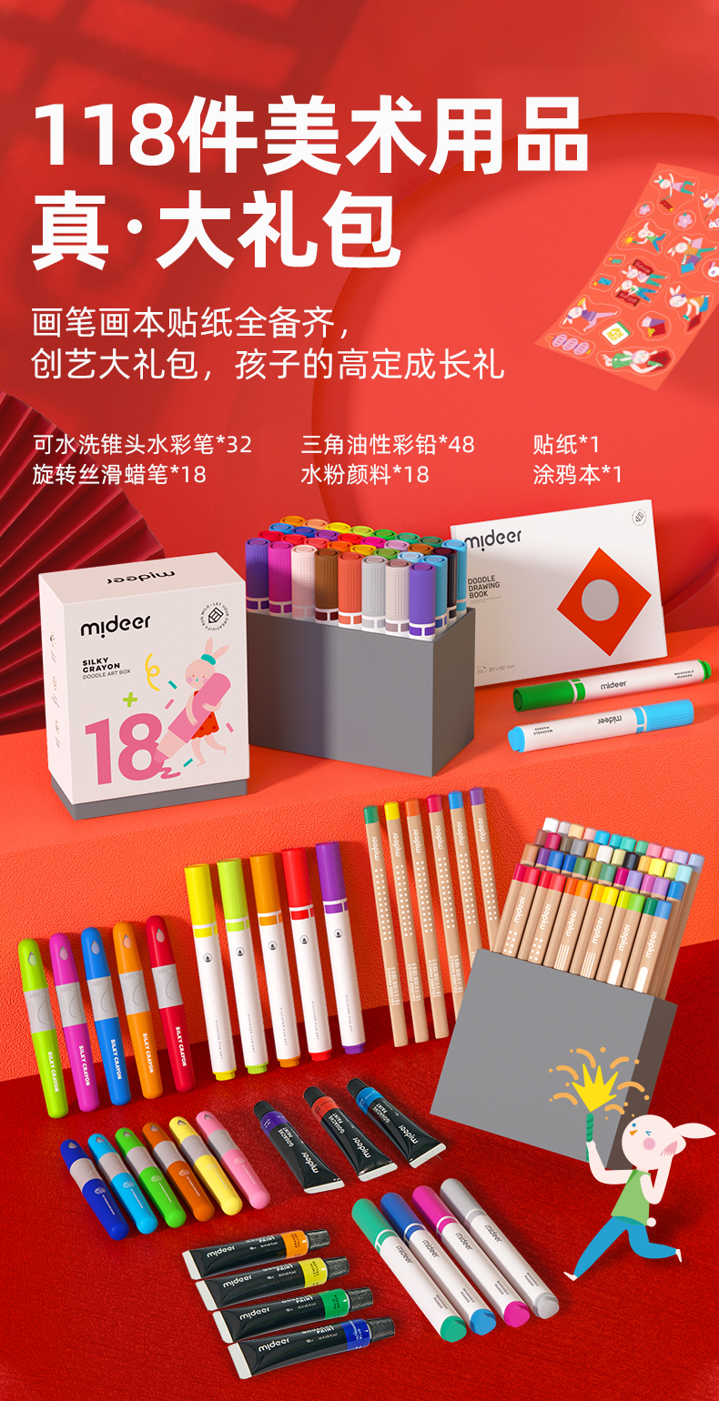 mideer弥鹿儿童画画工具套装水彩笔蜡笔水粉颜料彩色笔美术用品礼盒小学生幼儿园生日礼物绘画兔年限定礼盒装