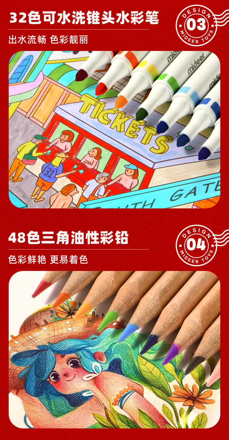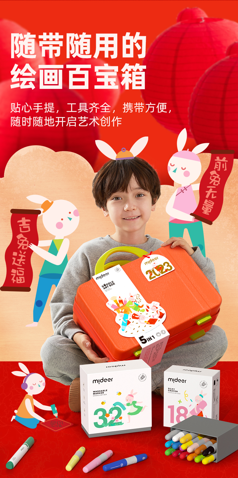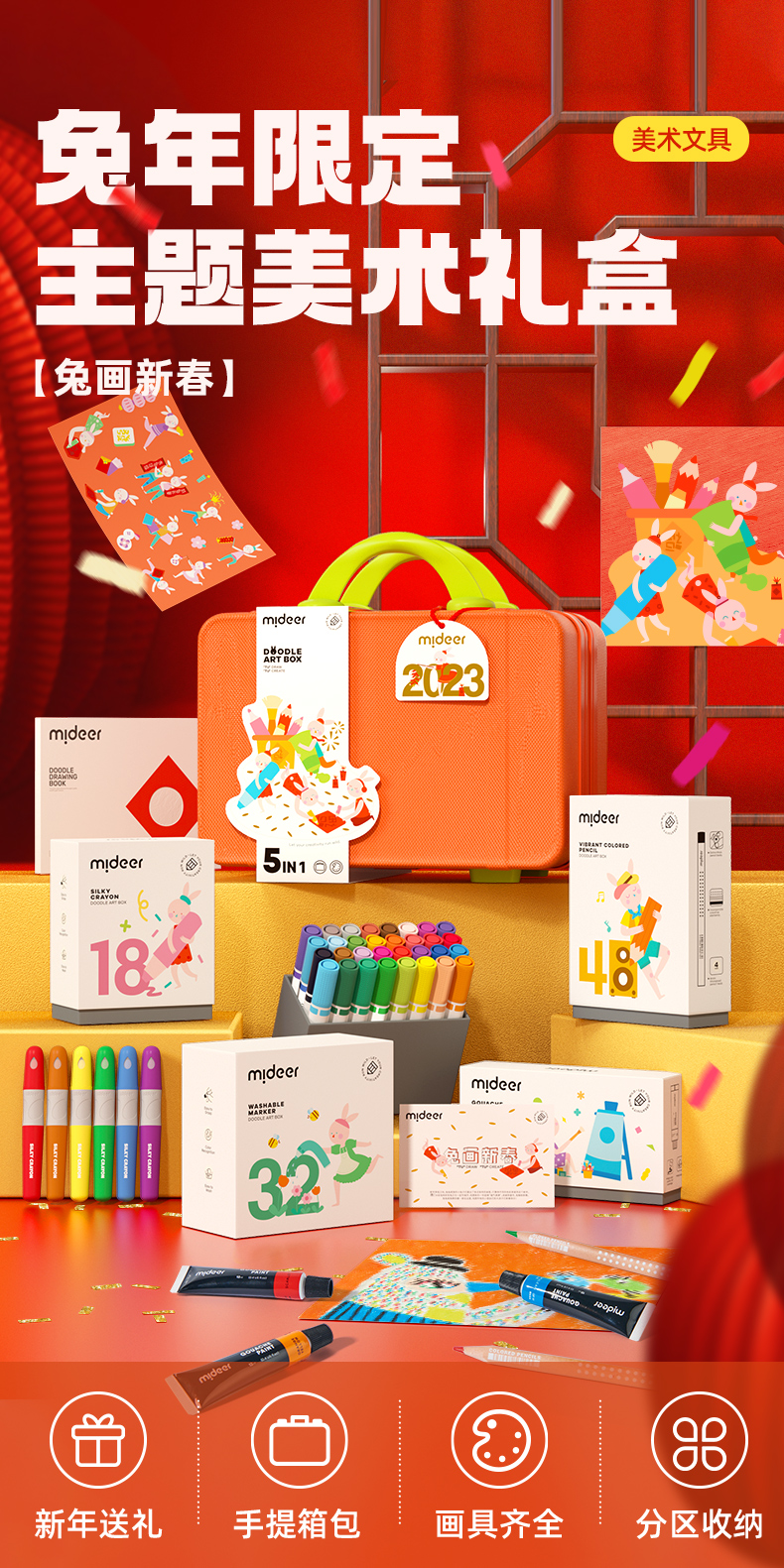 mideer弥鹿儿童画画工具套装水彩笔蜡笔水粉颜料彩色笔美术用品礼盒小学生幼儿园生日礼物绘画兔年限定礼盒装