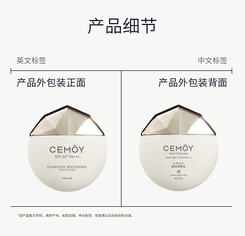 【百图lulu好物】【CEMOY防晒霜】【美白防晒双特证】SPF50+ 澳洲CEMOY澳诗茉无瑕倍护美白防晒乳