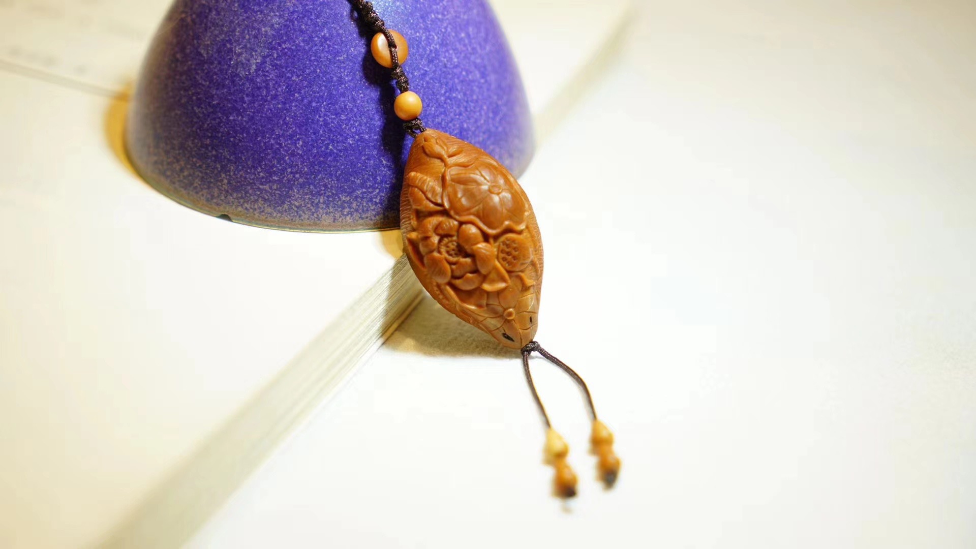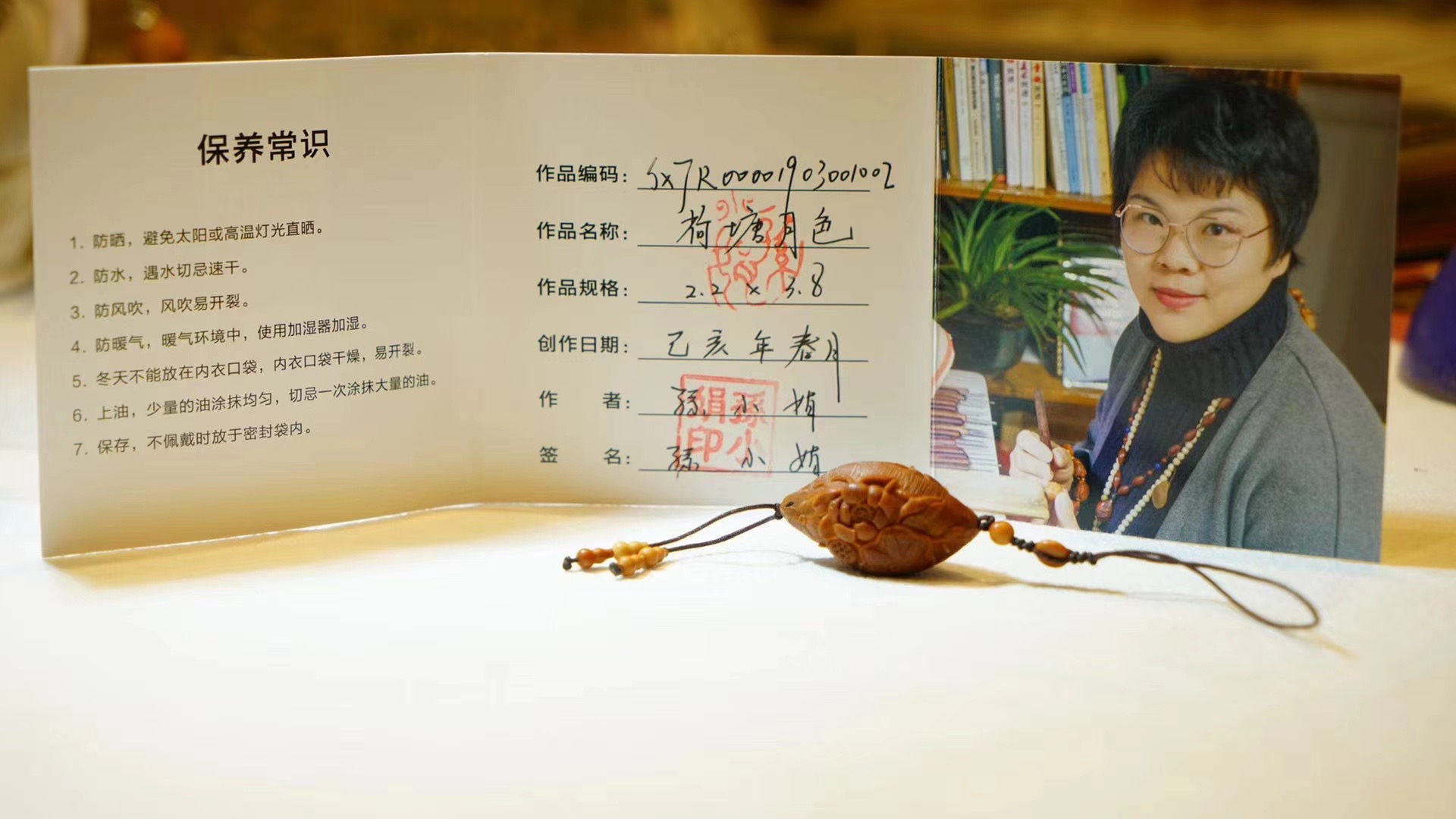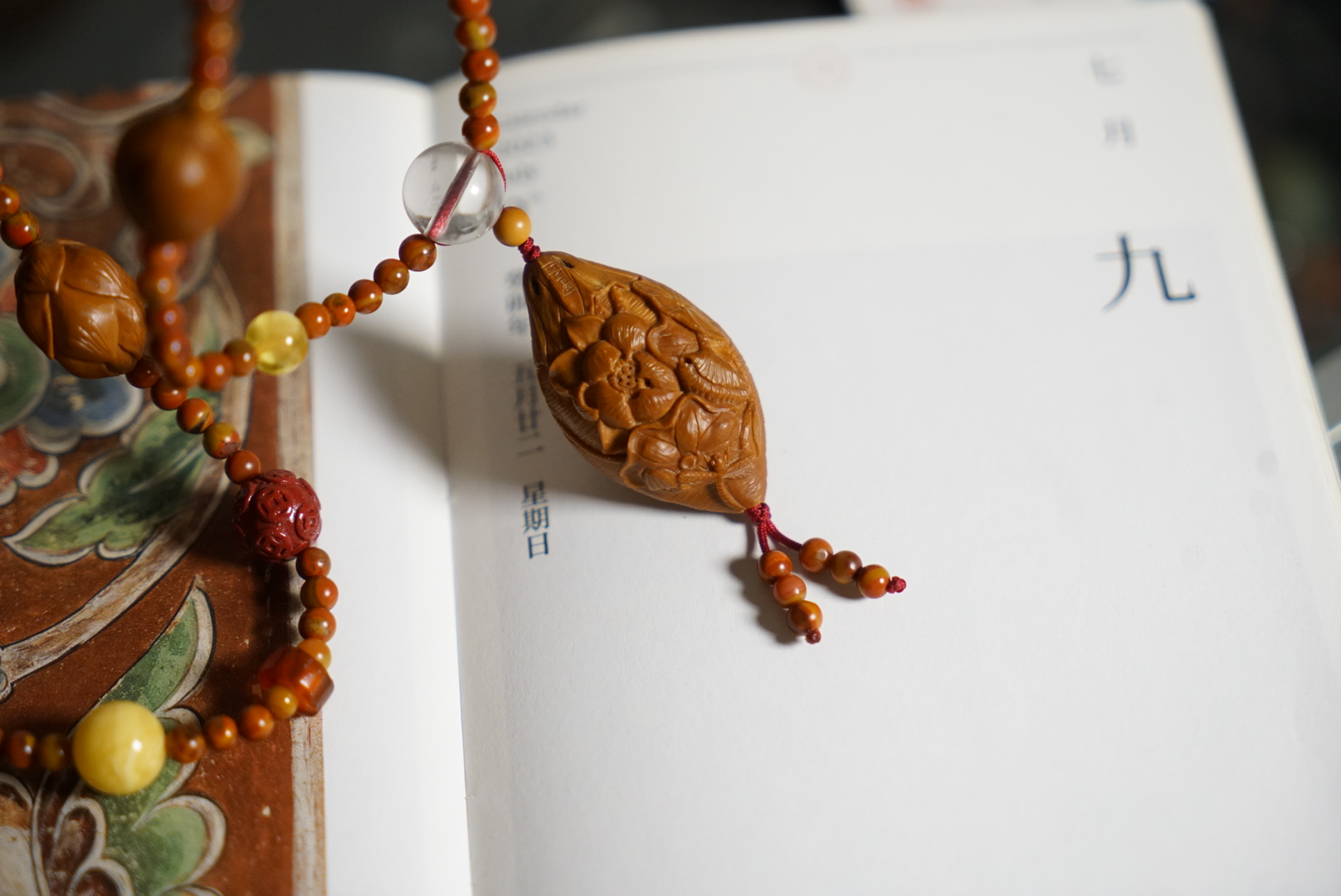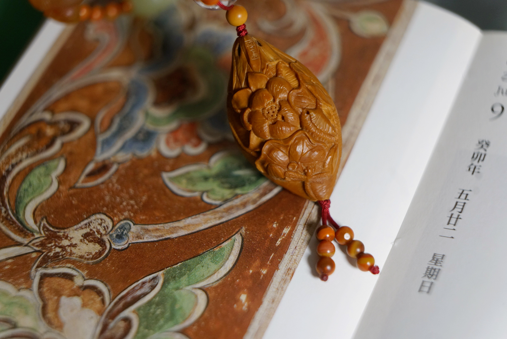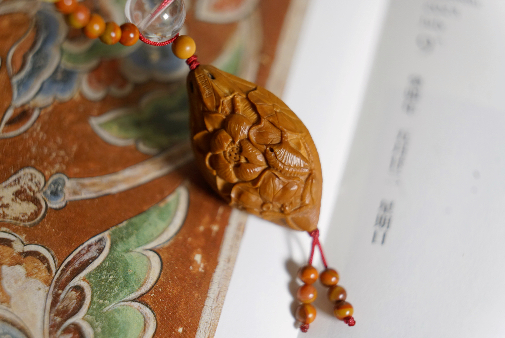 名家款"荷塘月色"双面大单籽核雕吊坠。