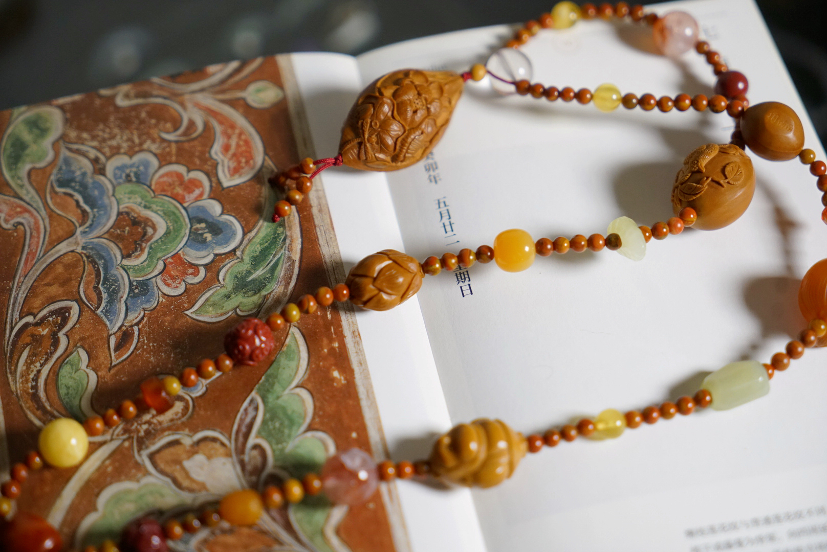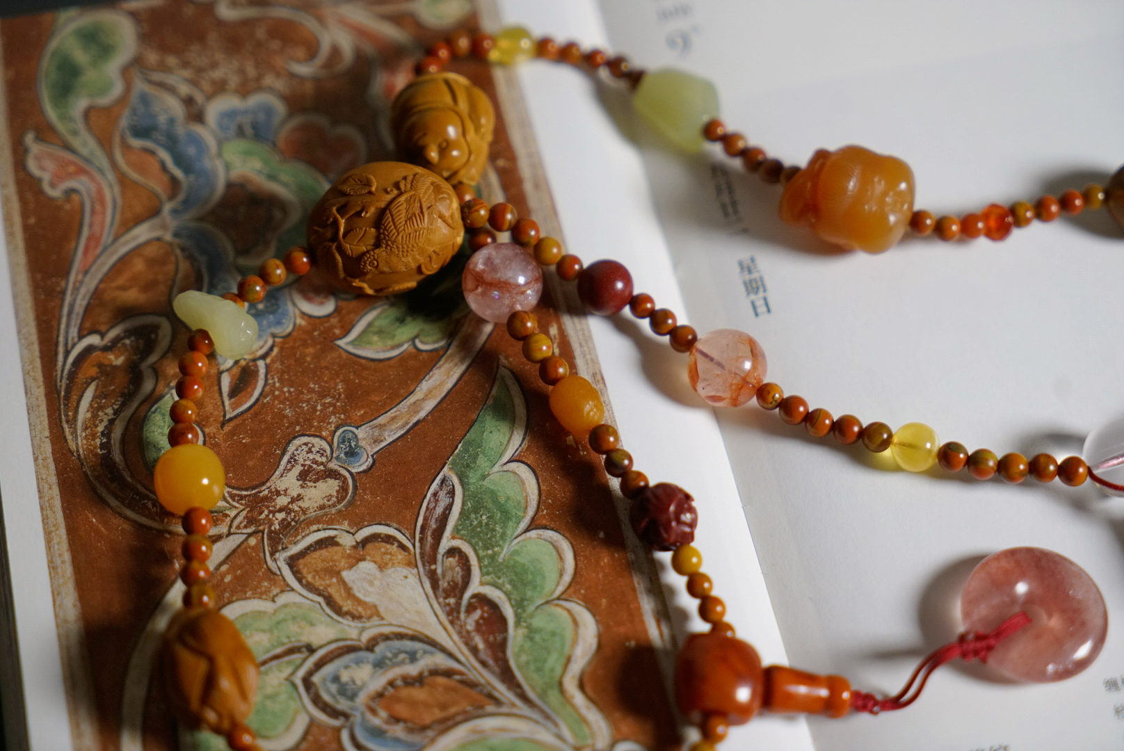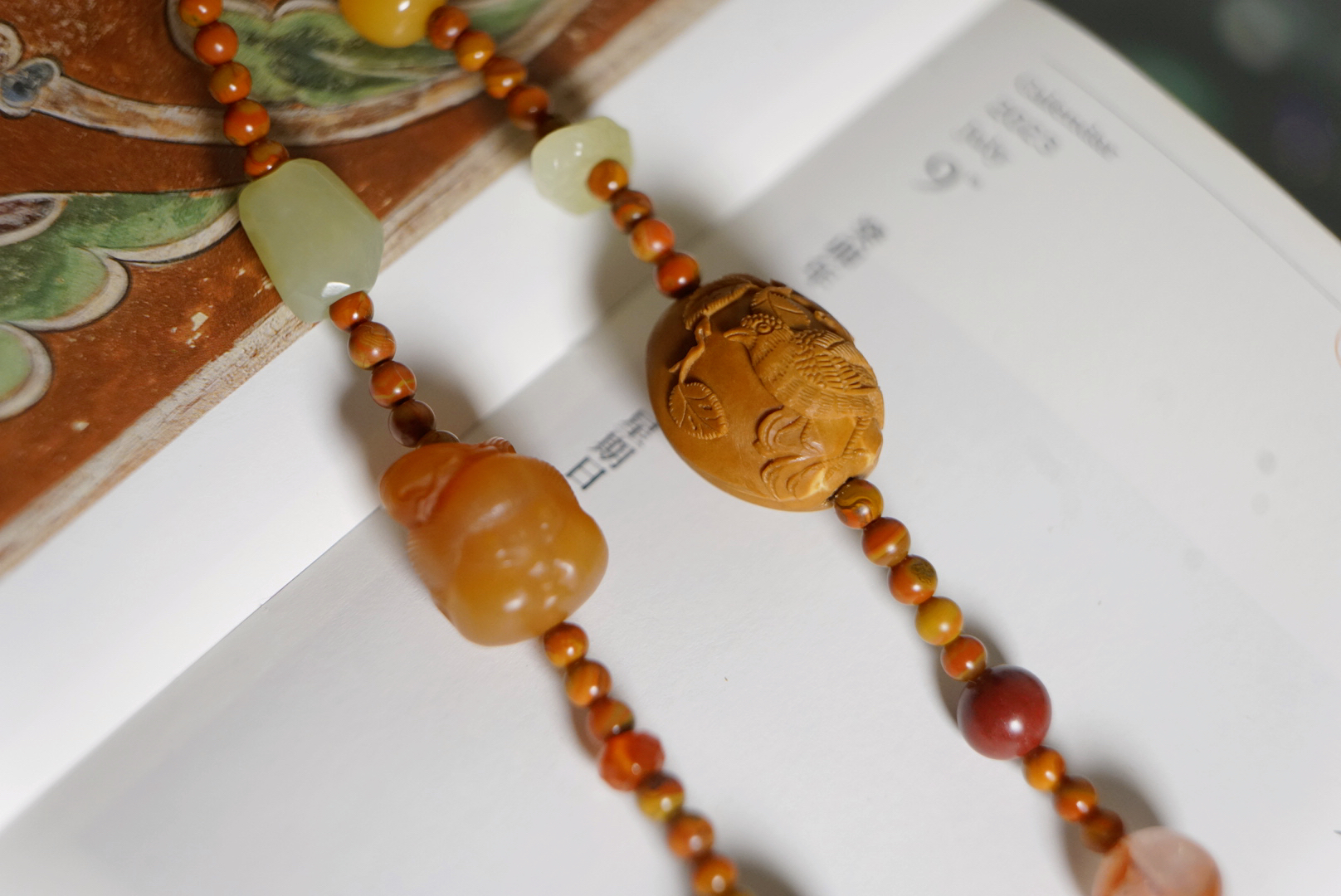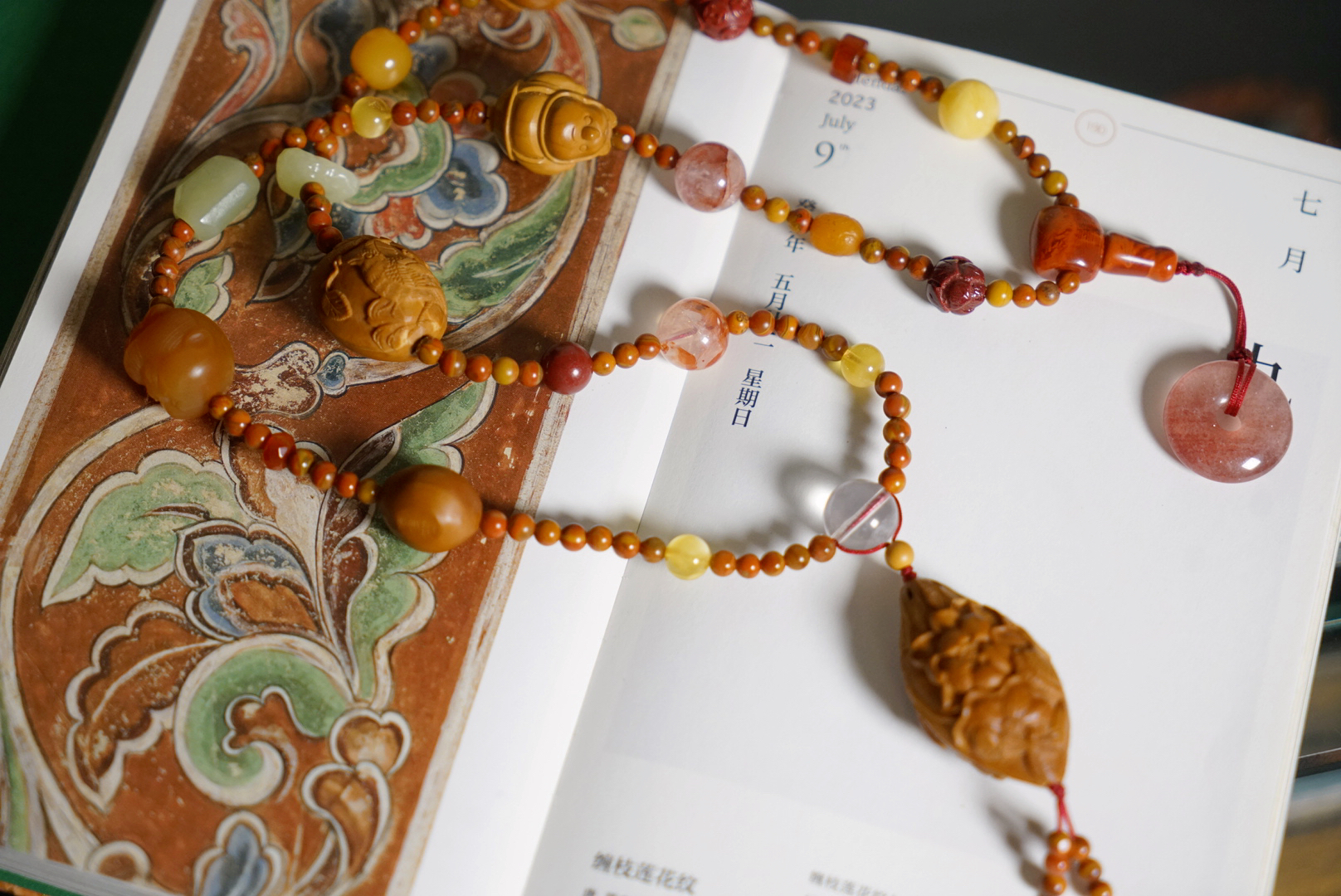 黄皮包浆料南红玛瑙做主体,"鸟语花香橄榄核"链子整体设计,可爱的富贵圆满唐美人仿佛在花园喜悦逛gai~喜庆又可爱的一条毛衣链~