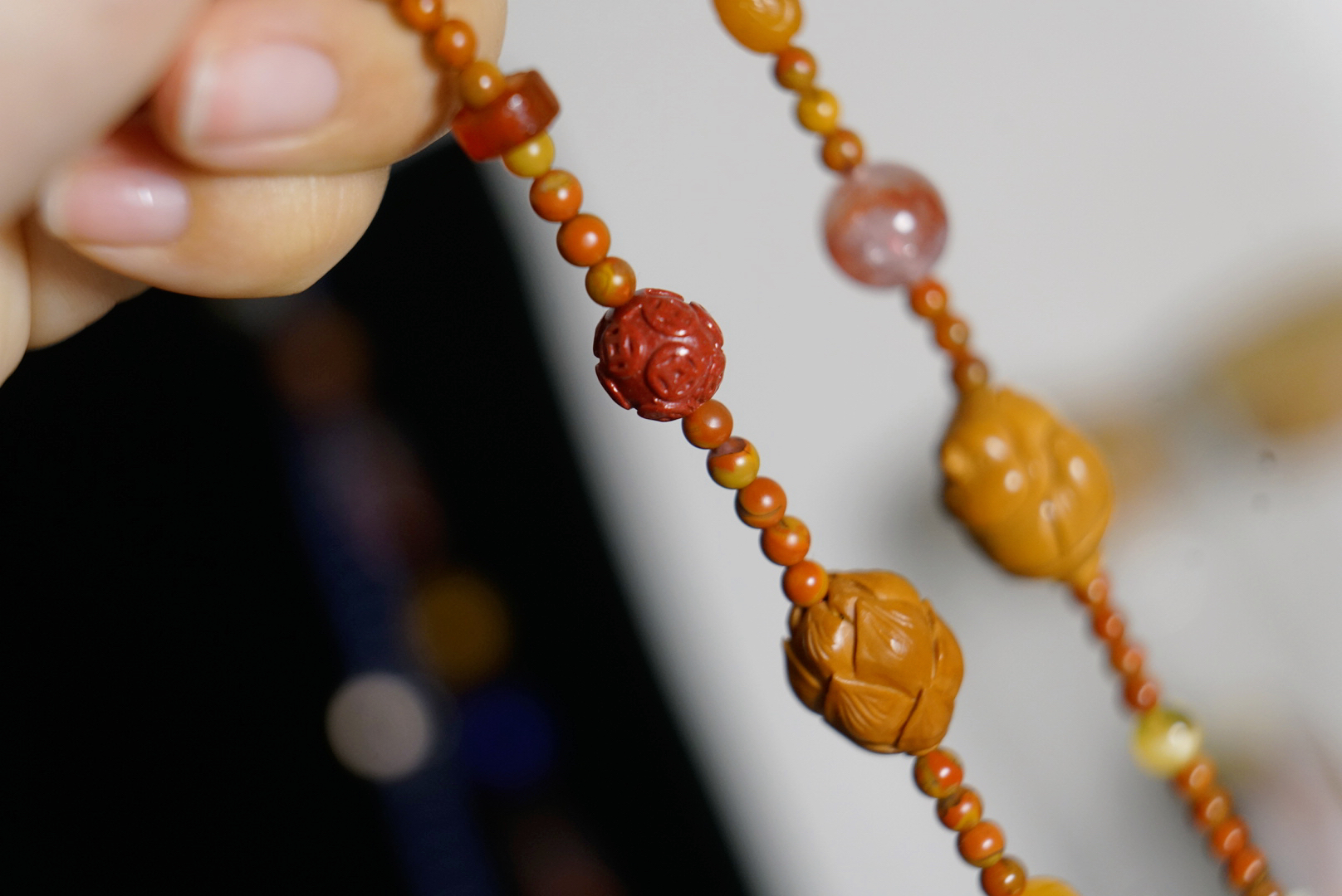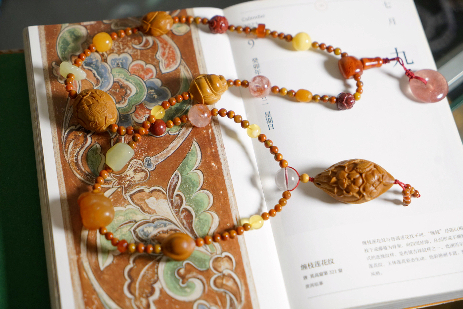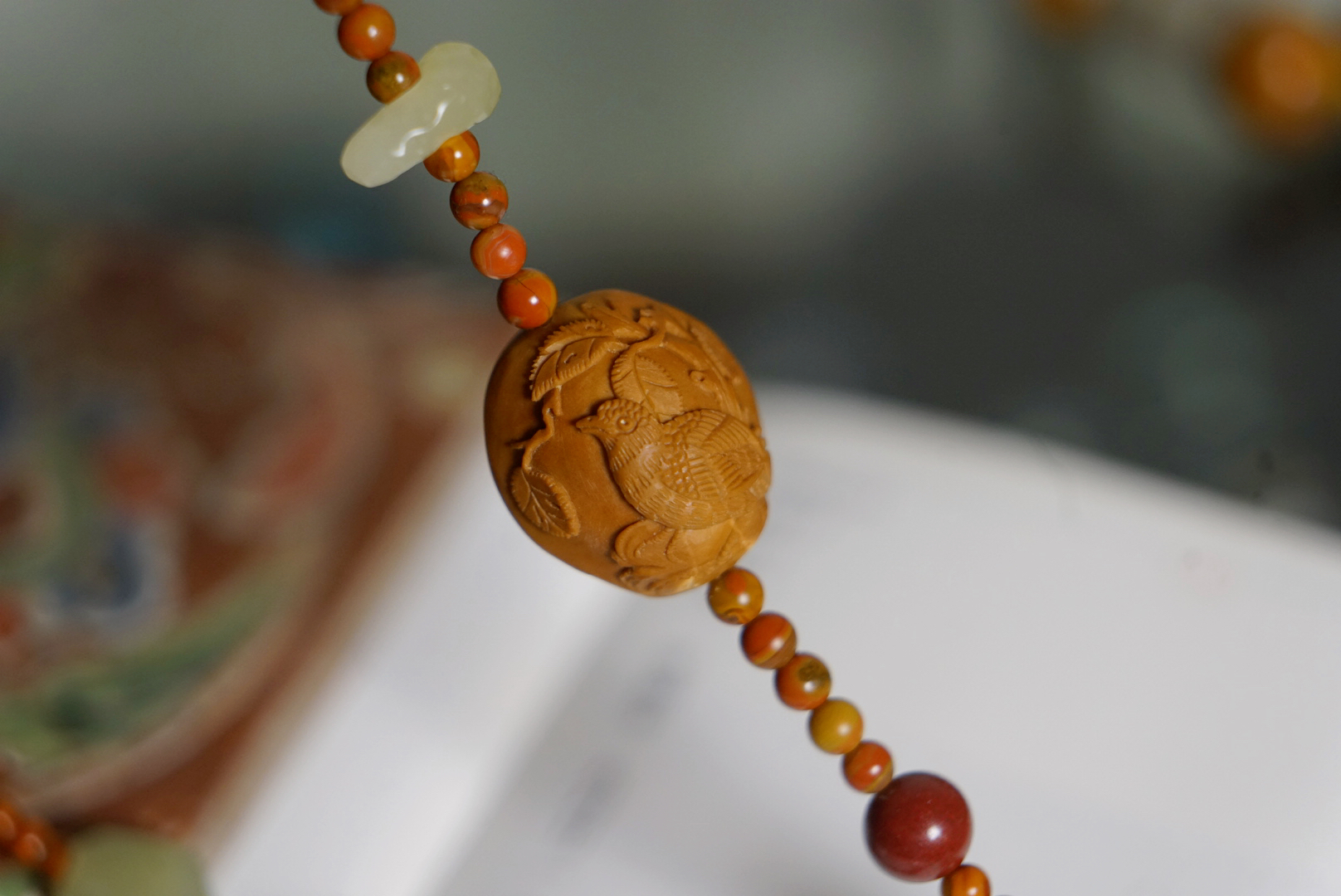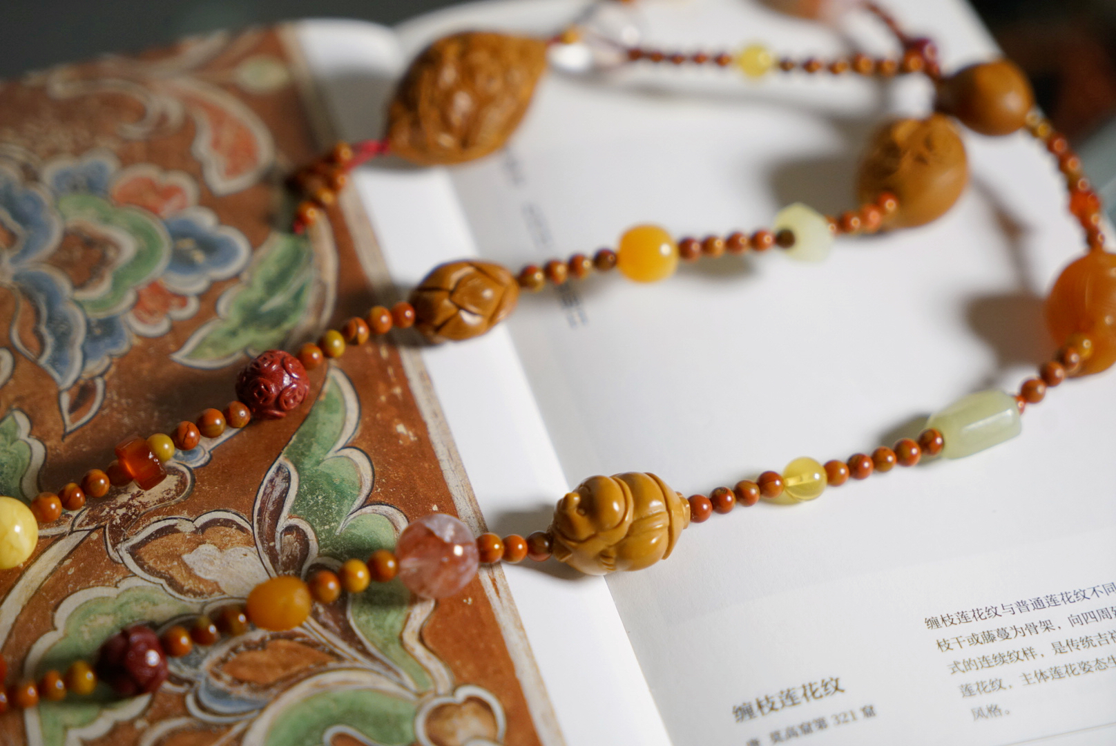 黄皮包浆料南红玛瑙做主体,"鸟语花香橄榄核"链子整体设计,可爱的富贵圆满唐美人仿佛在花园喜悦逛gai~喜庆又可爱的一条毛衣链~
