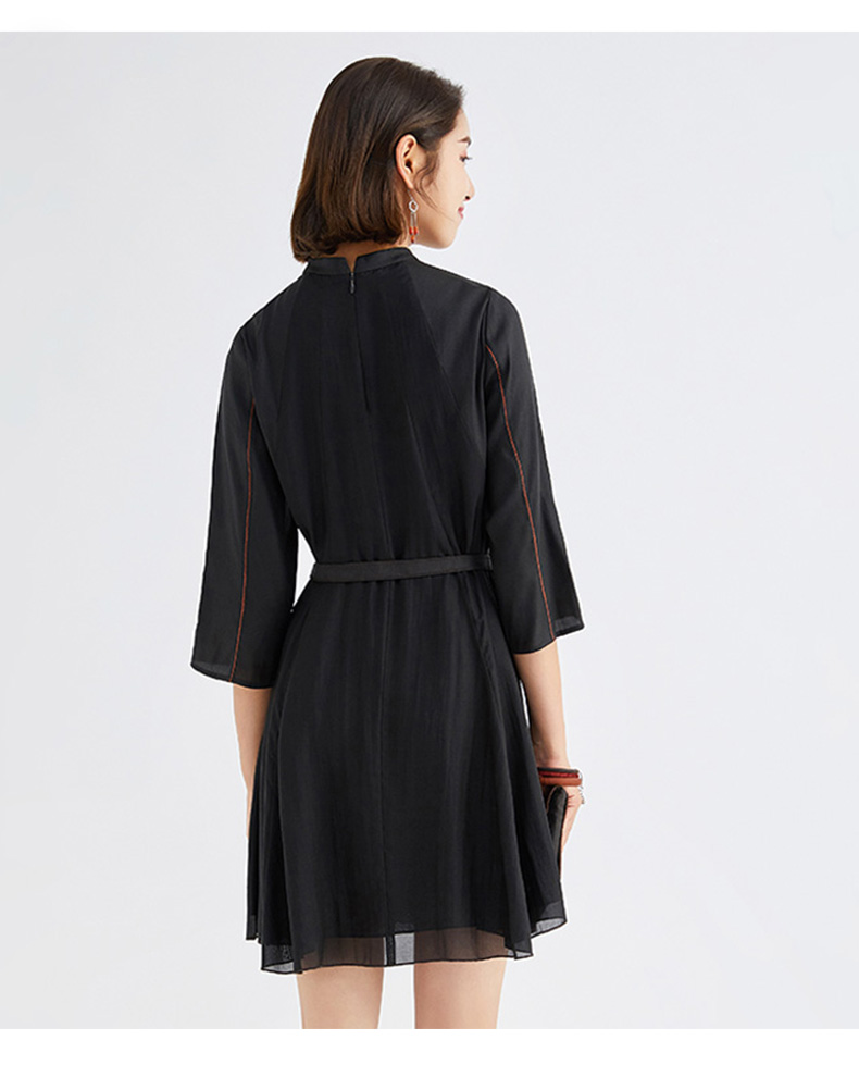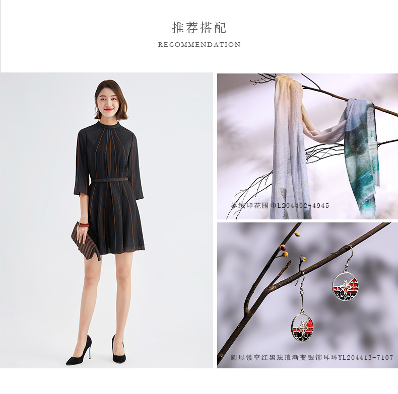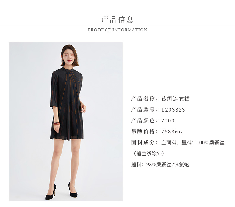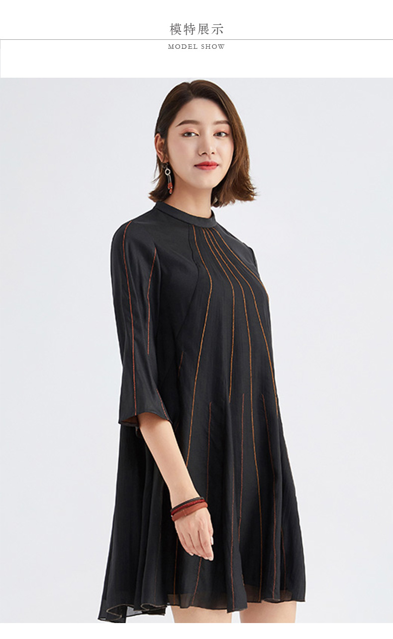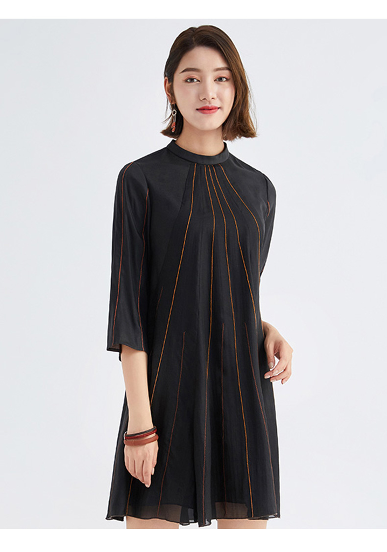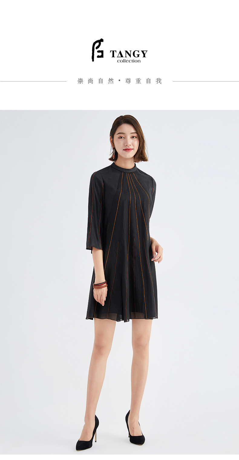 TANGY Collection/天意2020年秋季新品林隐系列线迹莨绸连衣裙
