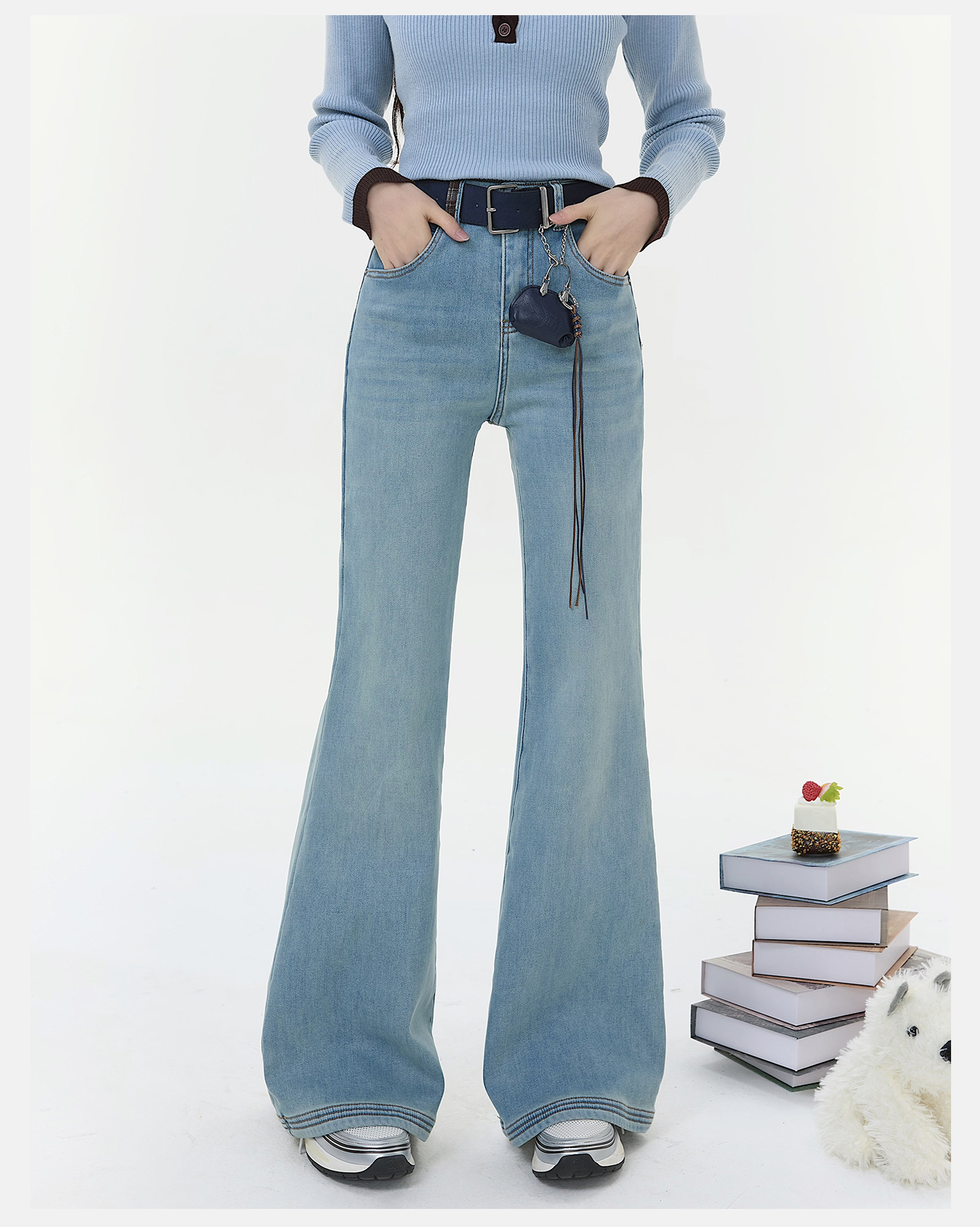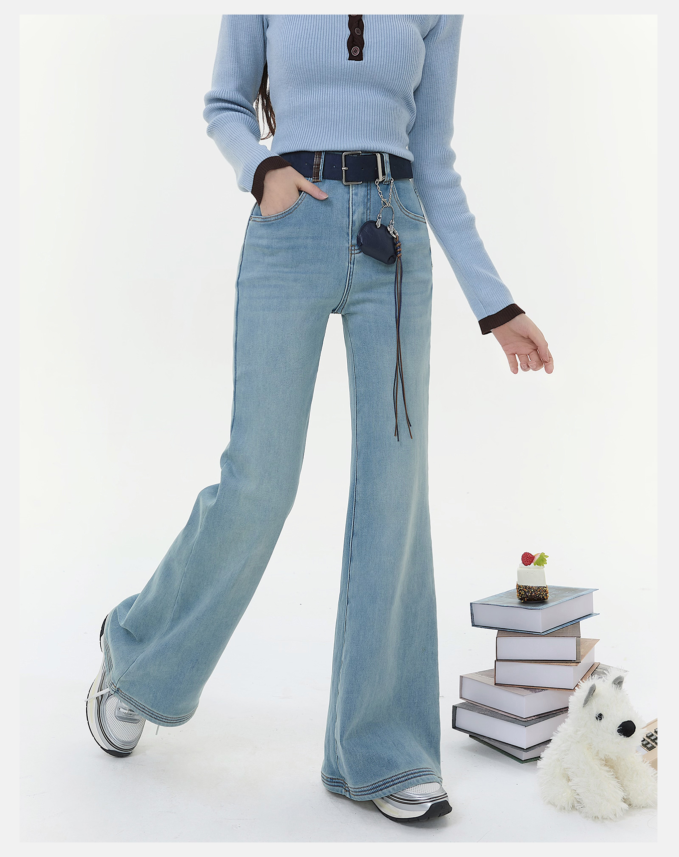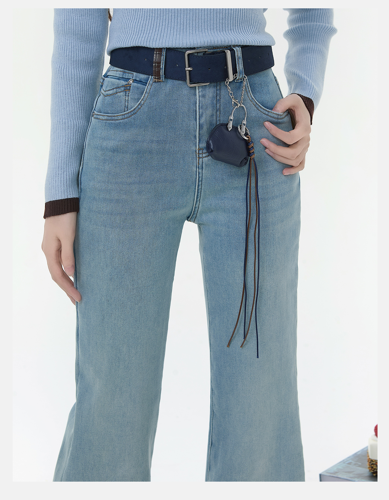 P&X设计师女装2025冬季街头风阔腿加绒牛仔长裤825410164 蓝色