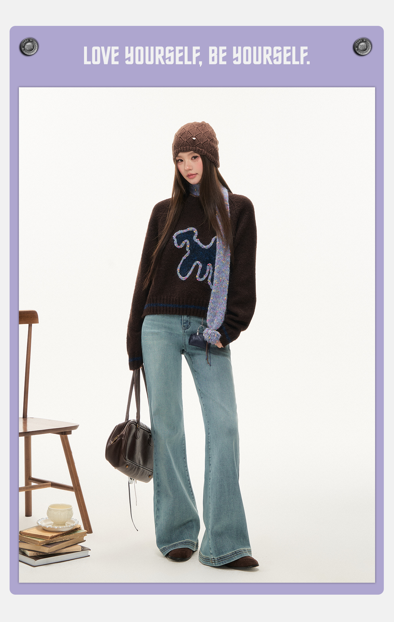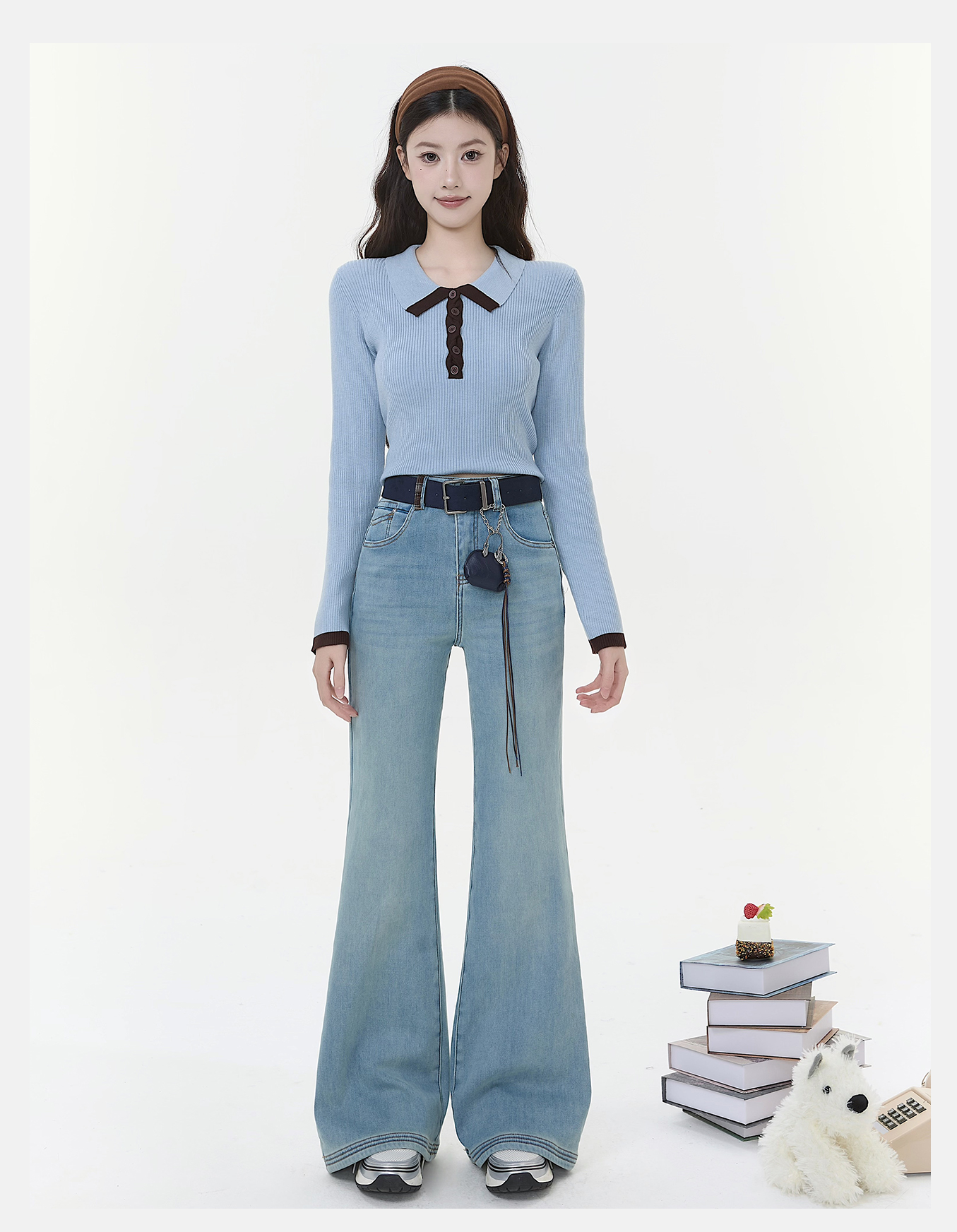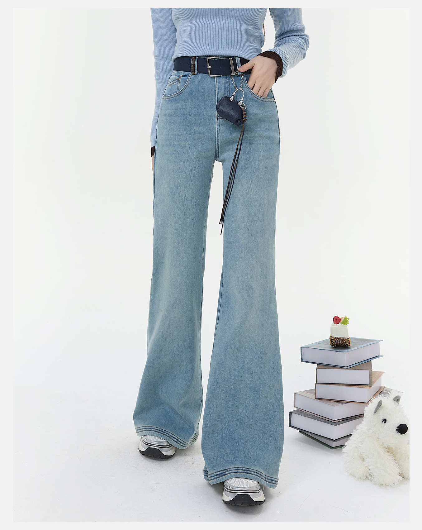 P&X设计师女装2025冬季街头风阔腿加绒牛仔长裤825410164 蓝色