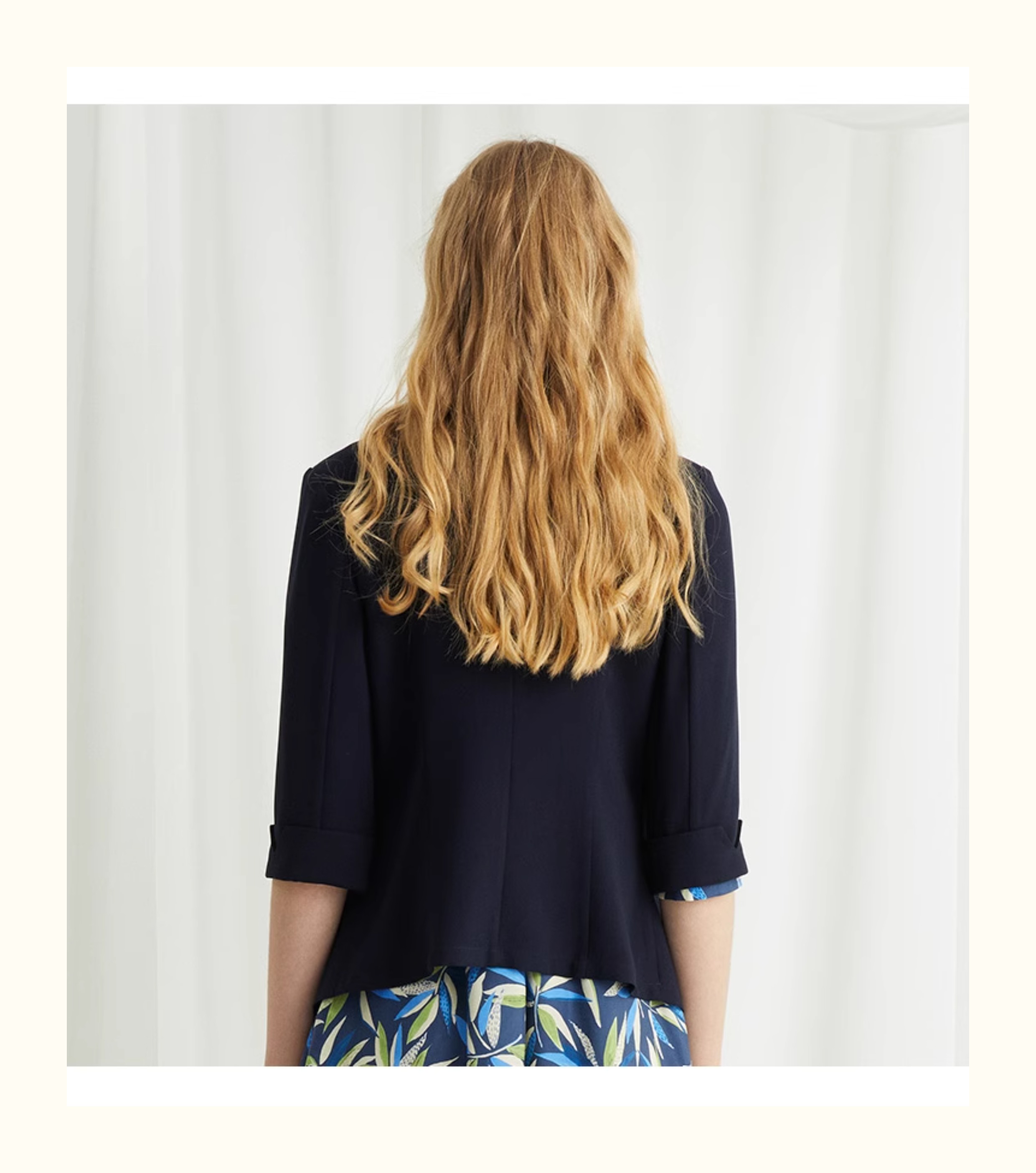 VIVIAN LIU R2443008初秋新款时尚小翻领不规则下摆开衫长袖上衣