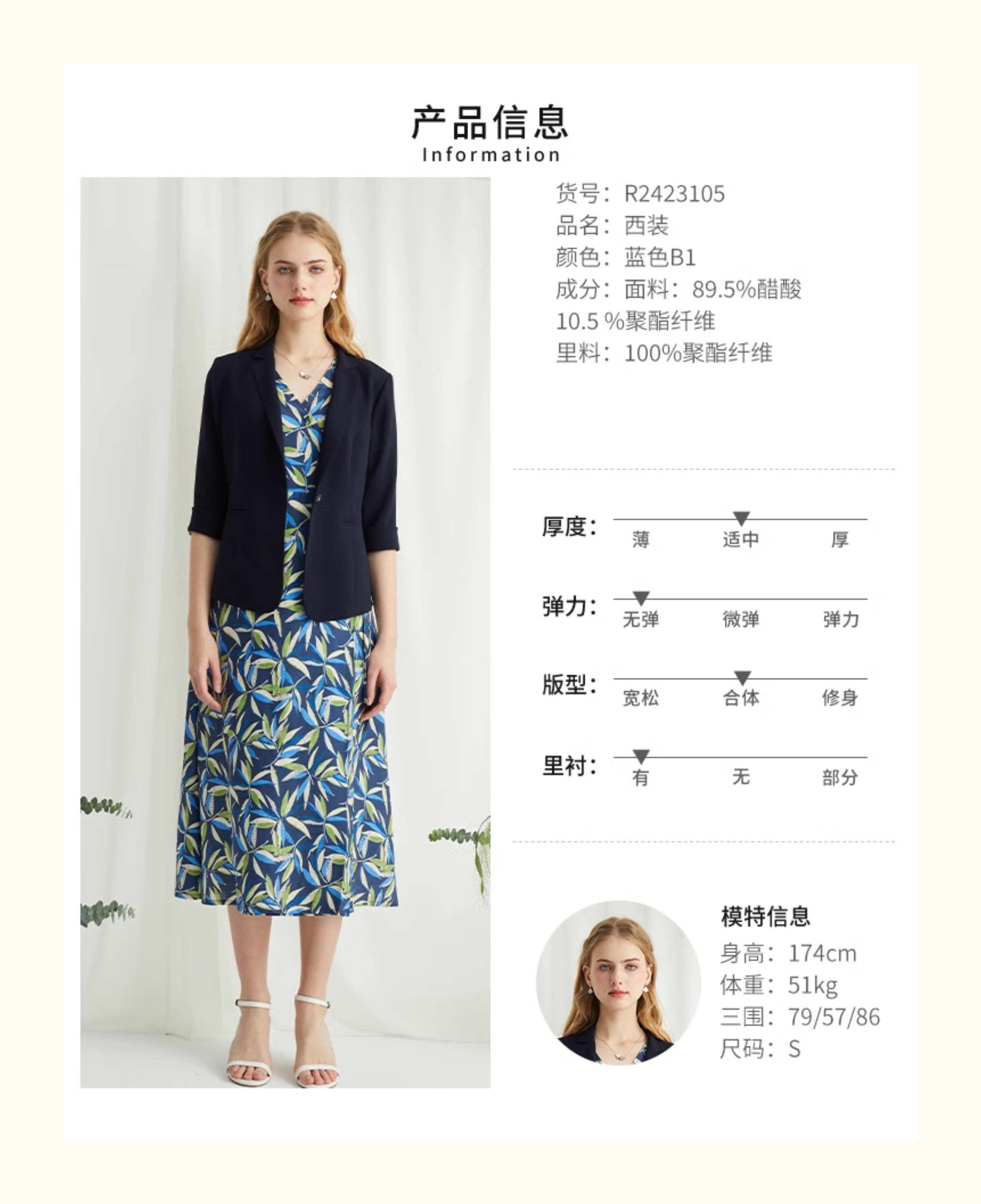 VIVIAN LIU薇薇安刘R2423105女装新款时尚翻领一粒扣圆摆西装