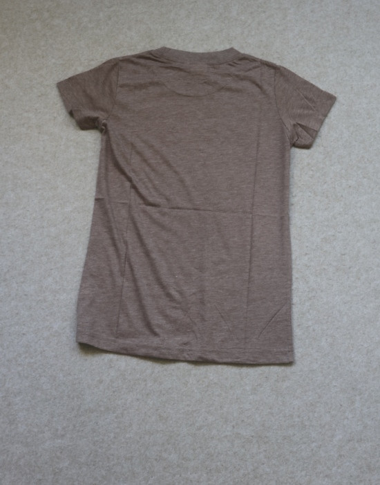 弹力螺纹的小圆领口 正肩微收腰 微包身的版型 衣身不是特别短的那种