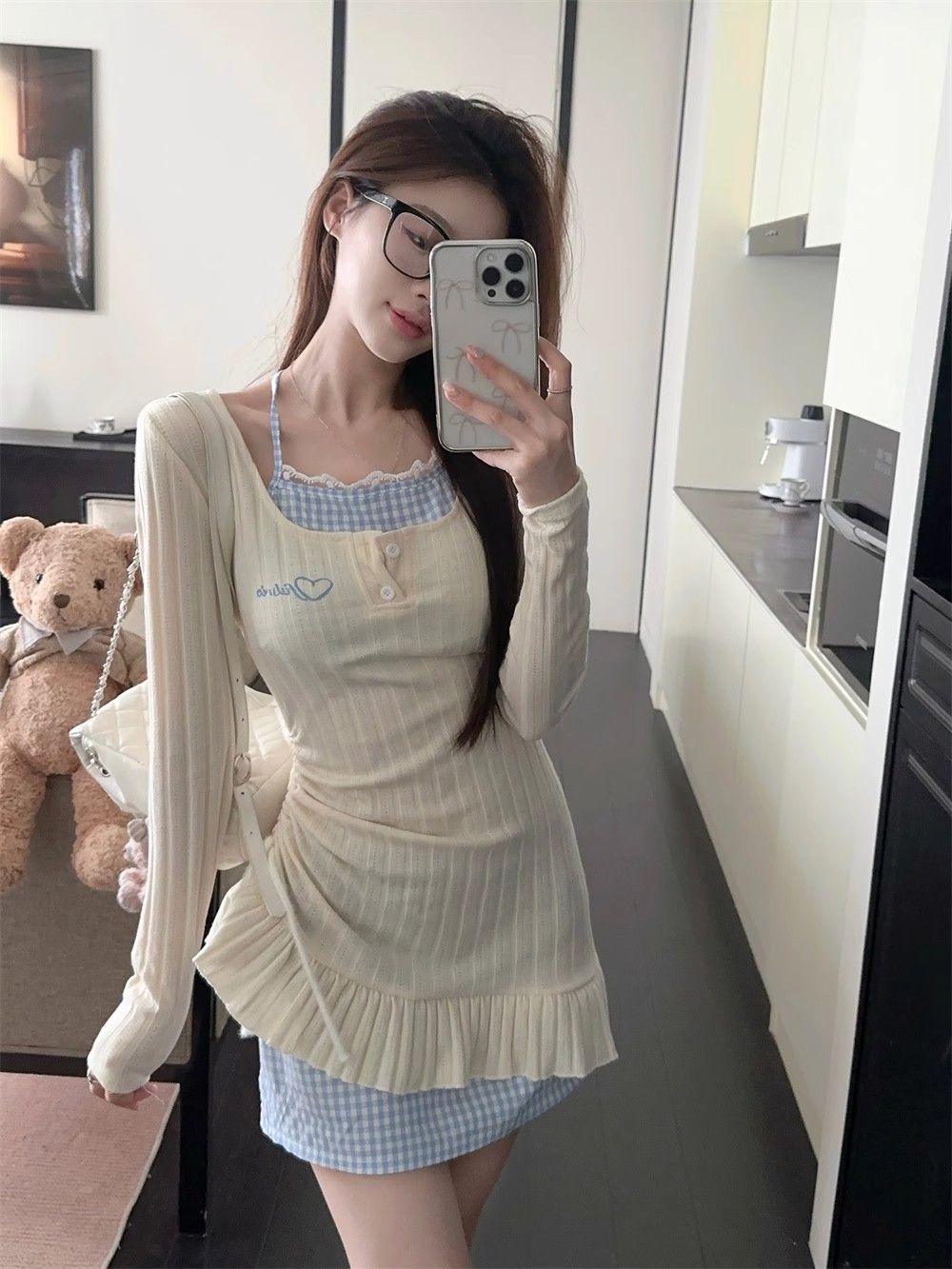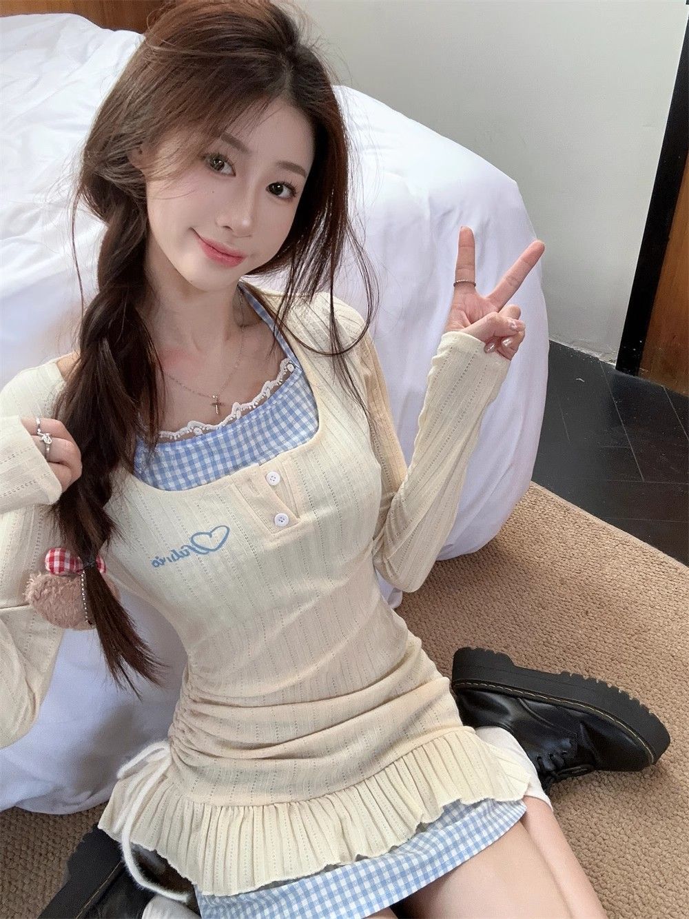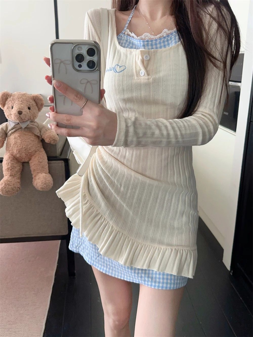 【纯欲风挂脖连衣裙】夏秋季假两件裙子 甜辣妹收腰不规则拼接叠穿短裙