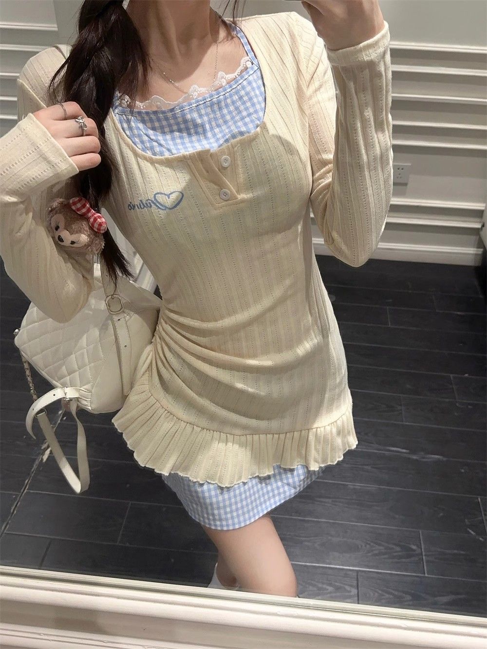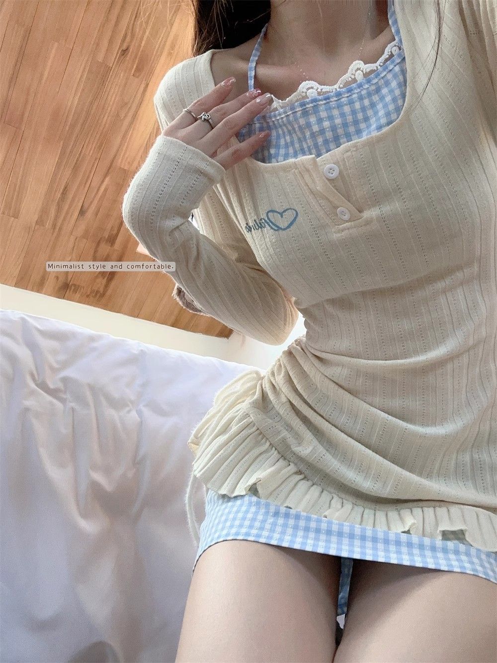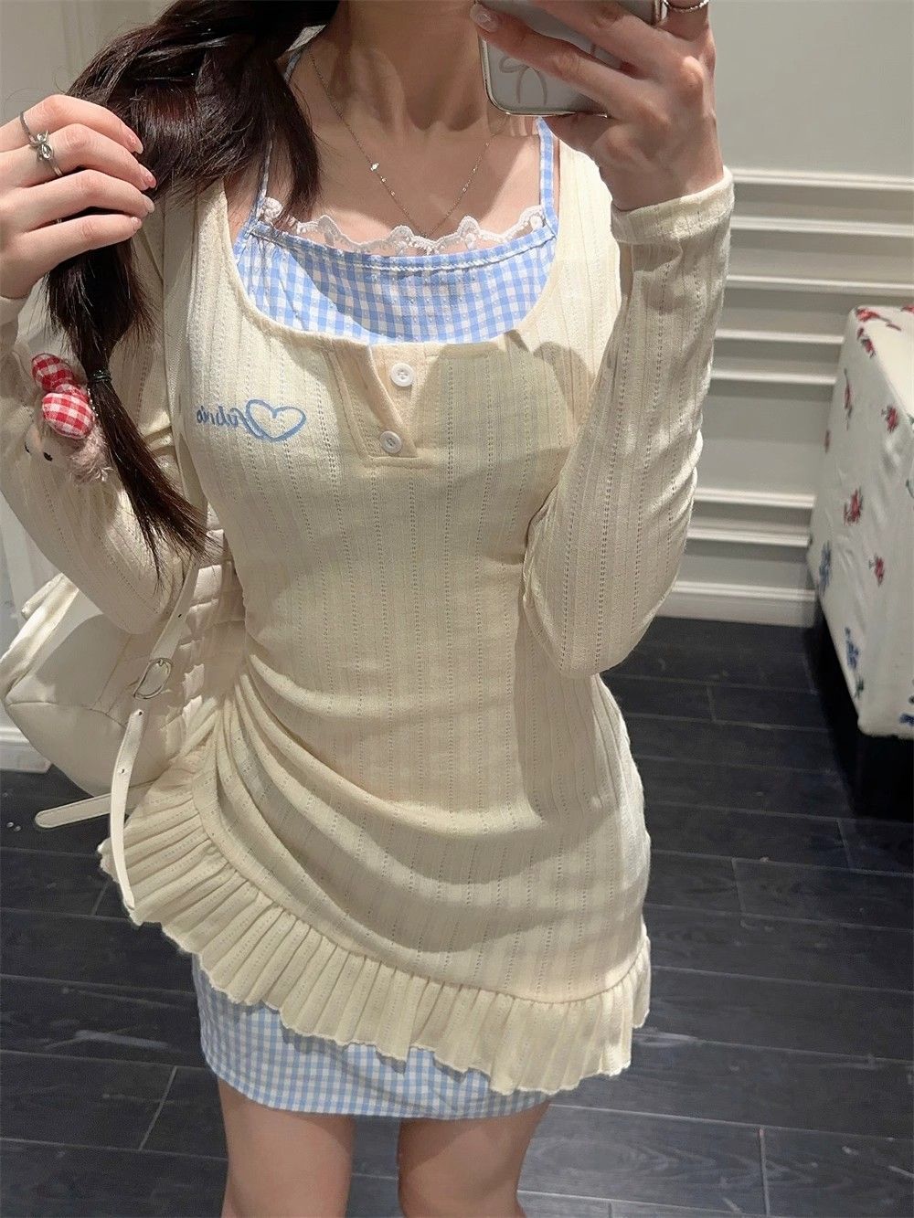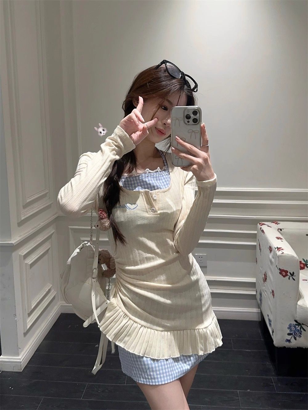 【纯欲风挂脖连衣裙】夏秋季假两件裙子 甜辣妹收腰不规则拼接叠穿短裙