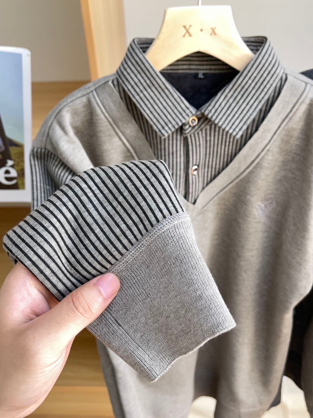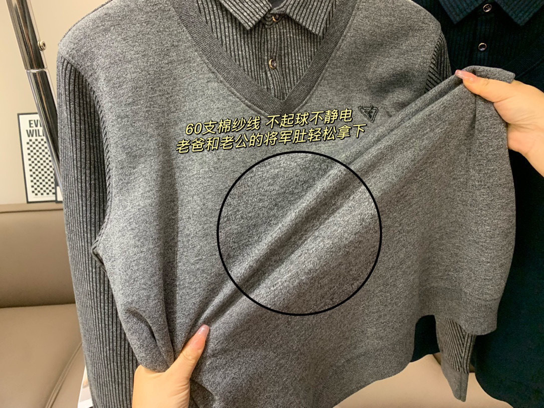 还做了假两件的设计,很适合爸爸们,穿起来很精神
