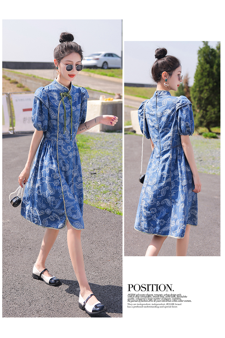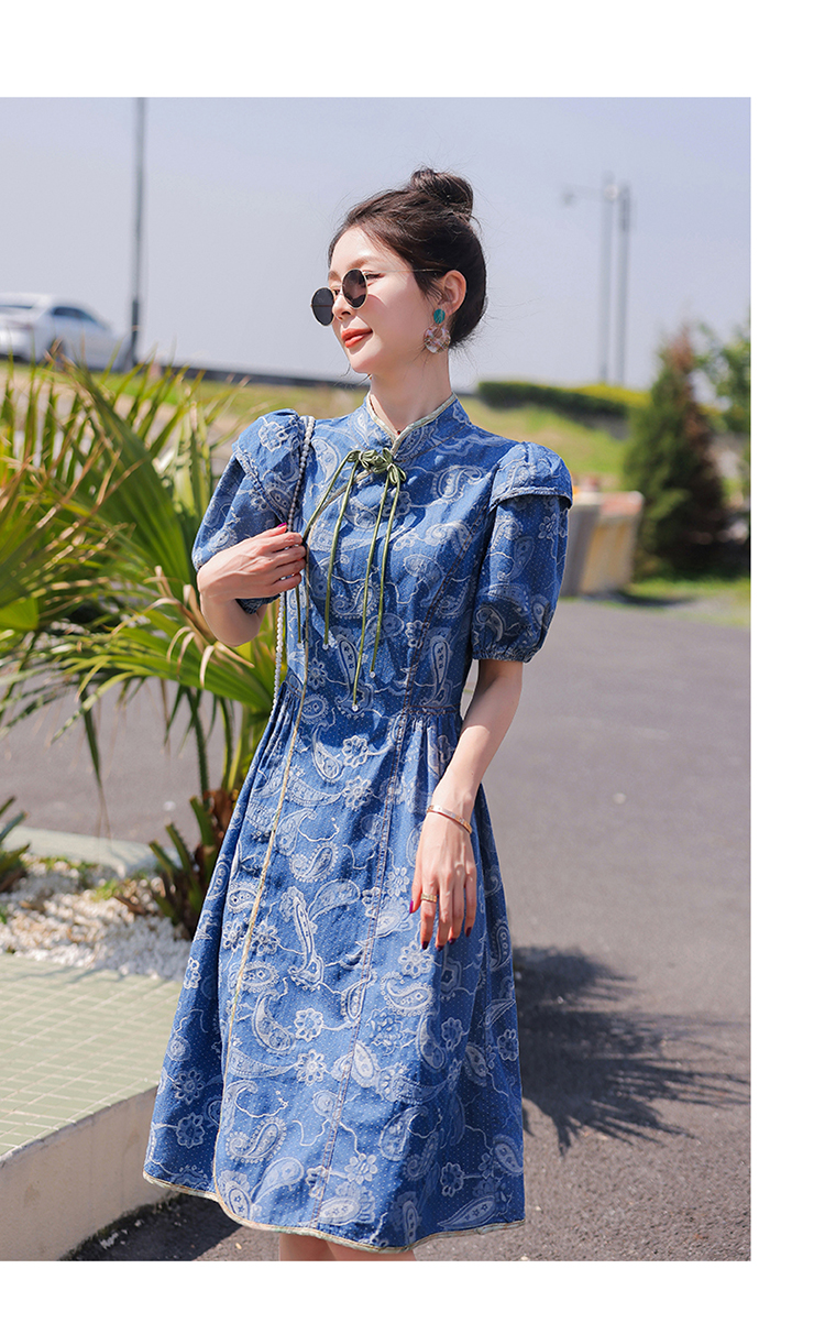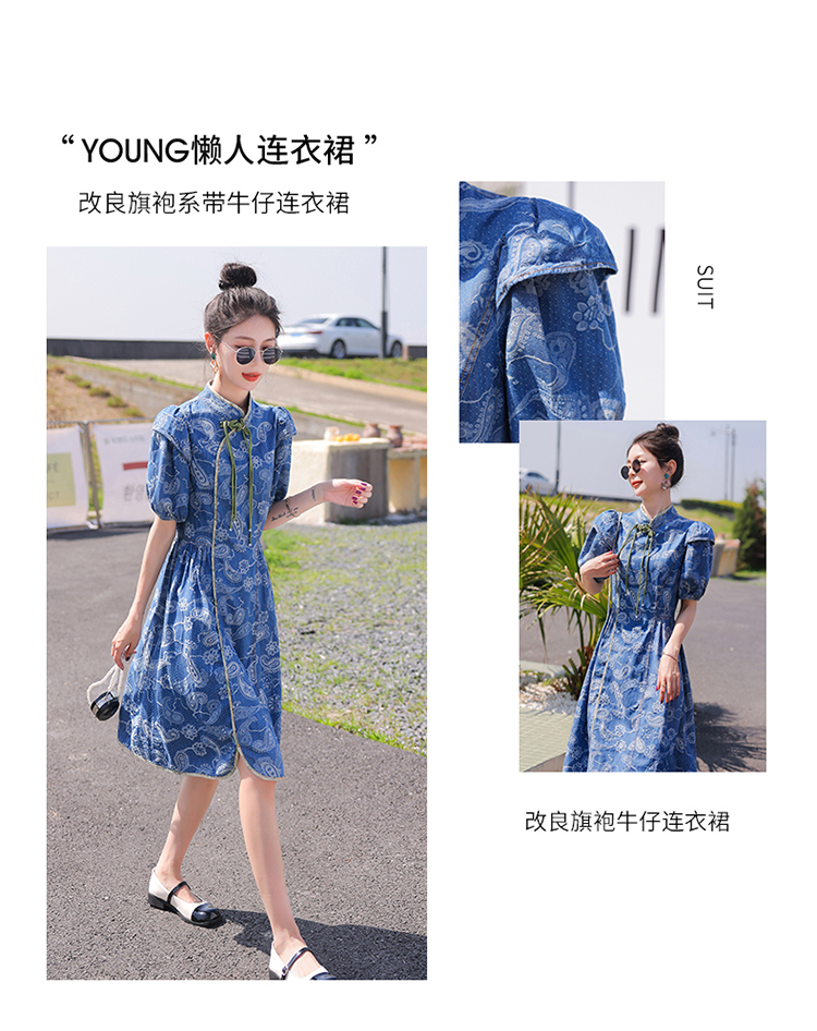 气质系带牛仔,旗袍连衣裙HR-HJY2352-1