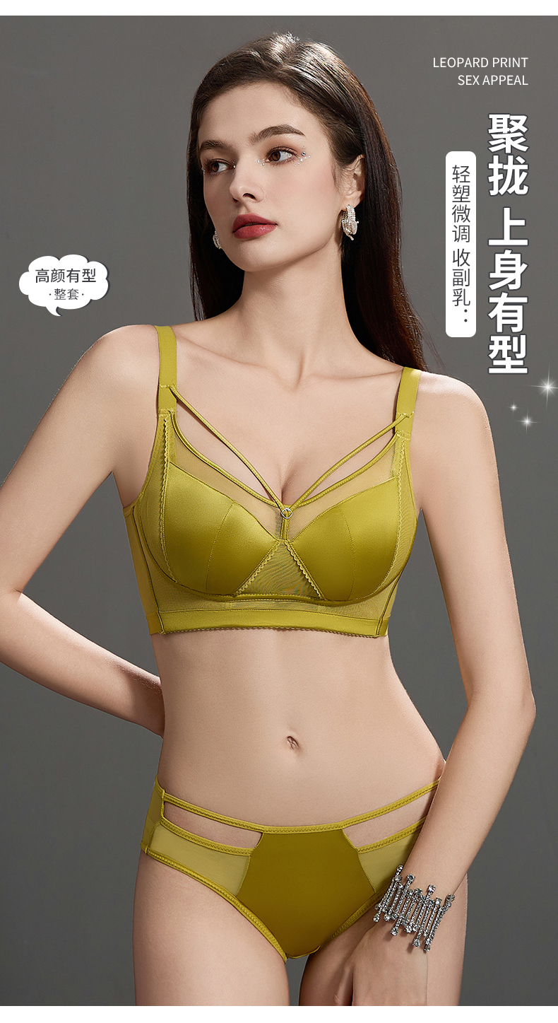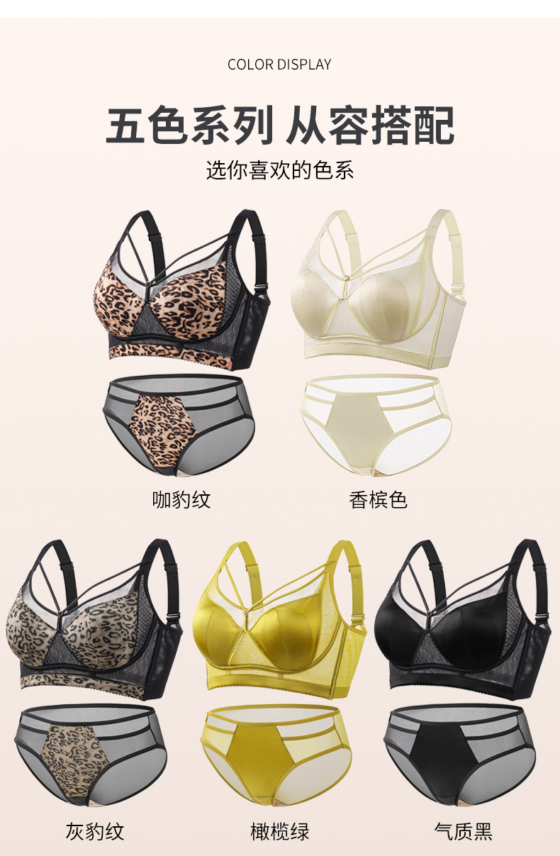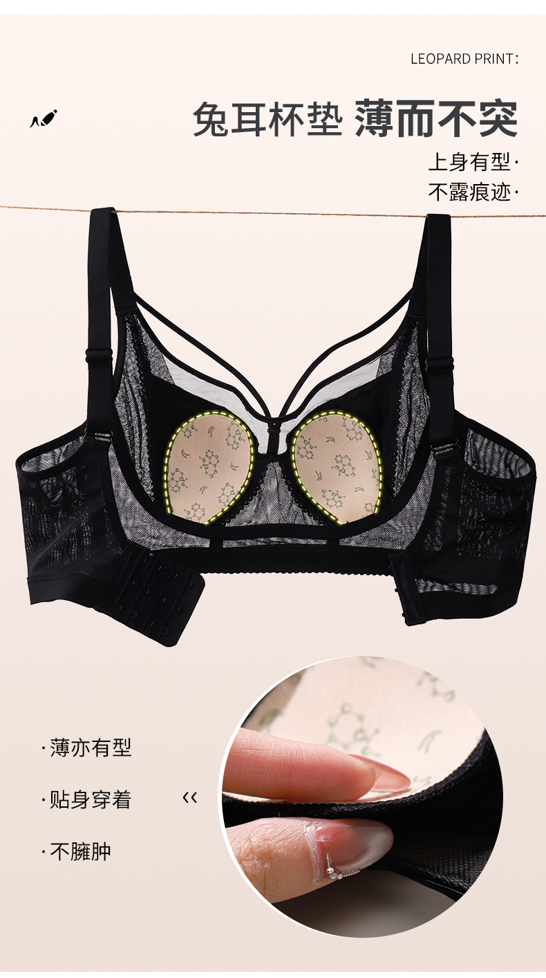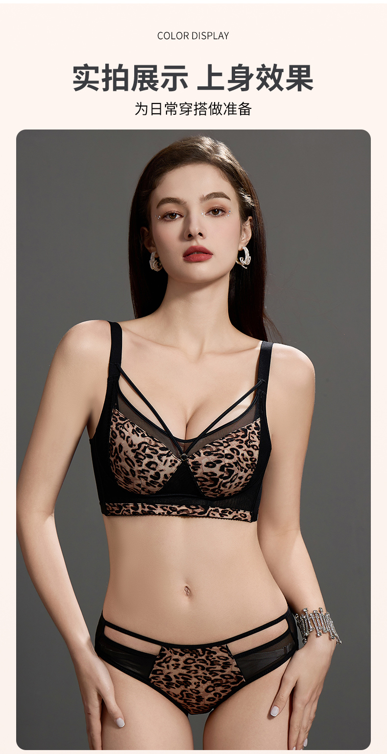 调整型性感豹纹美胸美背兔耳朵罩内衣女加框侧翼稳固胸型文胸套装 291