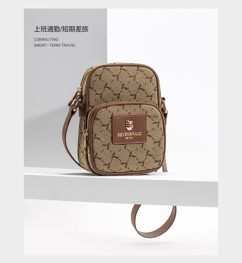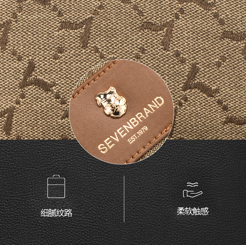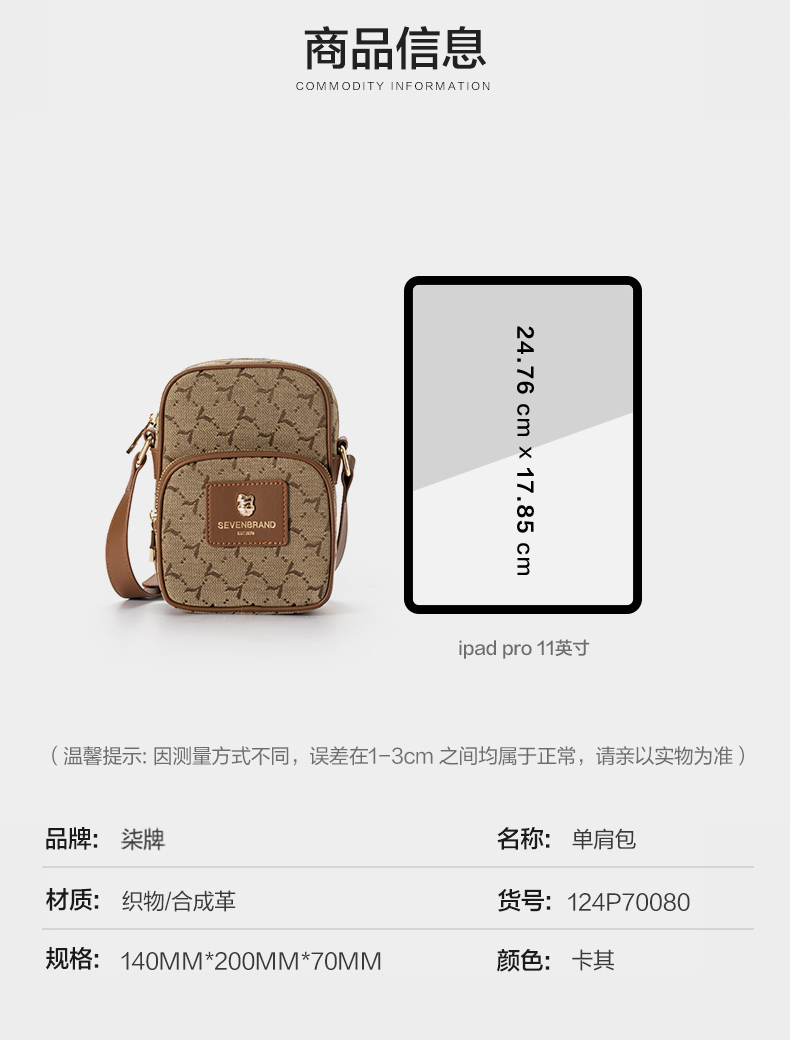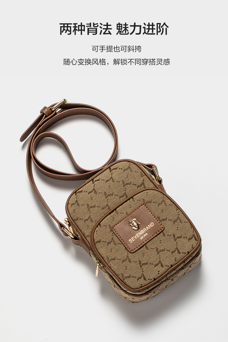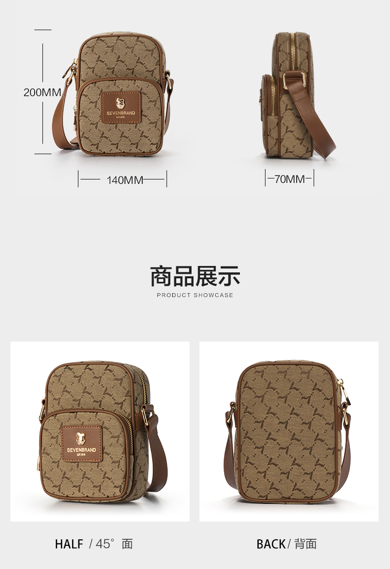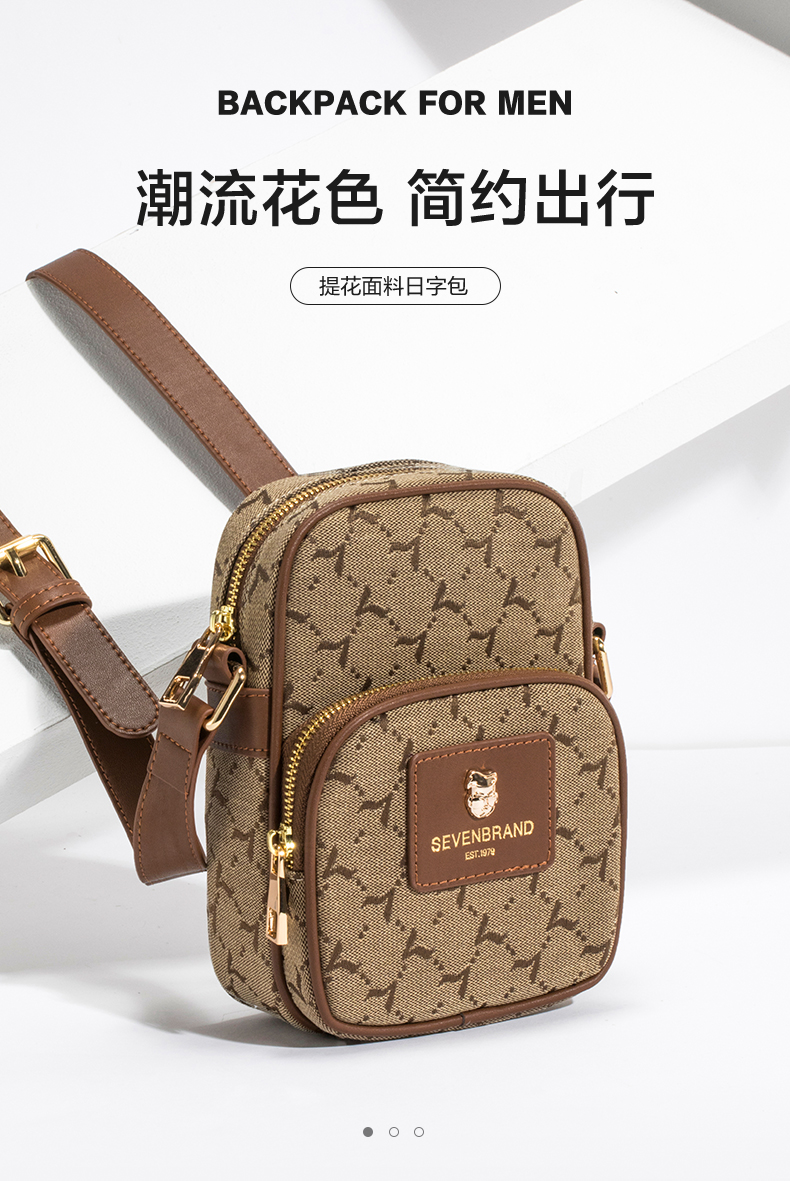 柒牌男士单肩包新款时尚复古提花织物日字包上班通勤斜挎男包 124P70080