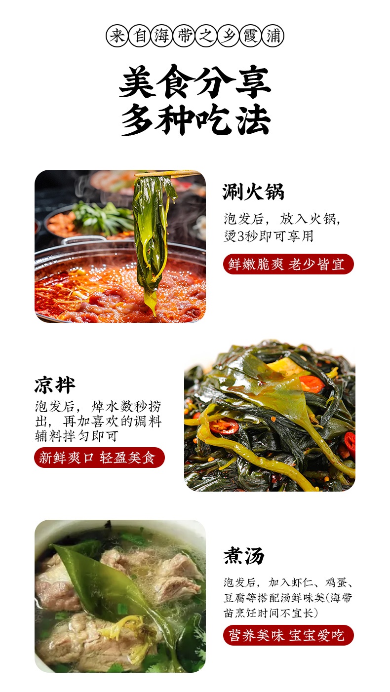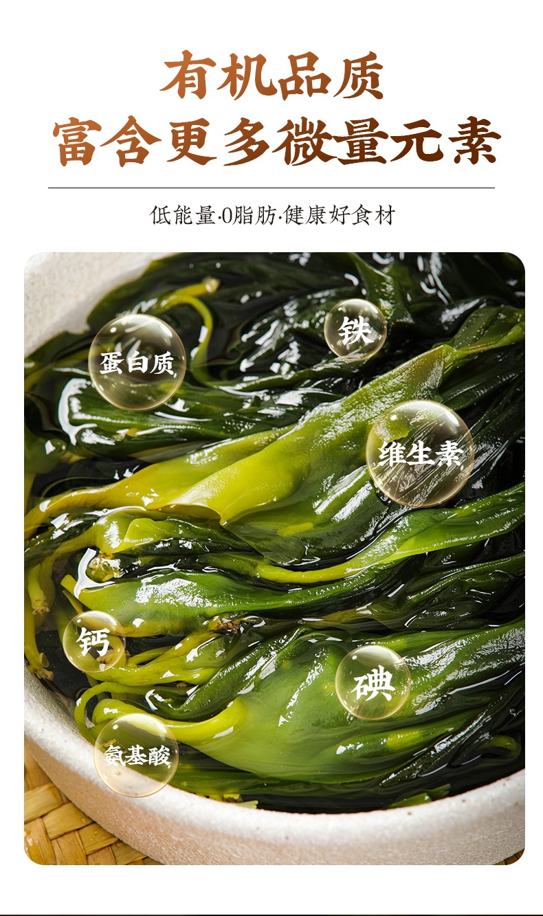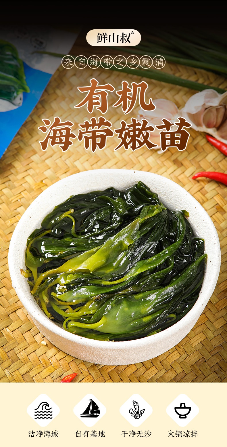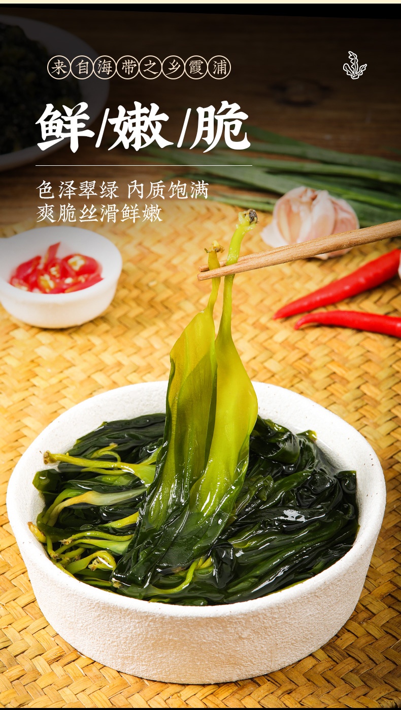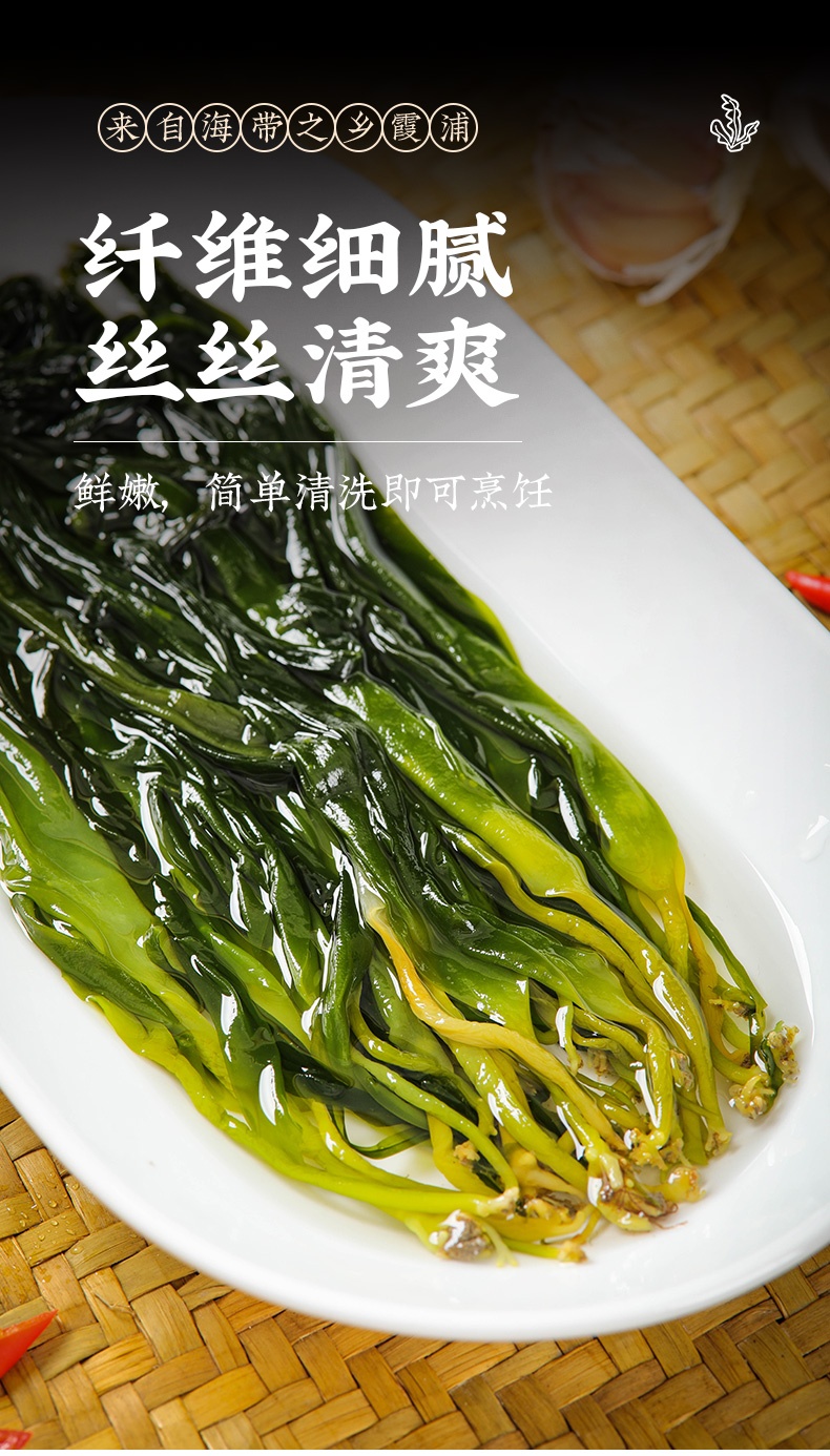 霞浦海带嫩苗#嫰滑鲜爽,盐渍锁鲜无添加,低脂肪好吃不胖,色泽翠绿无海腥味,凉拌火锅煲汤,1袋凉拌3-4人份