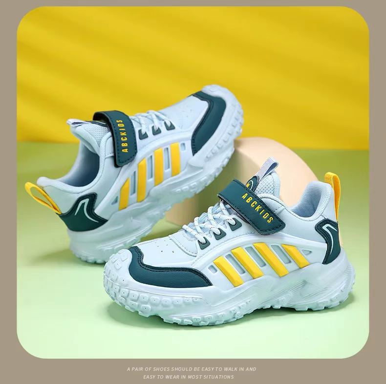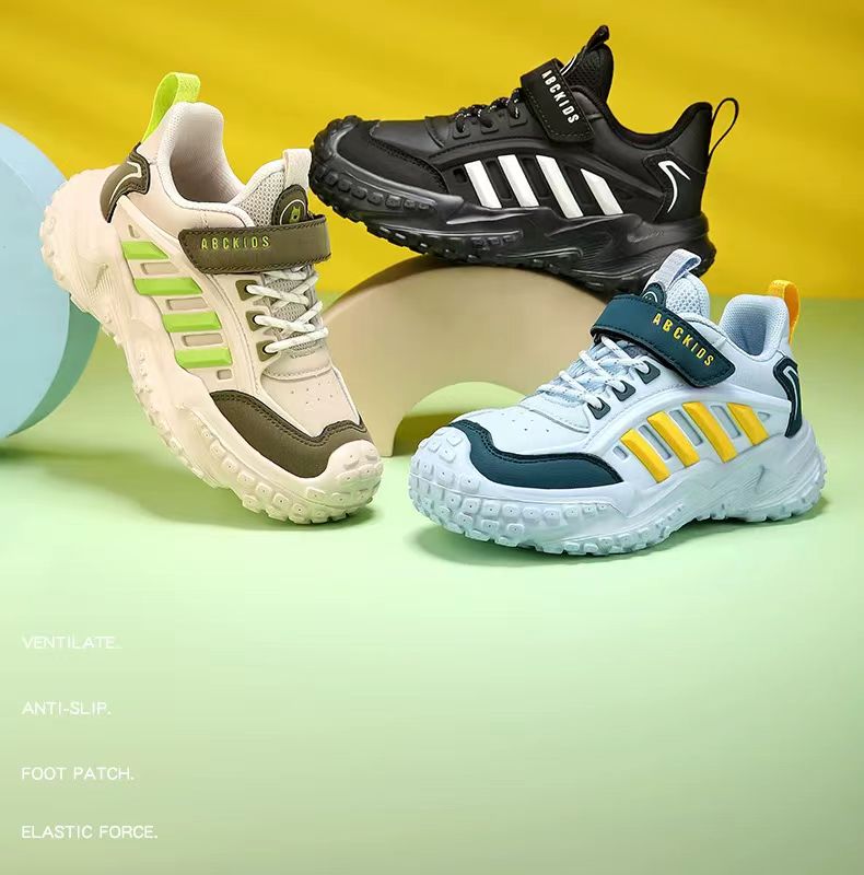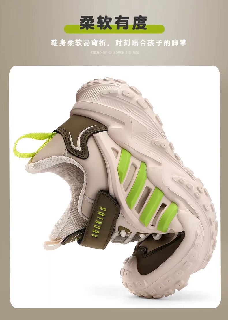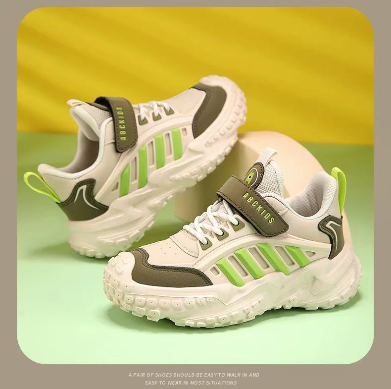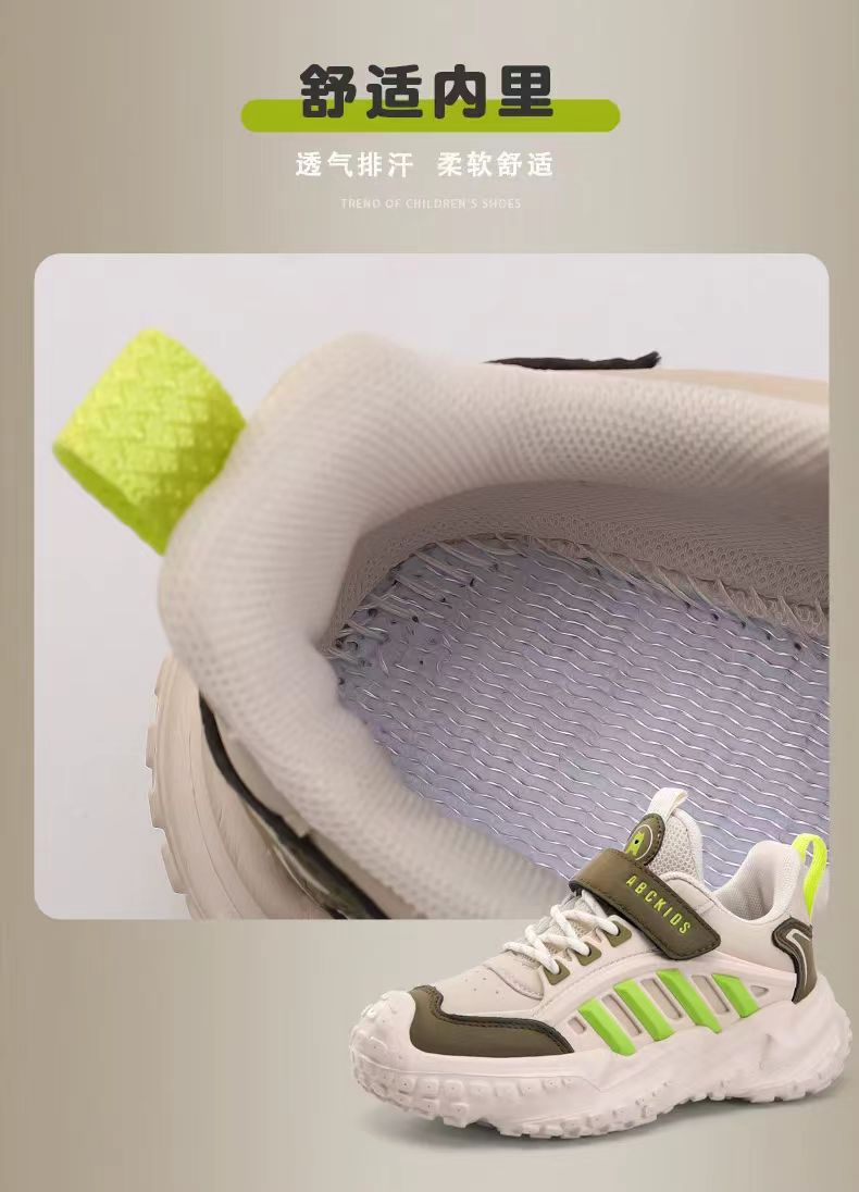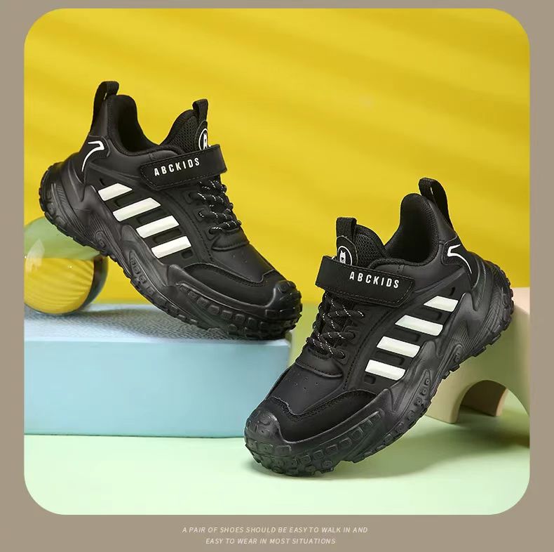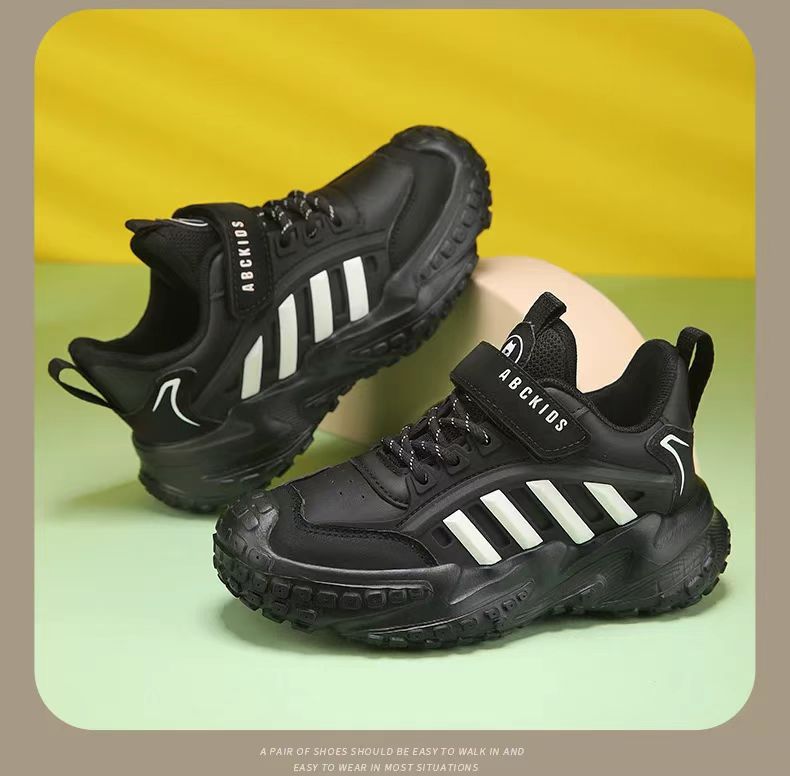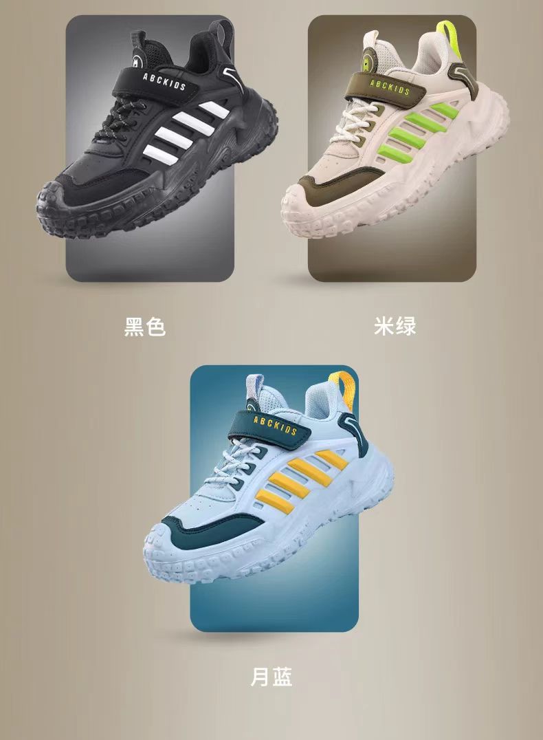 Abckids男童运动鞋新款中大童皮面防水儿童跑步鞋软底女童学生休闲鞋28-38