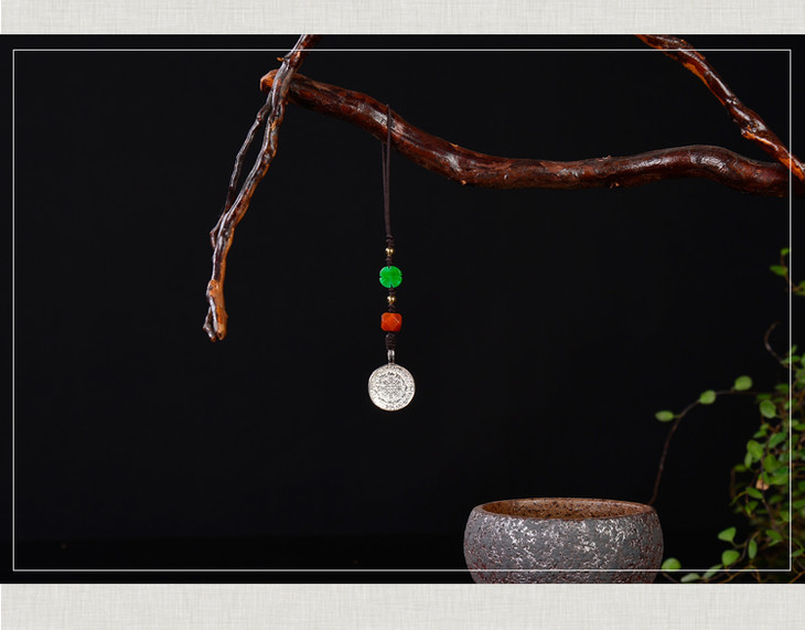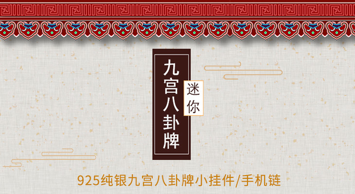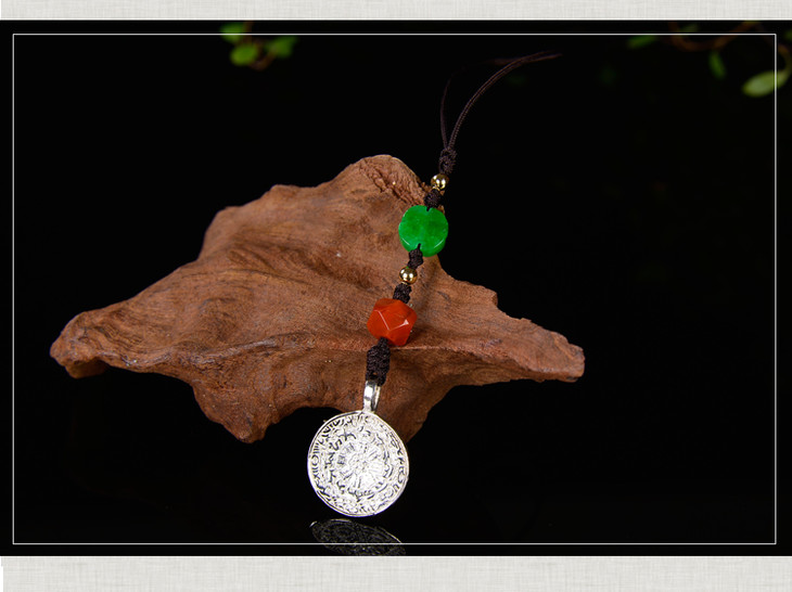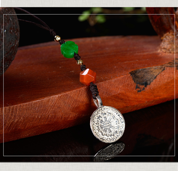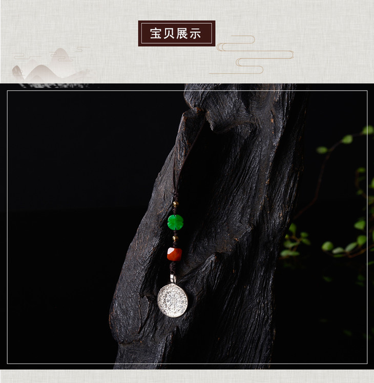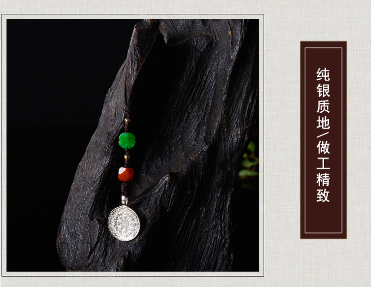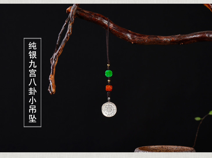 纯银+碧玉南红配饰九宫八卦牌小吊坠包挂手机挂绳男女款