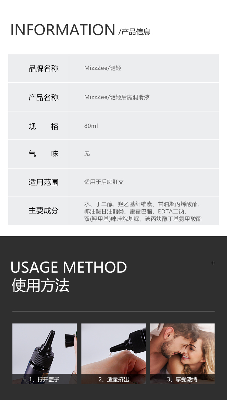 谜姬 后庭润滑液房事免洗可舔持久后庭肛门松弛拉丝润滑剂成人夫妻情趣用品