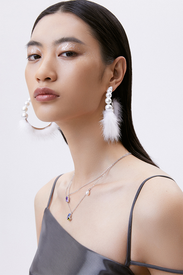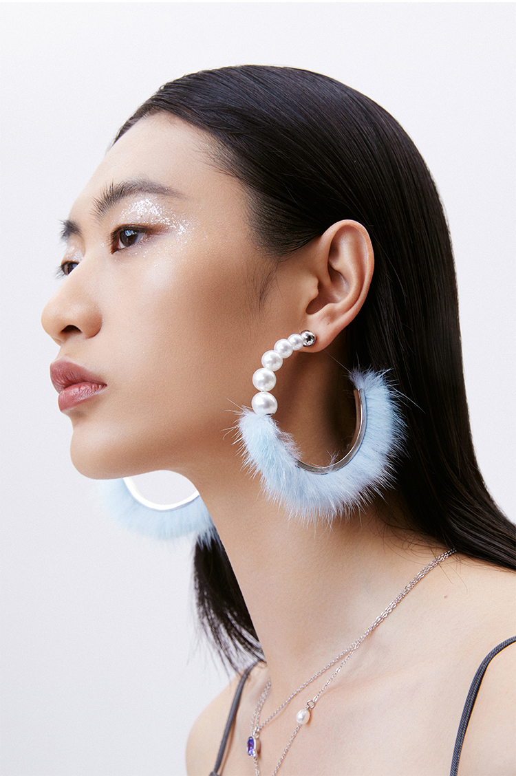 lost in echo 原创设计师品牌 珍珠渐变大环绒毛耳环