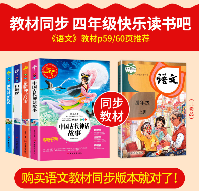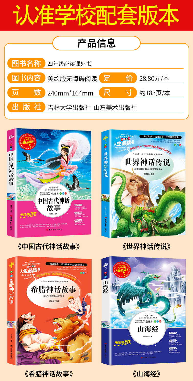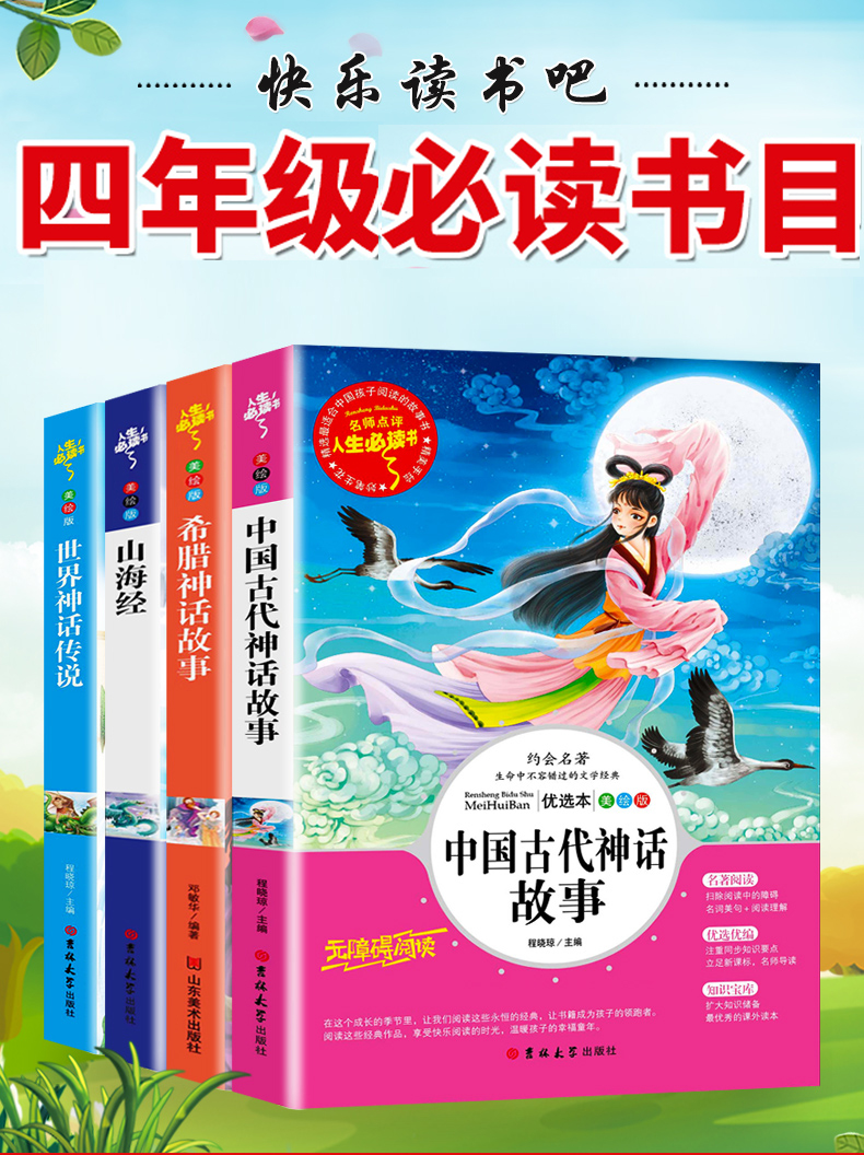 4册 中国古代神话故事希腊世界神话传说四年级上册课外书必读与山海经正版原著阅读书籍老师推荐快乐读书吧人民教育读物吉林出版社