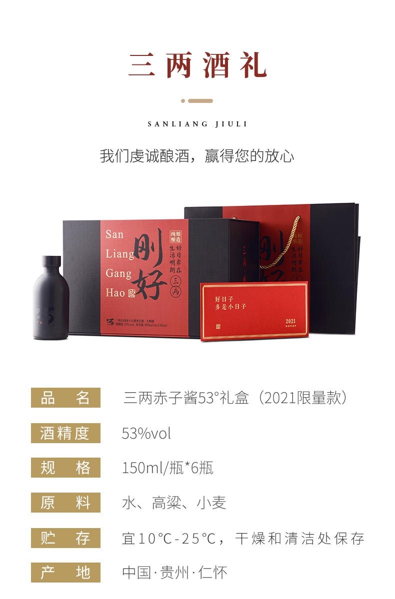 【豆子兑换】三两53°vol新年礼盒(酱香型白酒*6瓶)