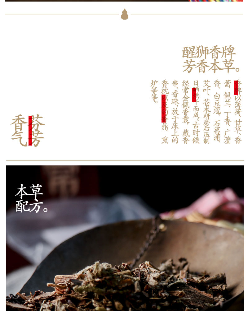 手作醒狮香牌 | 十种植物配方。随身携带小挂件香囊可放苍术艾叶石菖蒲白豆蔻广藿香丁香佩兰甘草香薷薄荷