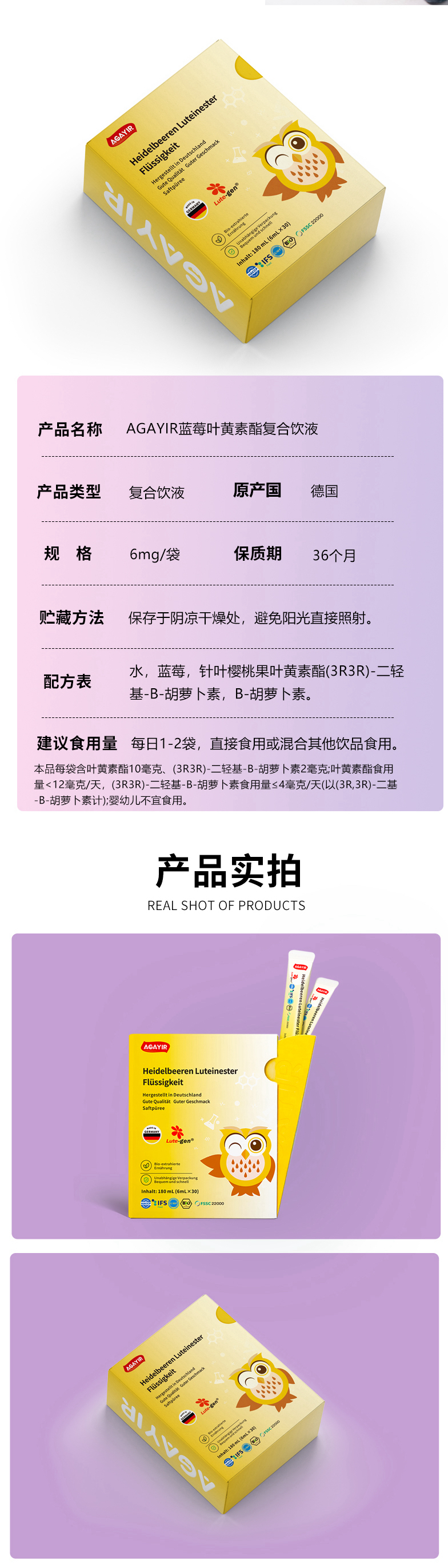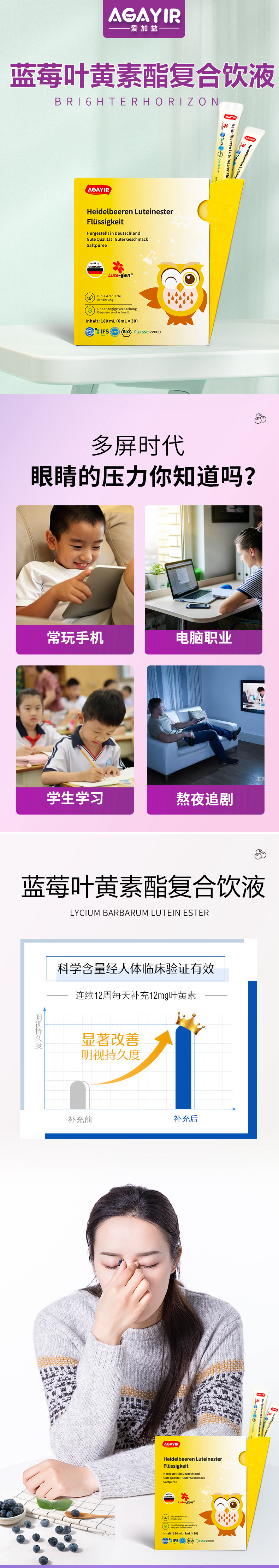 ⁶ 清仓【德国游离型蓝莓叶黄素】每条10mg叶黄素 +2mg玉米黄质 果汁口每天1-2条 6ml*30袋/盒 SS06-QTT-KCL