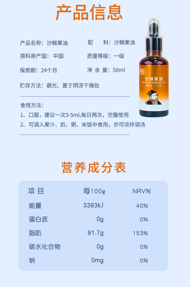 3、沙棘果油50ml (生产日期:25年10月 保质期:24个月)