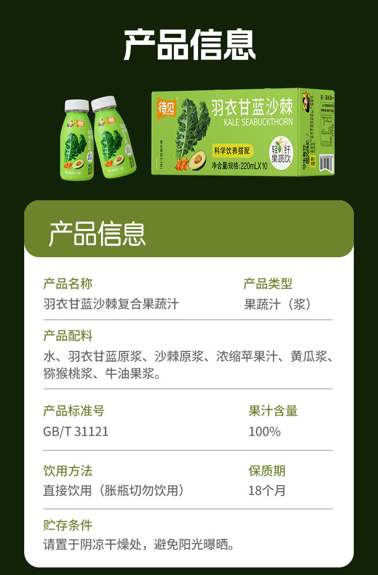 10、羽衣甘蓝沙棘汁220ml*10瓶