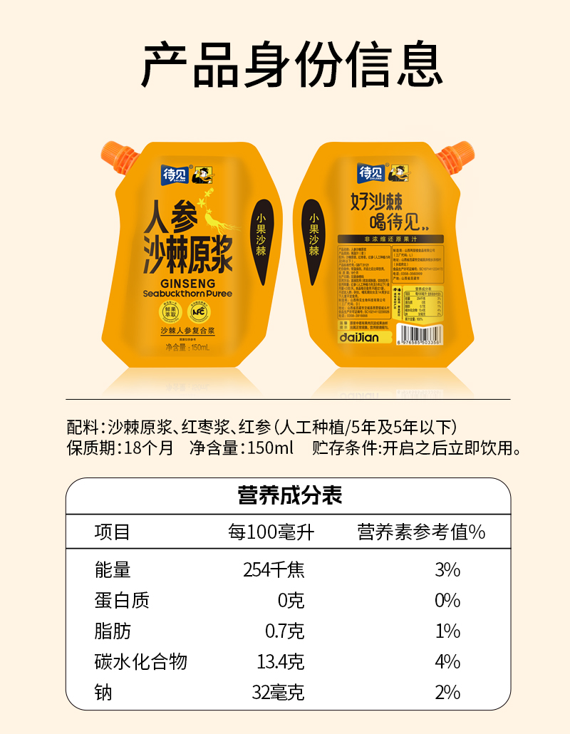 4、人参沙棘原浆(生产日期:25年9月 保质期:18个月)