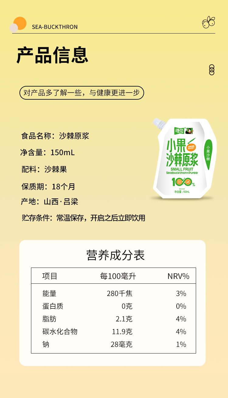 1、沙棘原浆528ml (生产日期:25年10月 保质期:18个月)