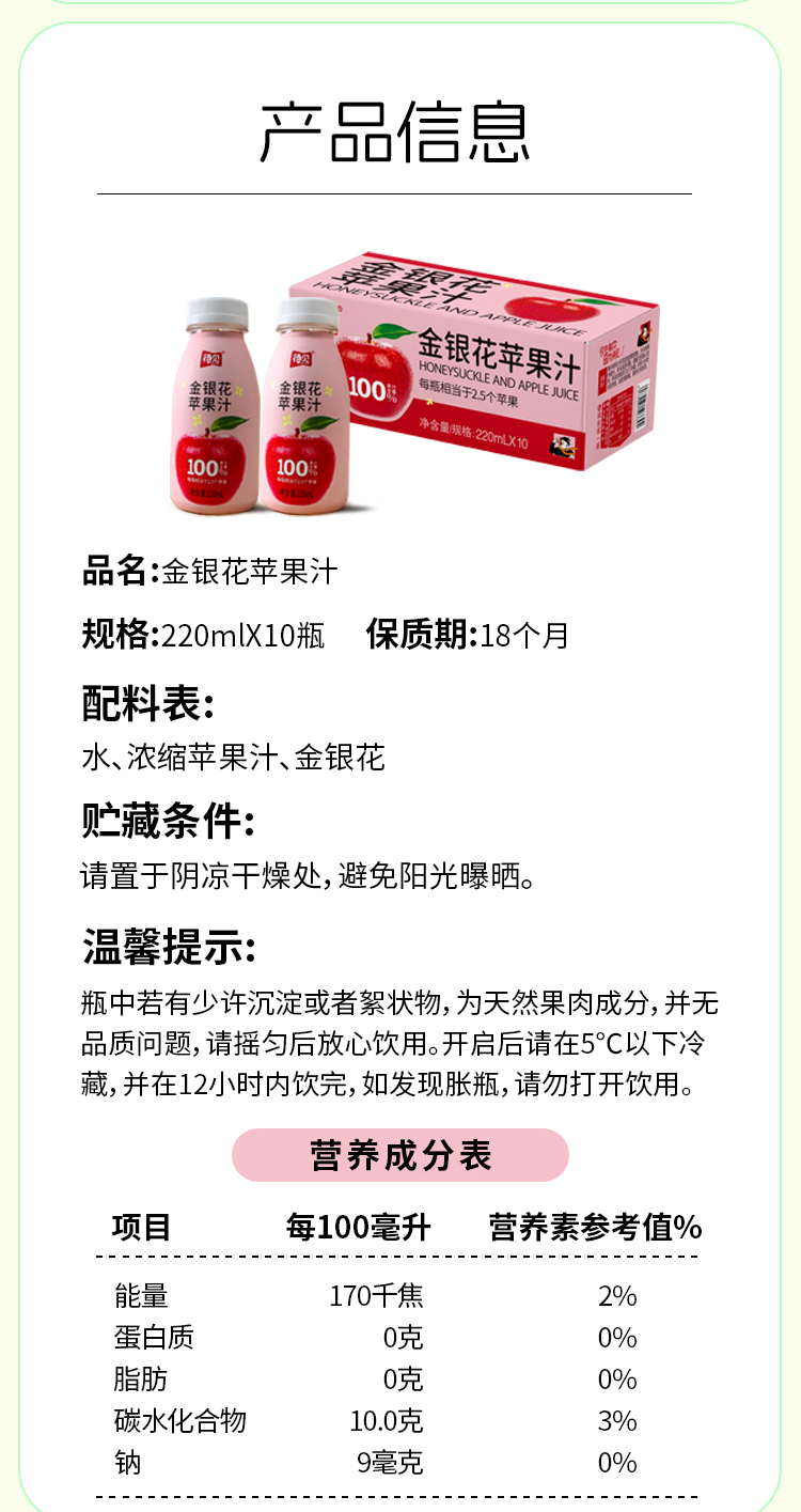 7、金银花苹果汁220ml*10瓶