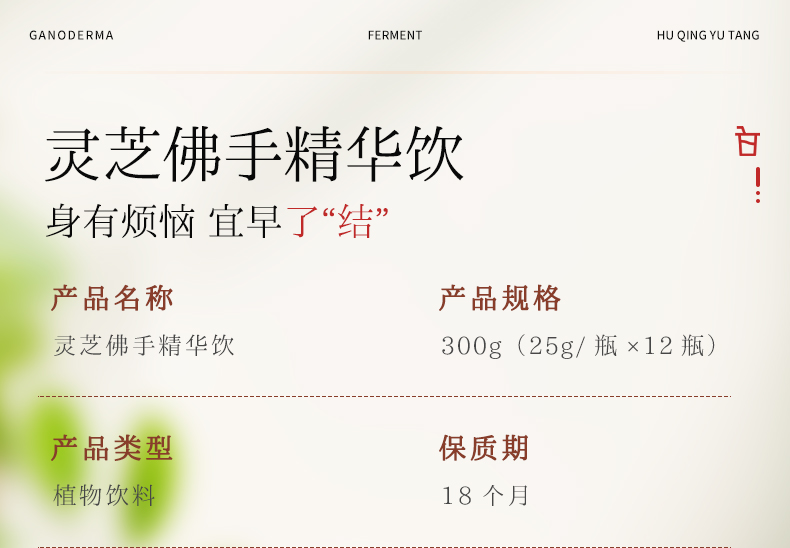 ⁴买6盒加赠线香【胡庆余堂灵芝佛手精华饮】精选道地草本食材+益生菌 小分子发酵 25g/支*12支/盒 YC04-CR-HQYT【TOP】
