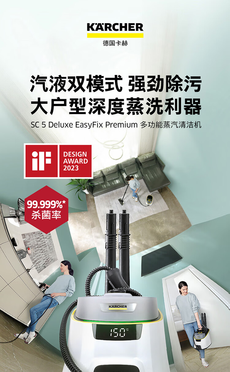 KARCHER德国卡赫 蒸汽拖把 家用高温高压蒸汽清洁机 厨房油烟机空调清洗机 拖地洗地机杀菌除螨 SC 5D