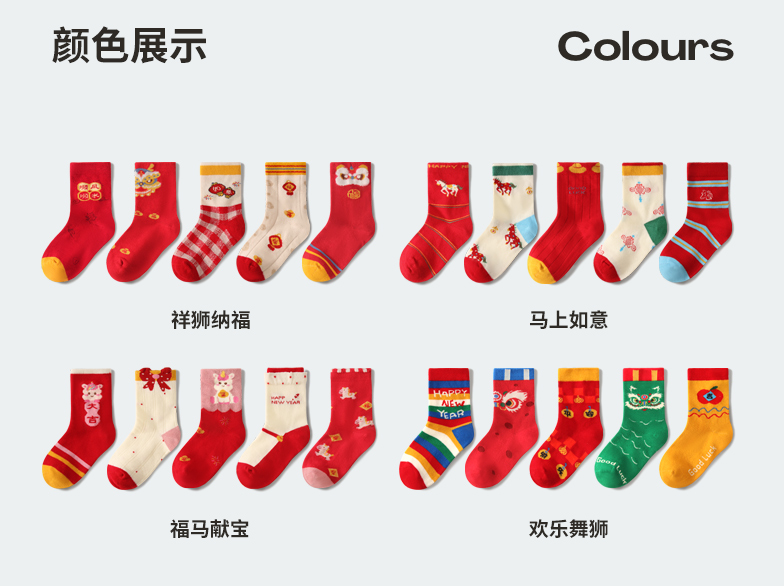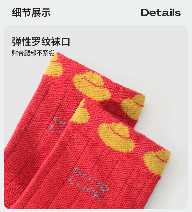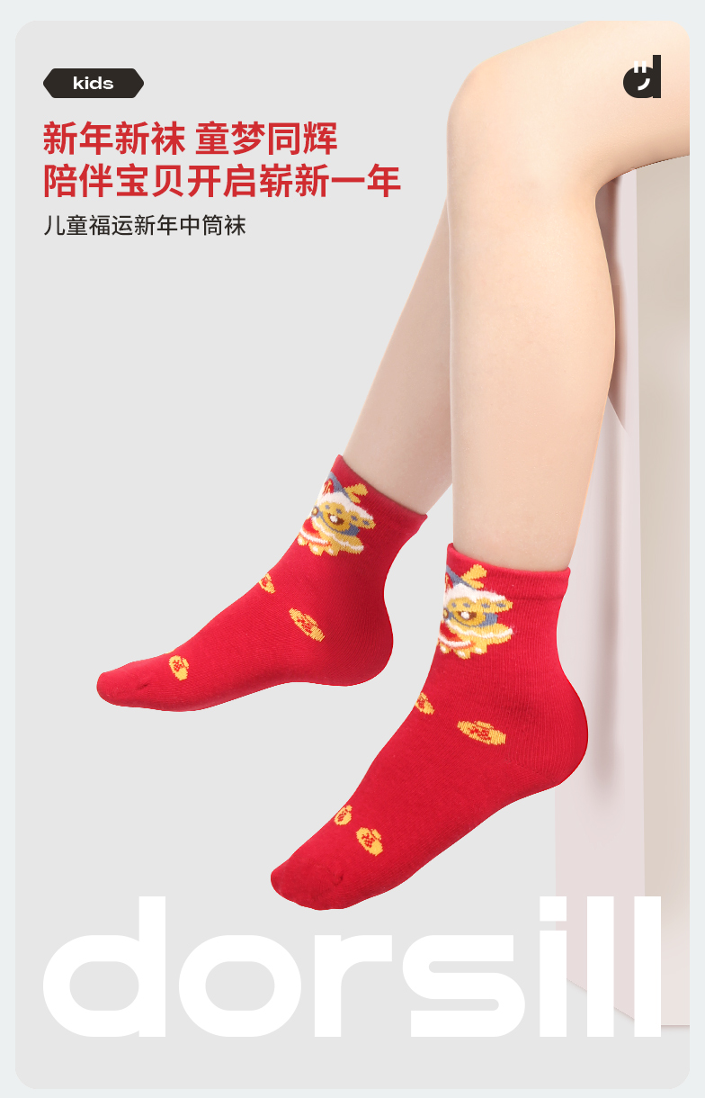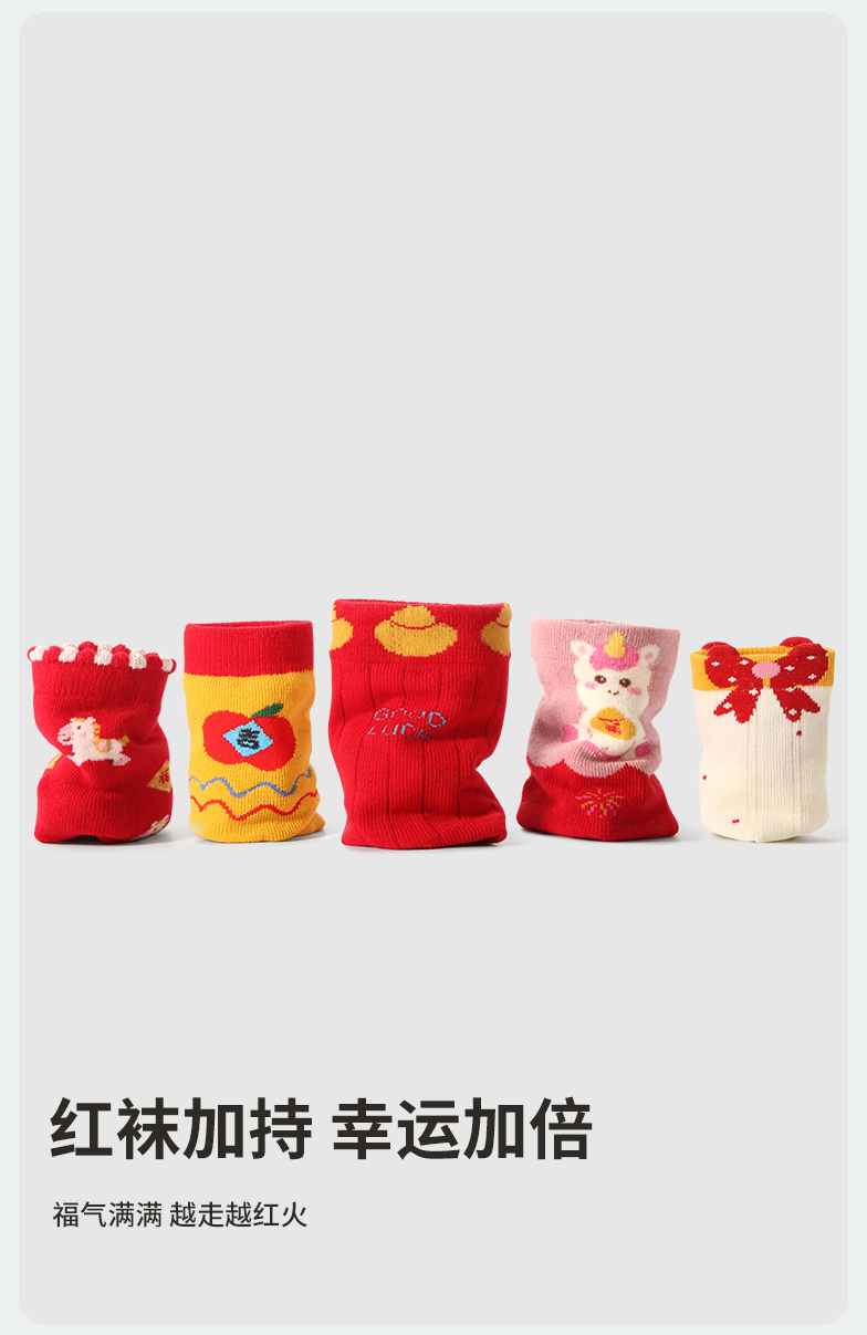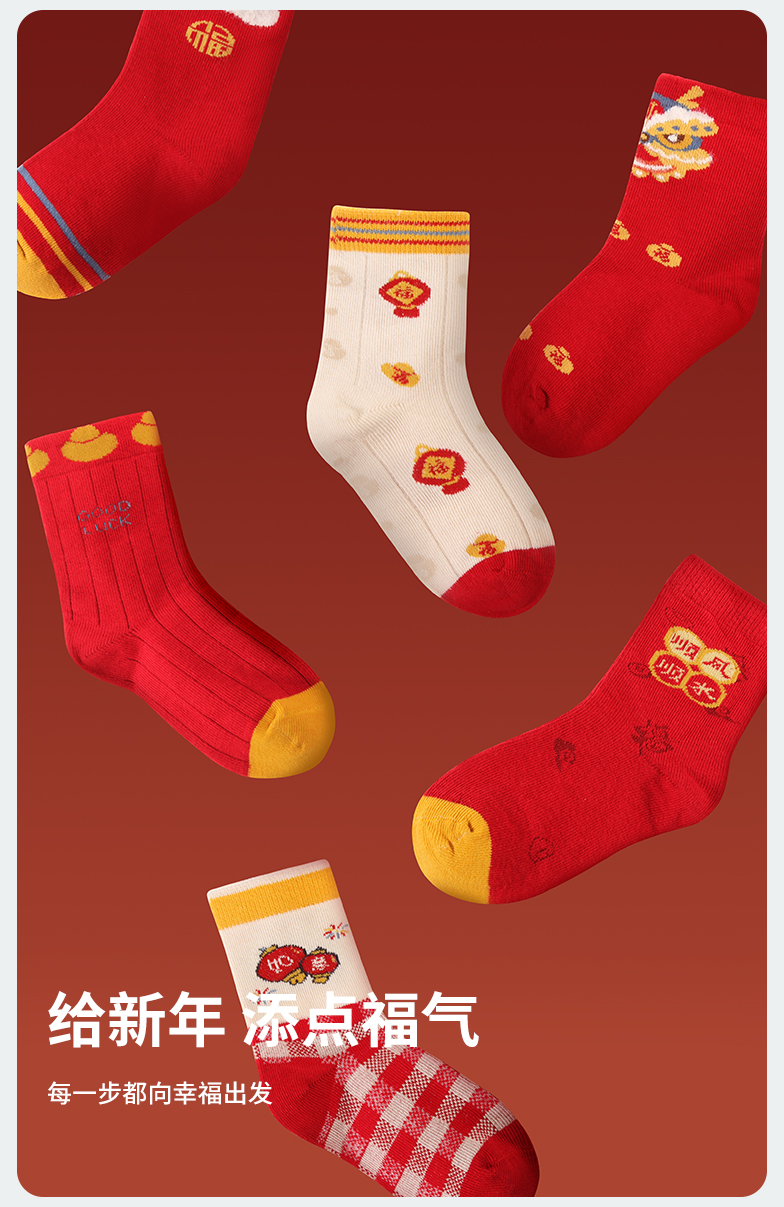 朵熙儿 儿童中筒袜新年红色袜子男童女童秋冬保暖袜5双装