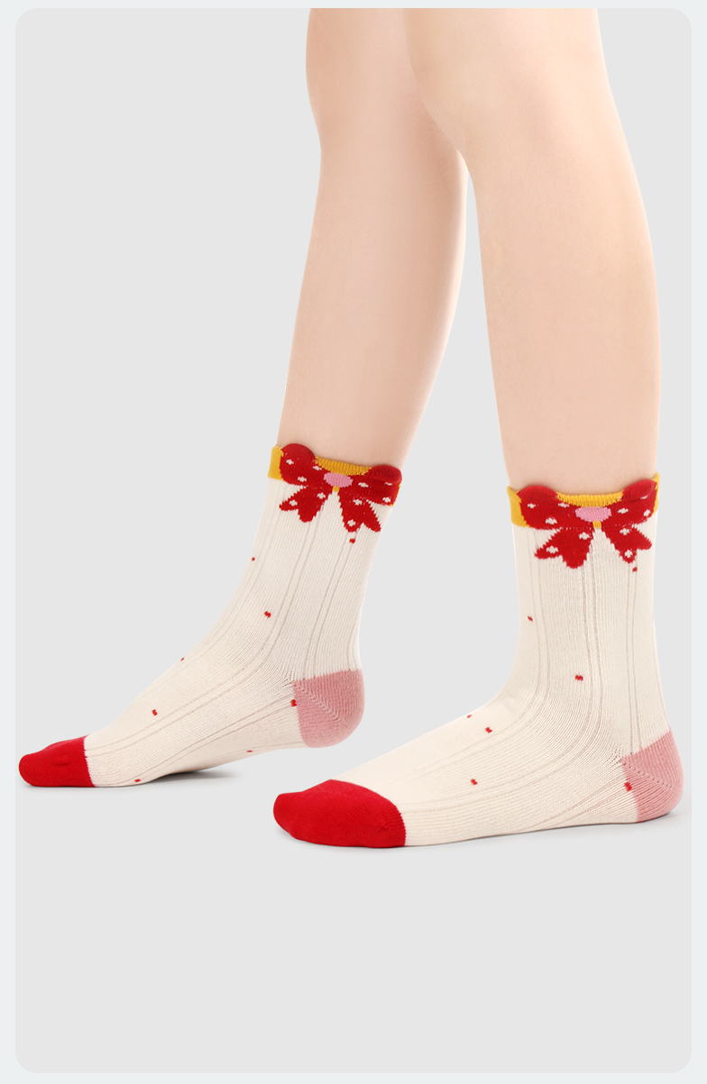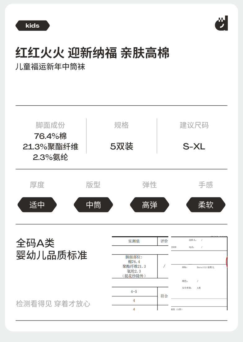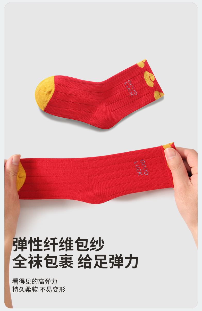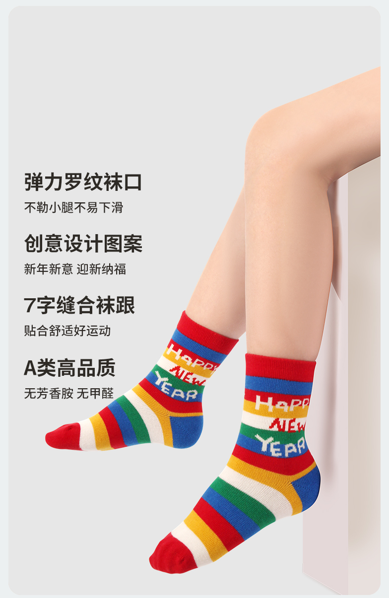 朵熙儿 儿童中筒袜新年红色袜子男童女童秋冬保暖袜5双装