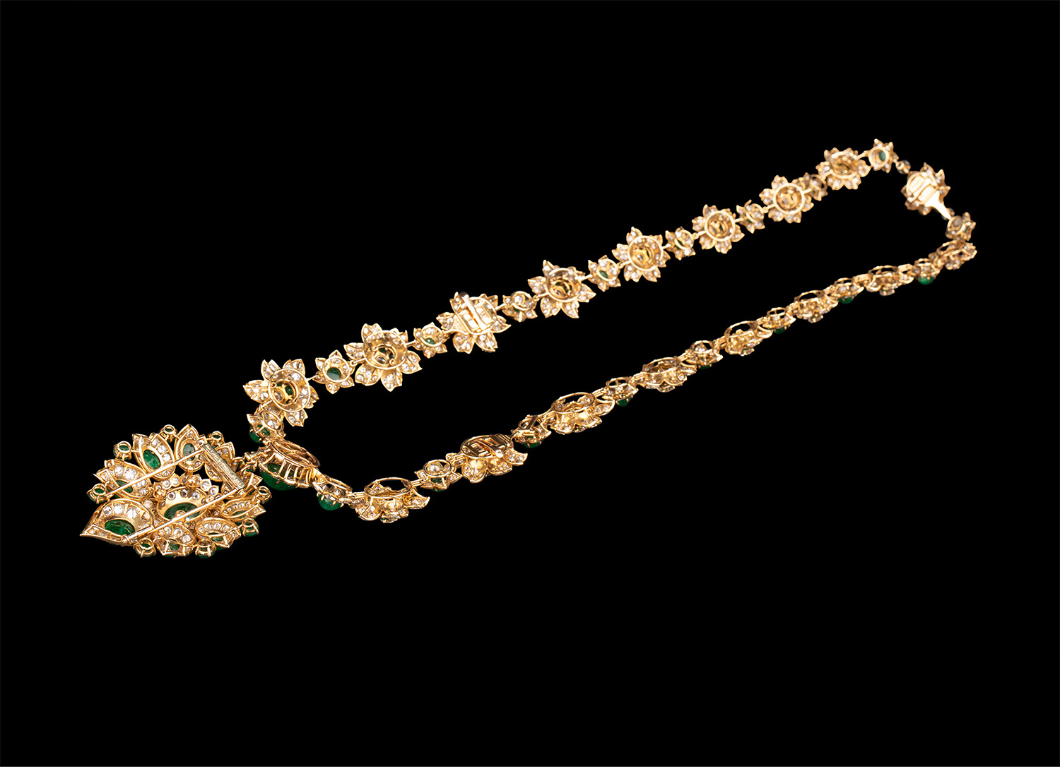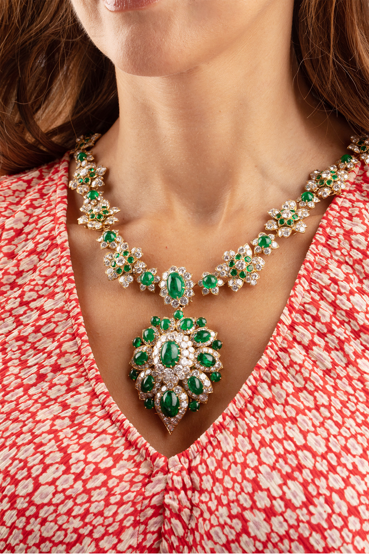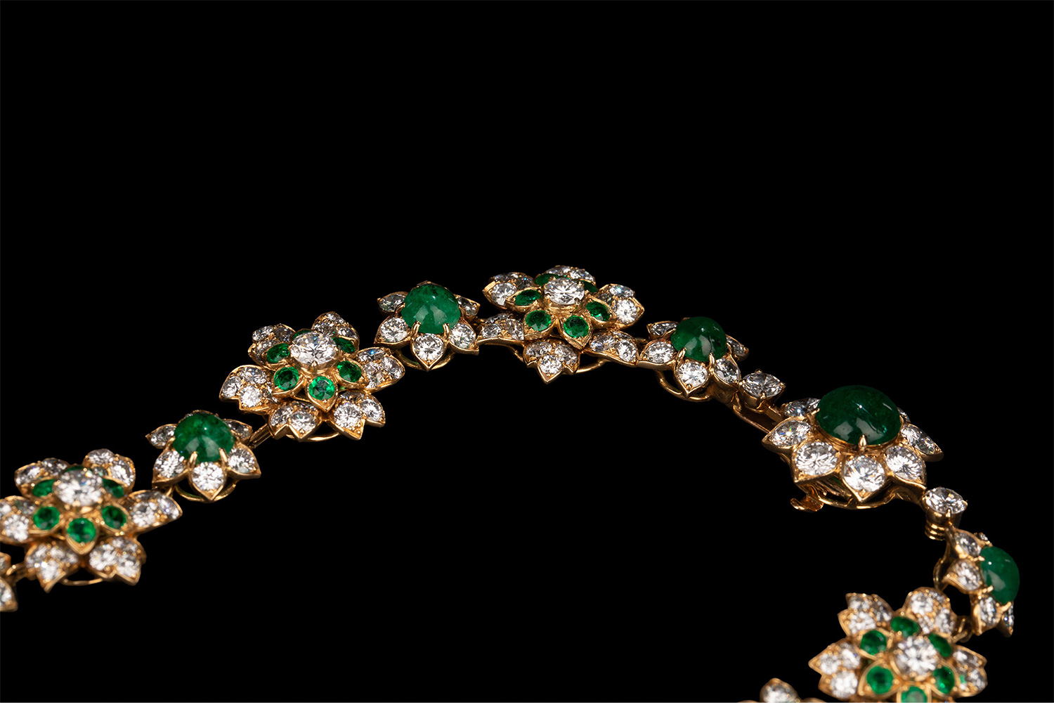 1970年代法国出品18K黄金镶嵌钻石及祖母绿可拆卸式项链/胸针