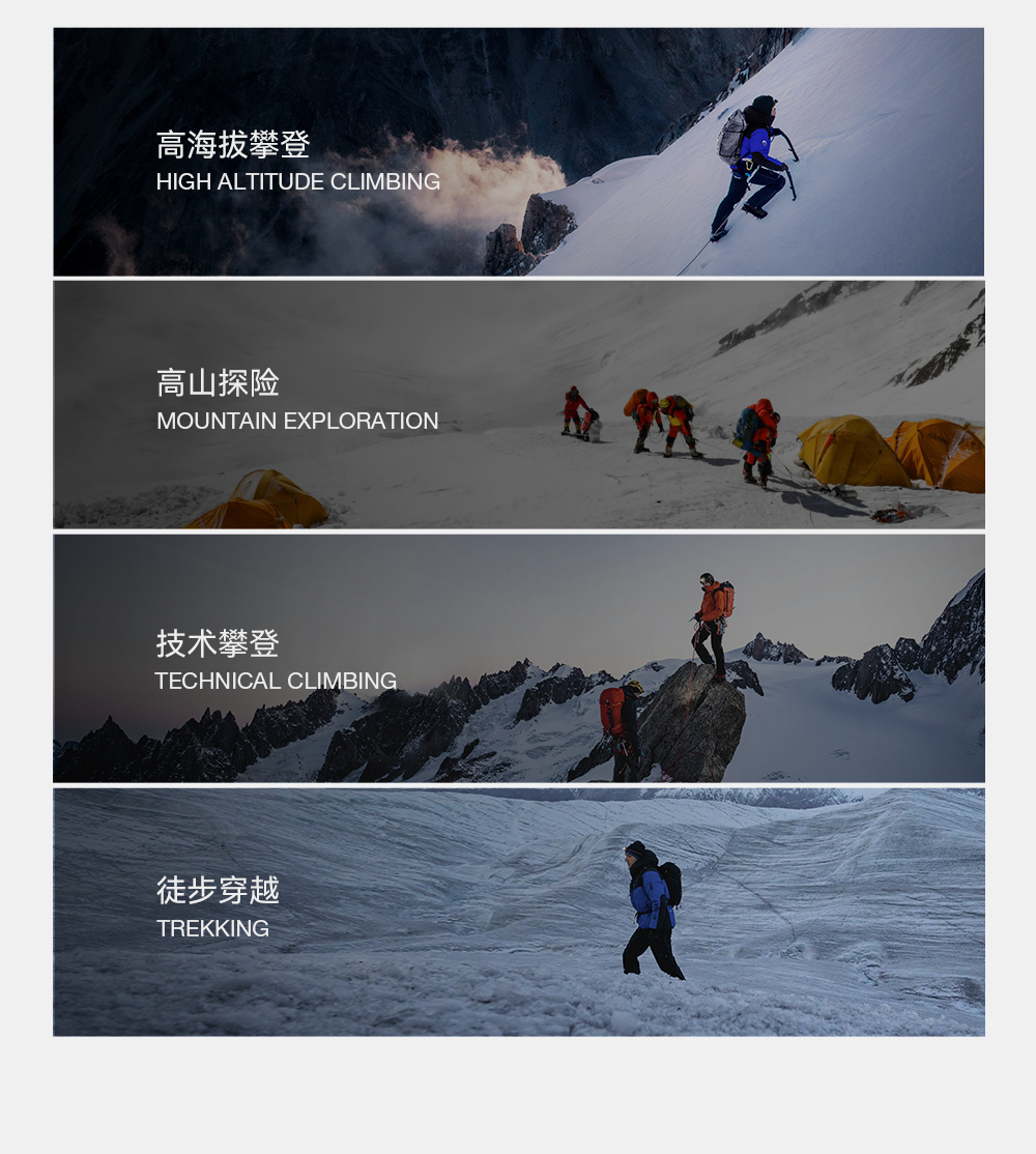 致力于推动登山及探险运动发展,为运动员及专业爱好者提供高性能的户外装备。