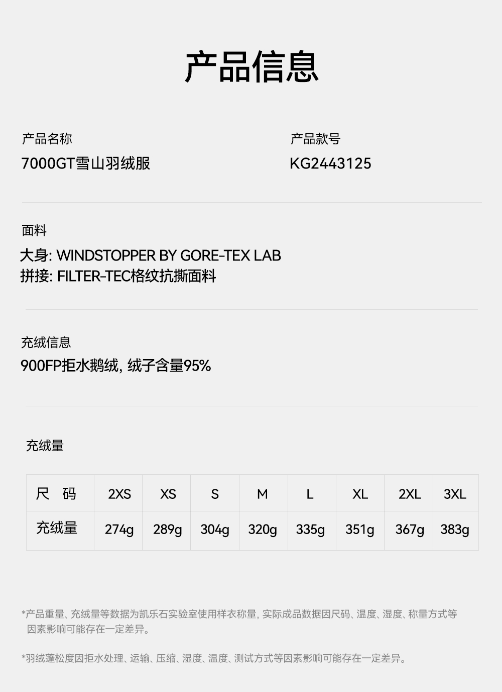 KAILAS凯乐石 户外运动 男款7000GT羽绒服KG2443115