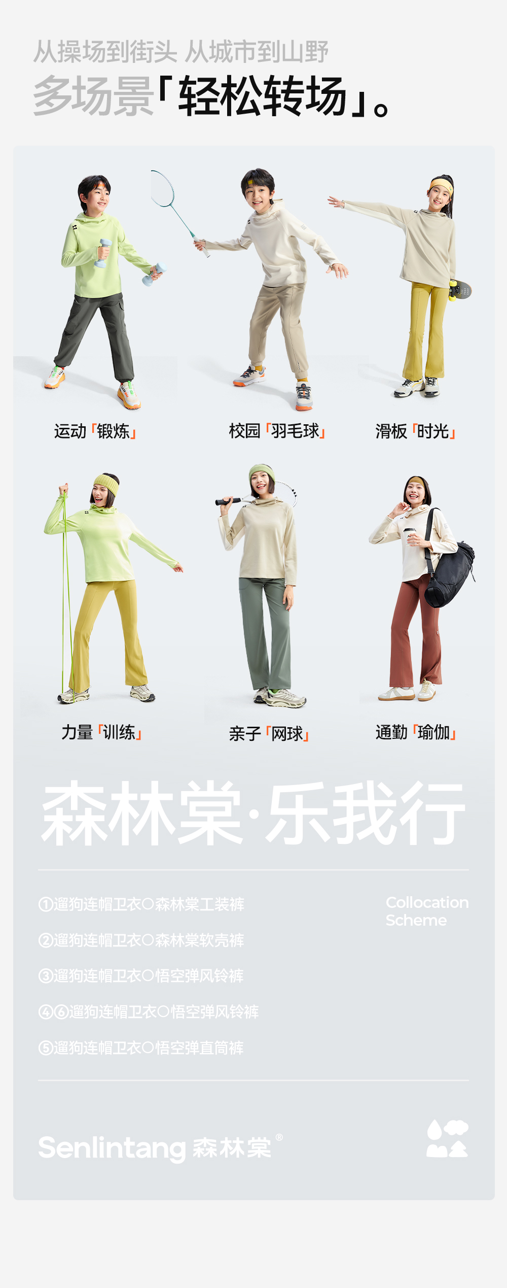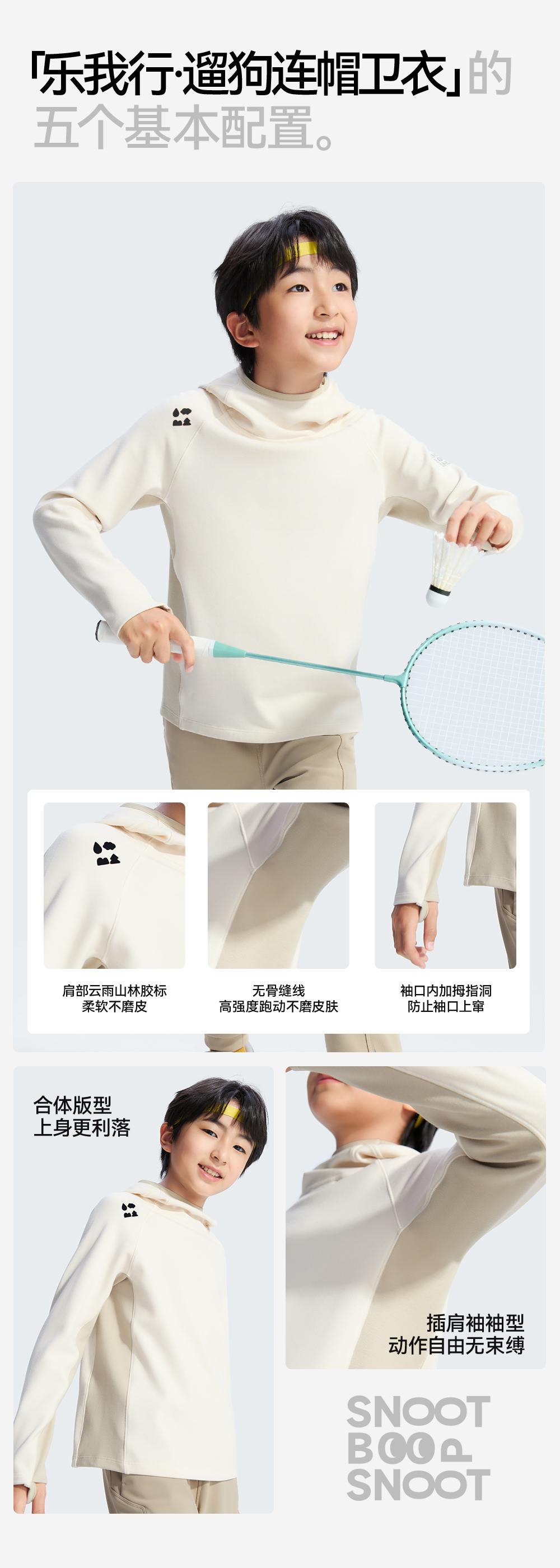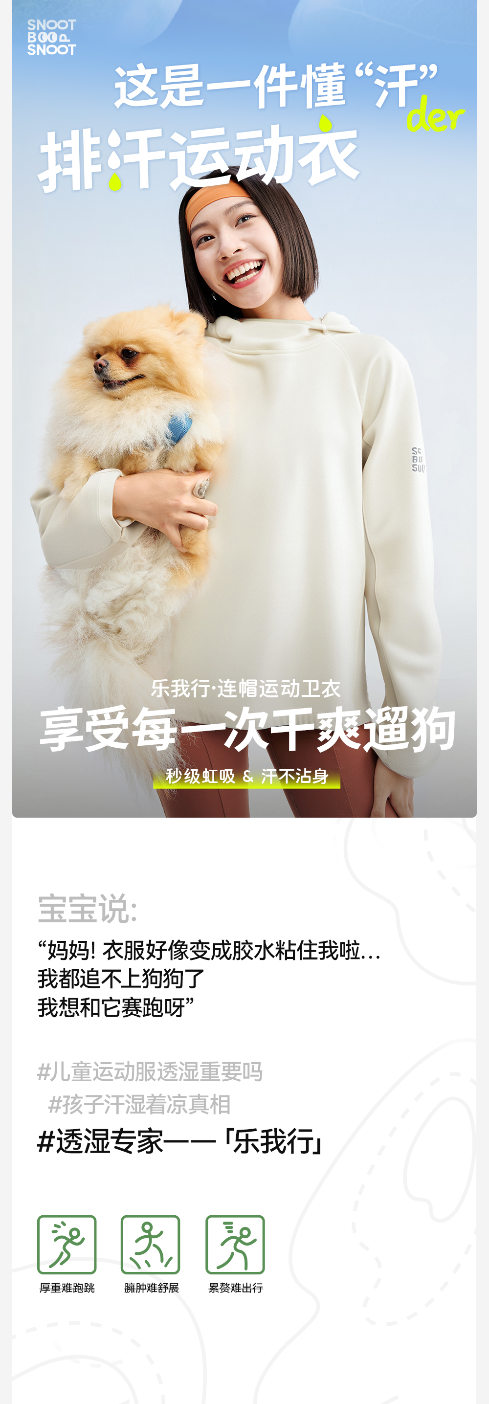 【乐我行遛狗连帽卫衣 】森林棠25秋季 儿童吸湿排汗插肩袖连帽运动休闲卫衣60353222