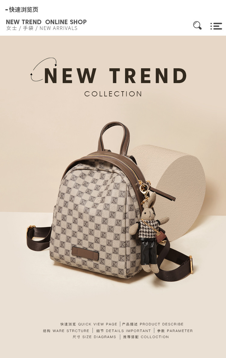 Safiya/索菲娅2023新款时尚旅游印花双肩包小熊感女式手拿包包SF900357Y
