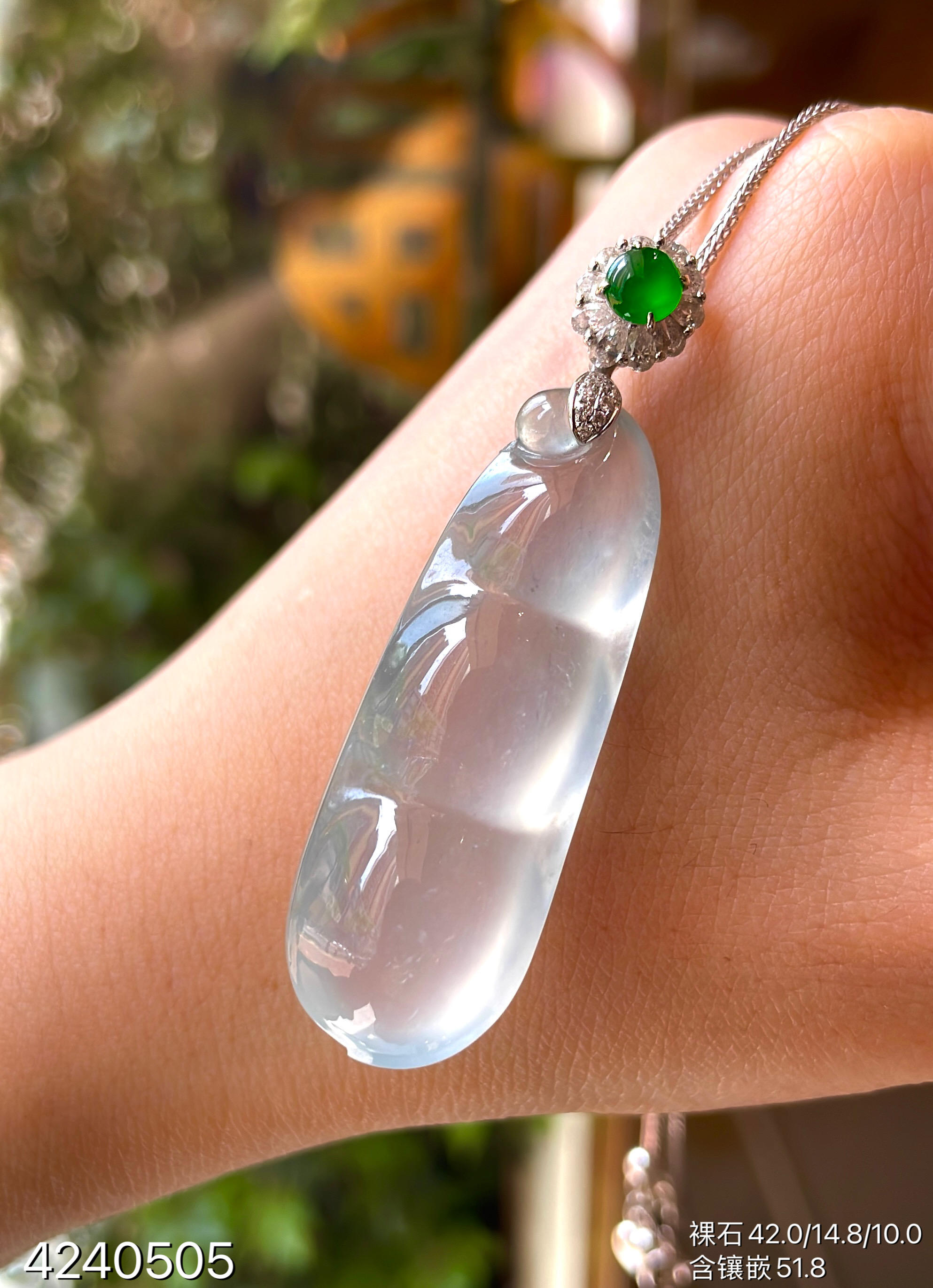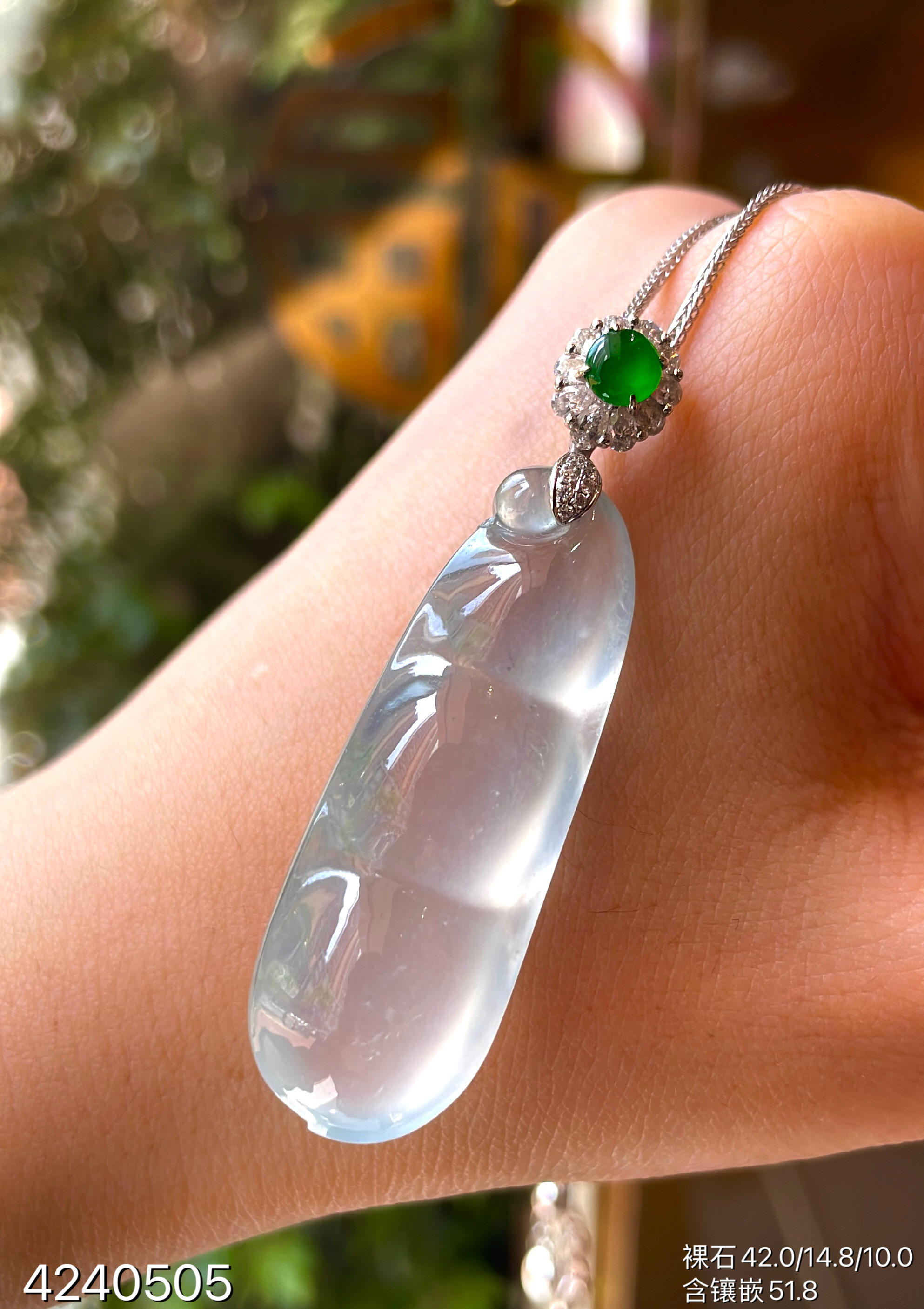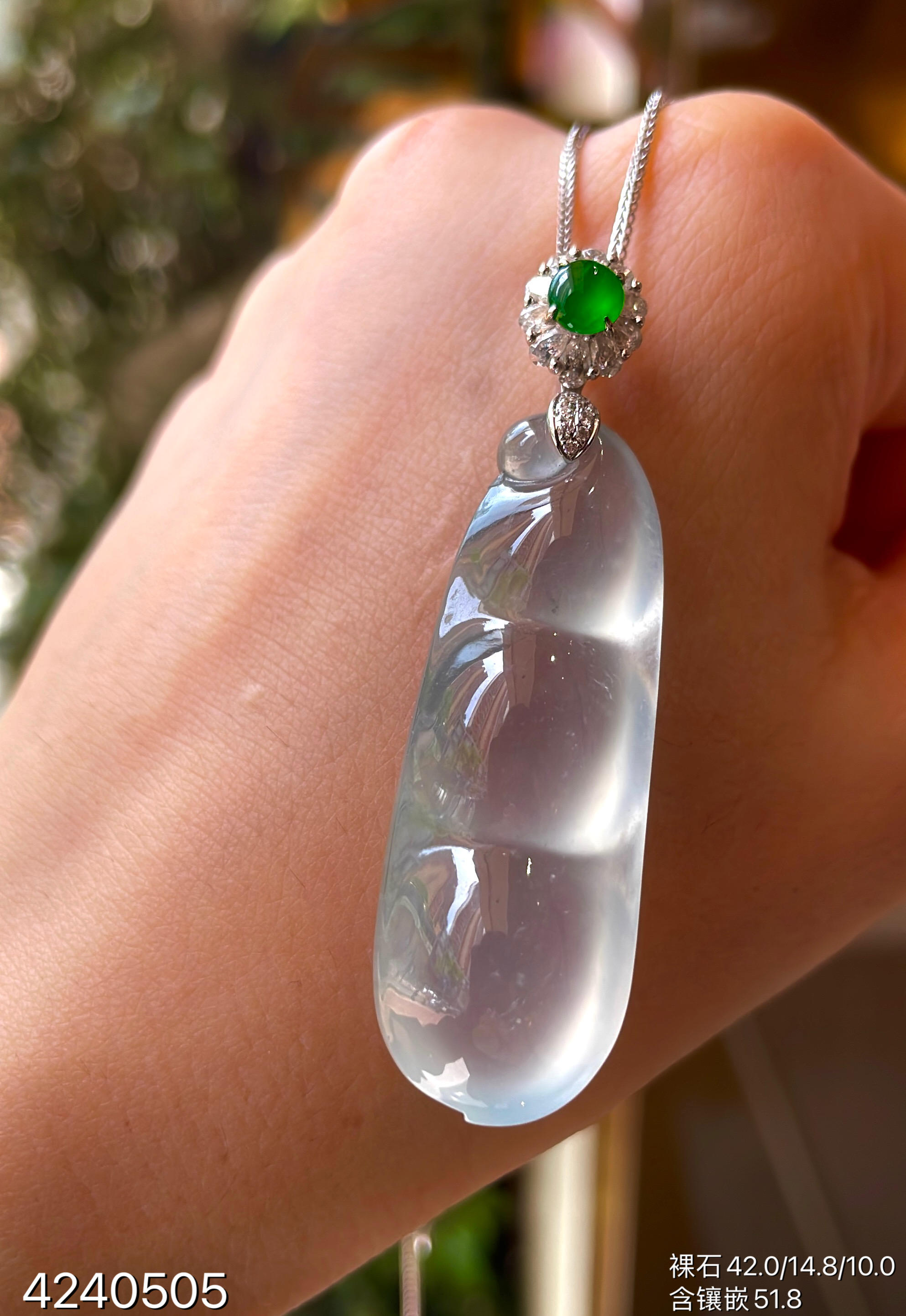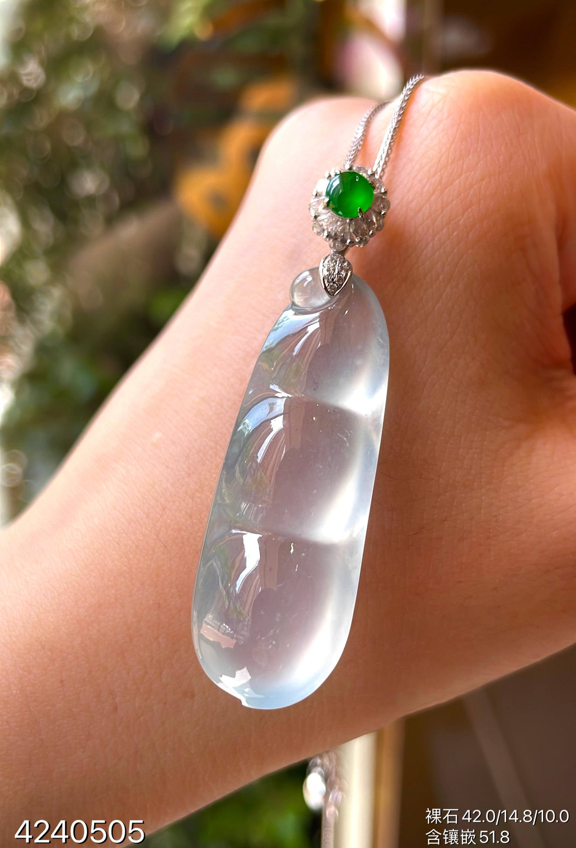 玻璃种福豆吊坠【4240505】具体价格微信咨询