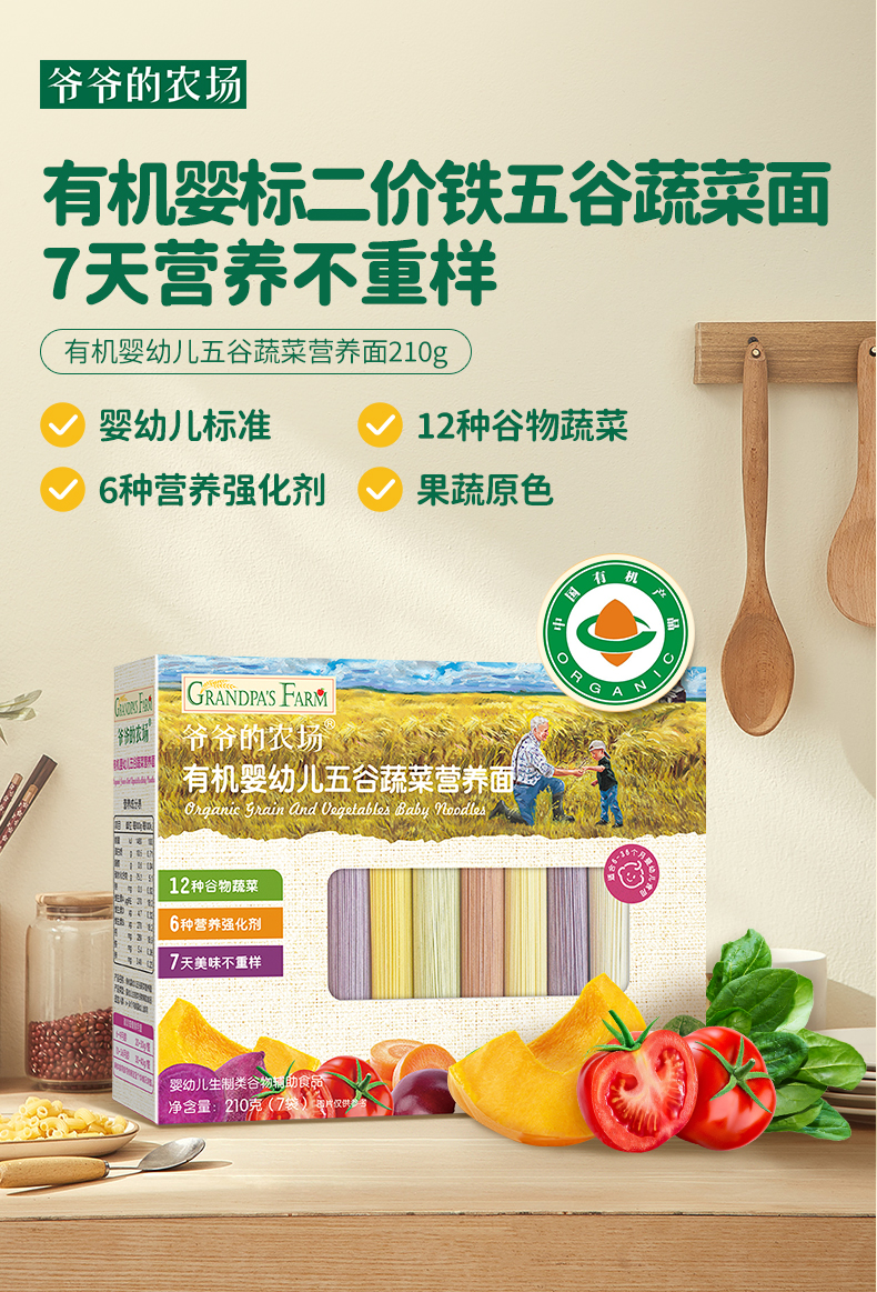 【有机 婴标】爷爷的农场 有机酱油152ml+五谷蔬菜营养面210g