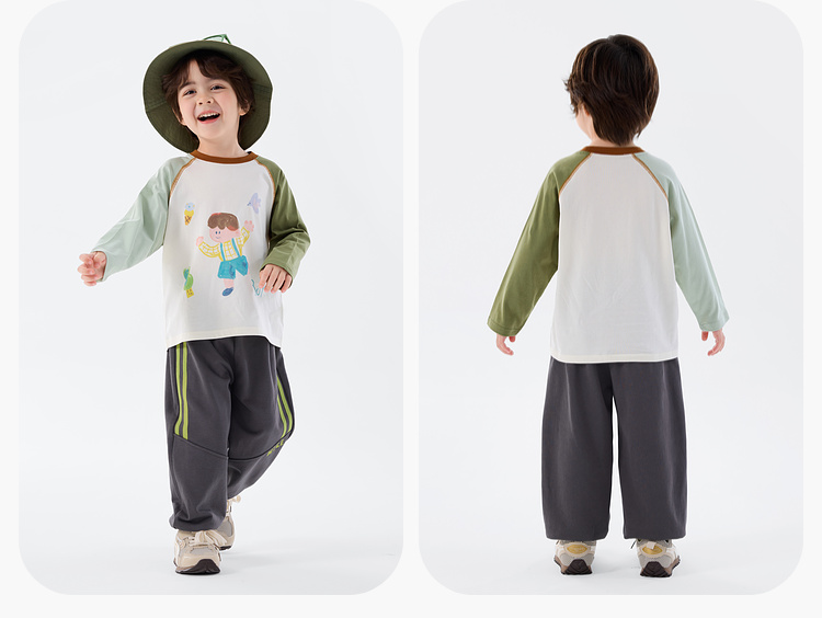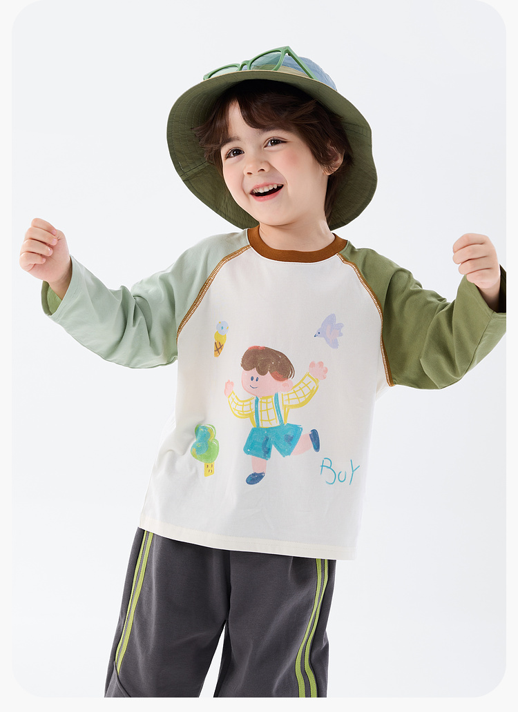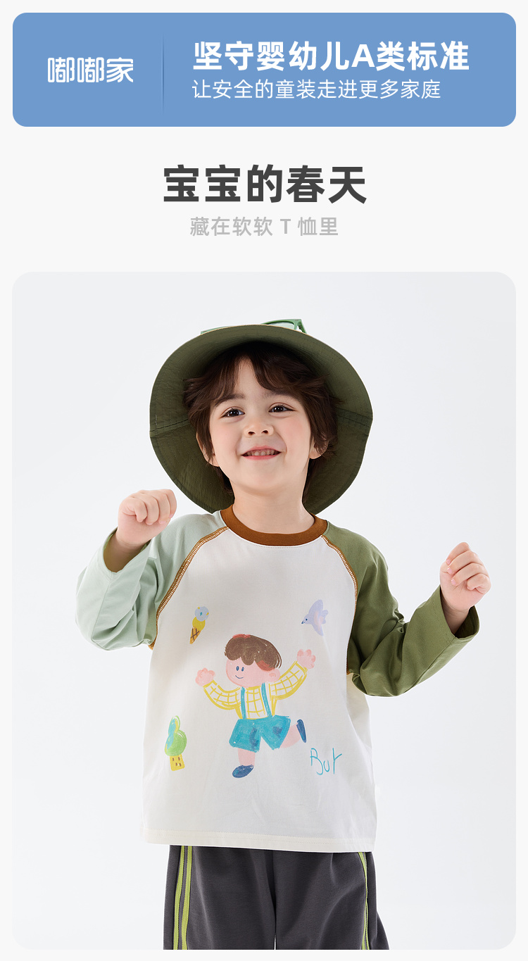 【纯棉】嘟嘟家男童T恤儿童打底衫春秋女童长袖宝宝内搭新款春装T恤T6ATX048