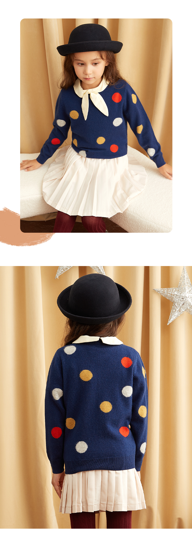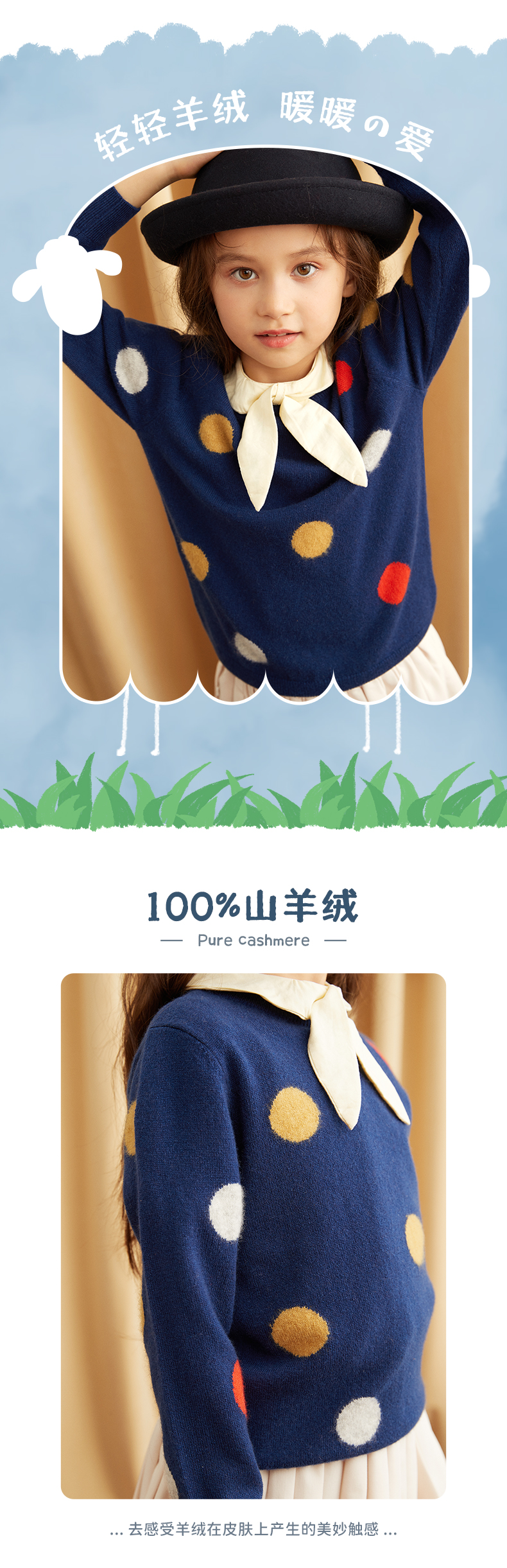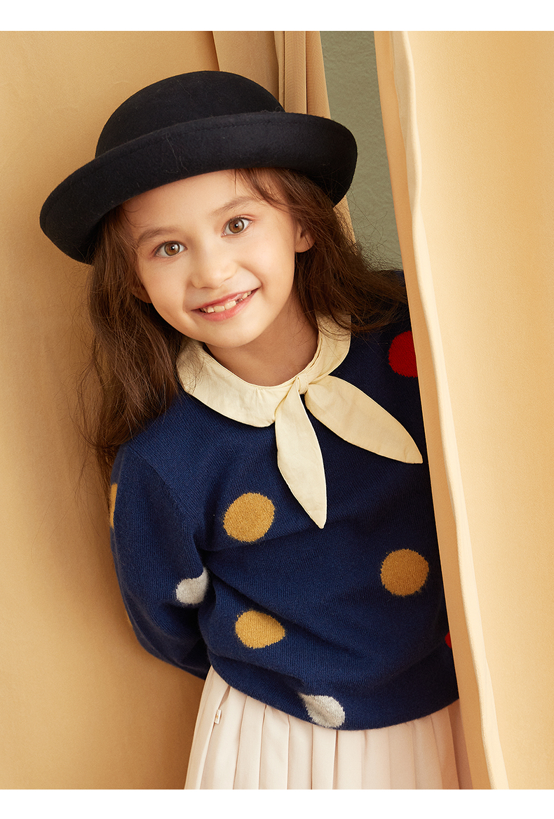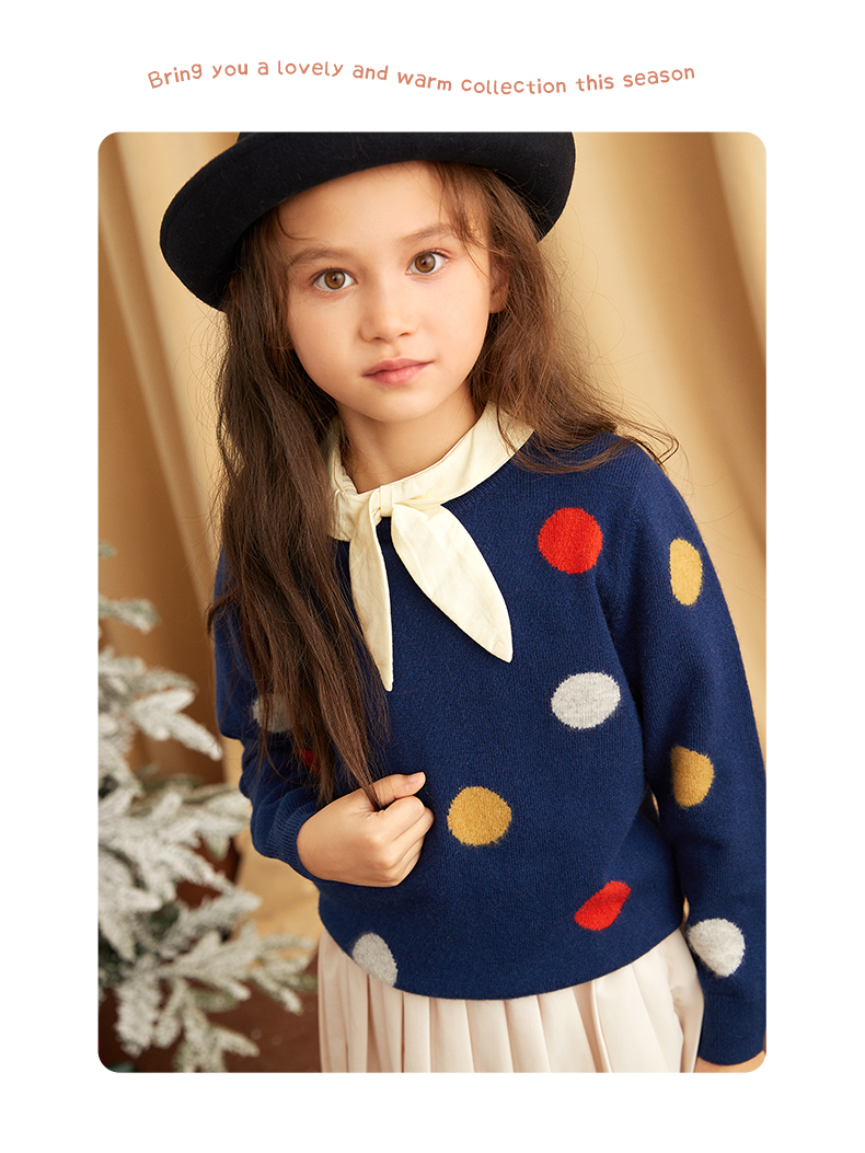 【可爱圆点童装羊绒衫】童装中大童100%山羊绒衫时尚圆点装饰内搭女保暖毛衣